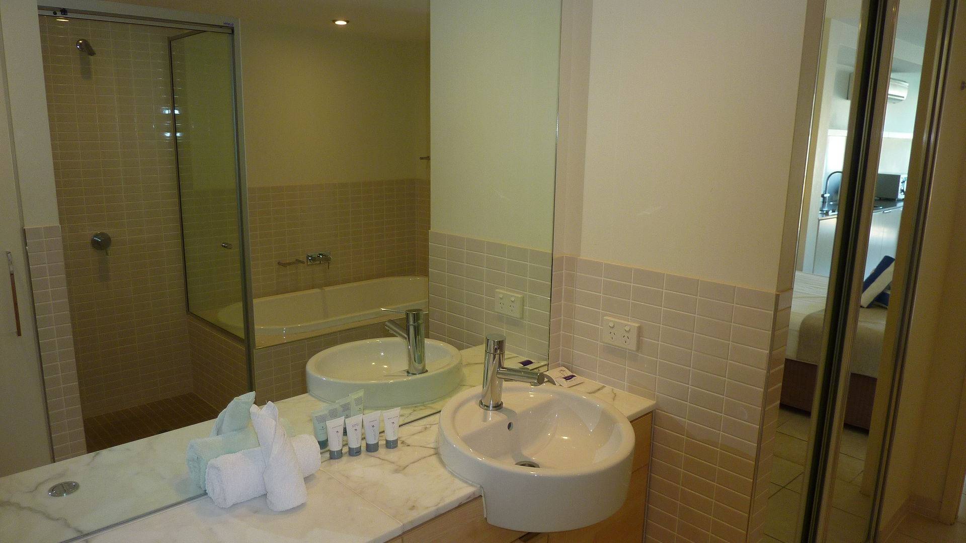 * The hotel-style second studio unit also has a lounge area and balcony as well as its own bathroom. The divider between the two balconies can be opened up to use the property as a two bedroom, two bathroom apartment.