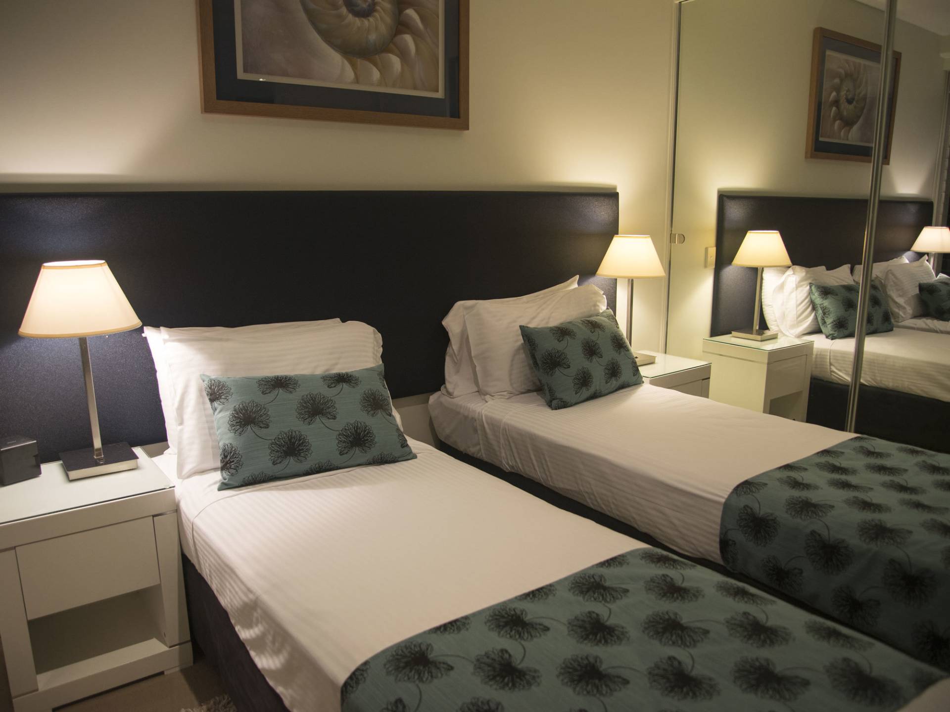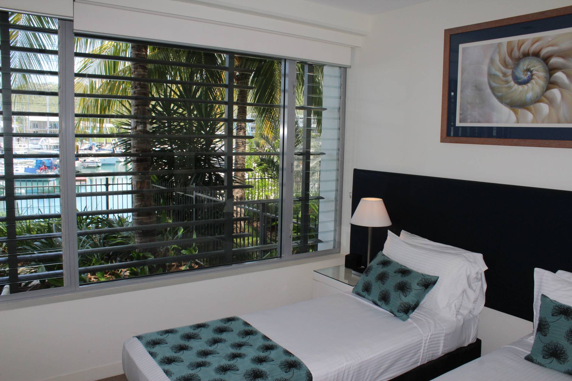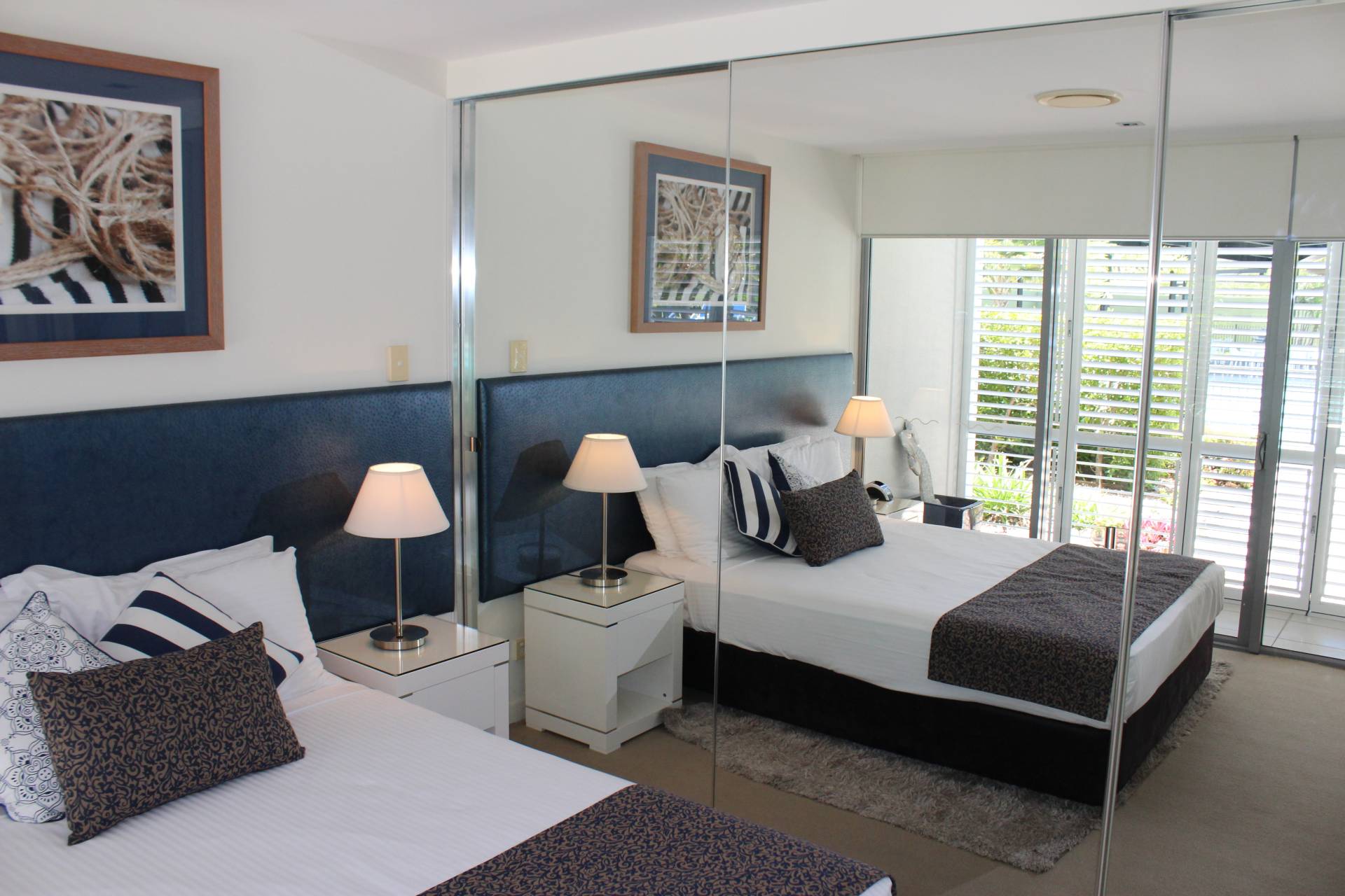* Two further bedrooms are spacious, one waterfront, and the other opening onto the private back patio, both with large built-in-wardrobes and ducted air-conditioning which is installed throughout the apartment