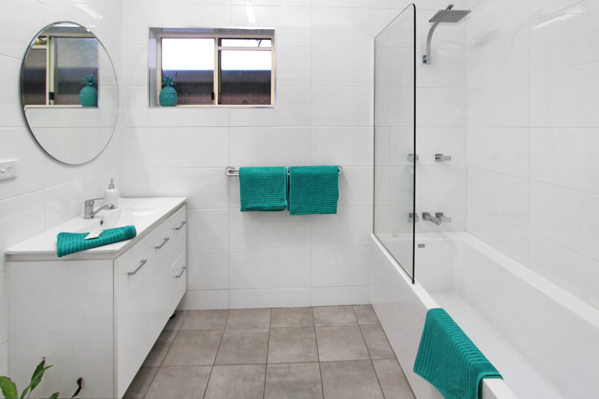 The family bathroom is well located for both of these bedrooms and the living area, with a modern walk-in shower and stylish vanity in the bathroom itself and a separate toilet and basin adjacent. A couple of steps down from the hallway is the laundry and a storeroom which opens onto the deck via a roller door, the current owners often use this as a fourth bedroom when they have extra guests, although the three bedrooms are all so big, they have ample room for kids to bunk in!