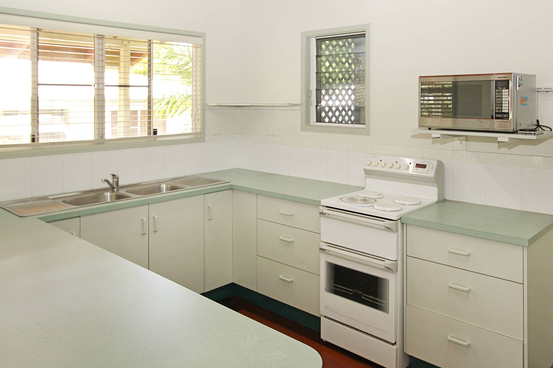 The kitchen has plenty of cupboard, drawer and bench space and is nice and bright with two windows and a door out to the back covered area and downstairs bathroom. This area contains the laundry and has room for two vehicles, workshop, storage or entertaining. There is vehicle access to the back yard which is fenced.