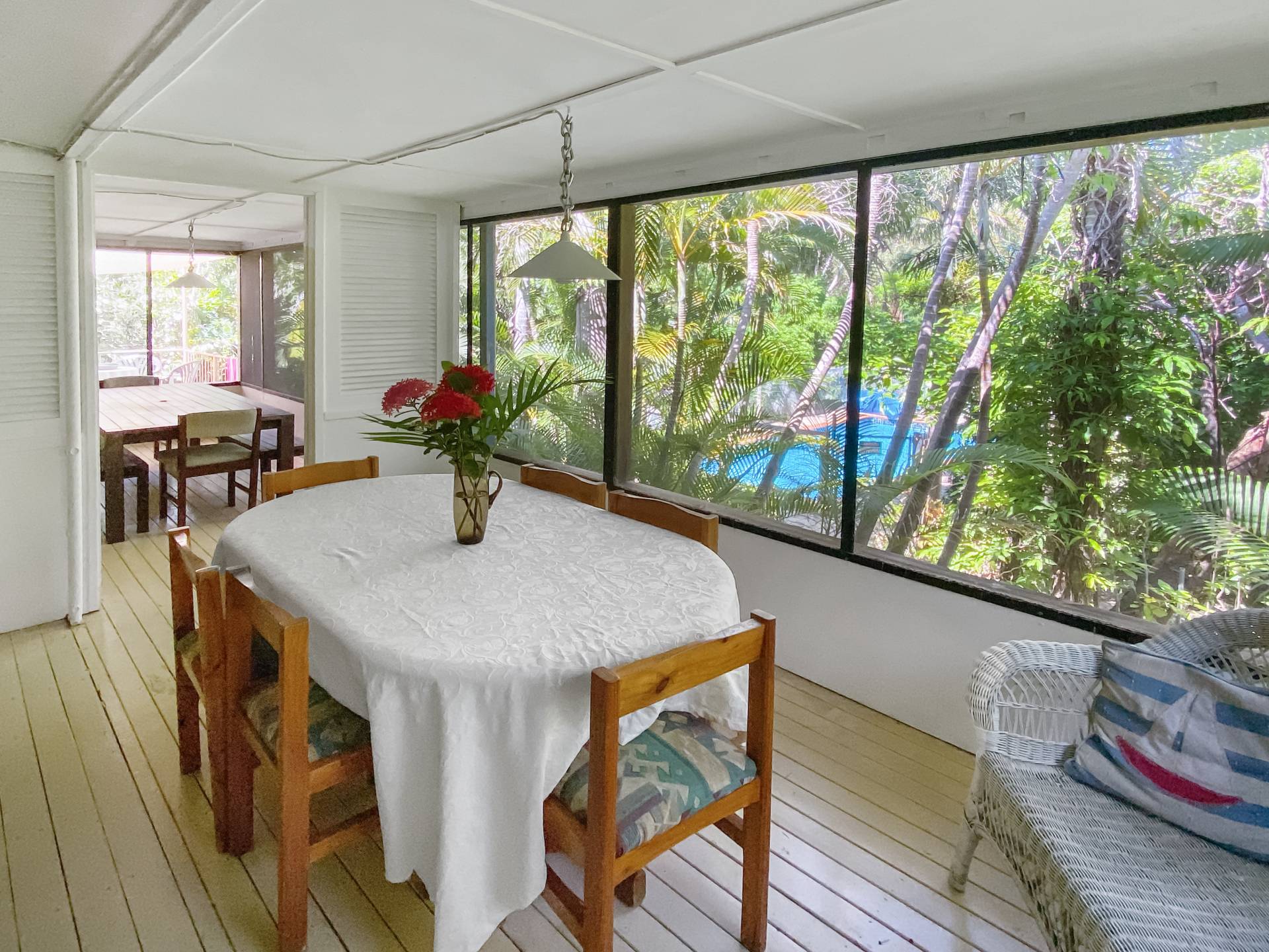 Each side contains a kitchen, open-plan to an internal living area which opens onto a screened deck overlooking the gorgeous garden and large inground pool. The two indoor verandahs can be kept open to each other for a whole house feel or closed off if you want to earn some income from letting out one side.