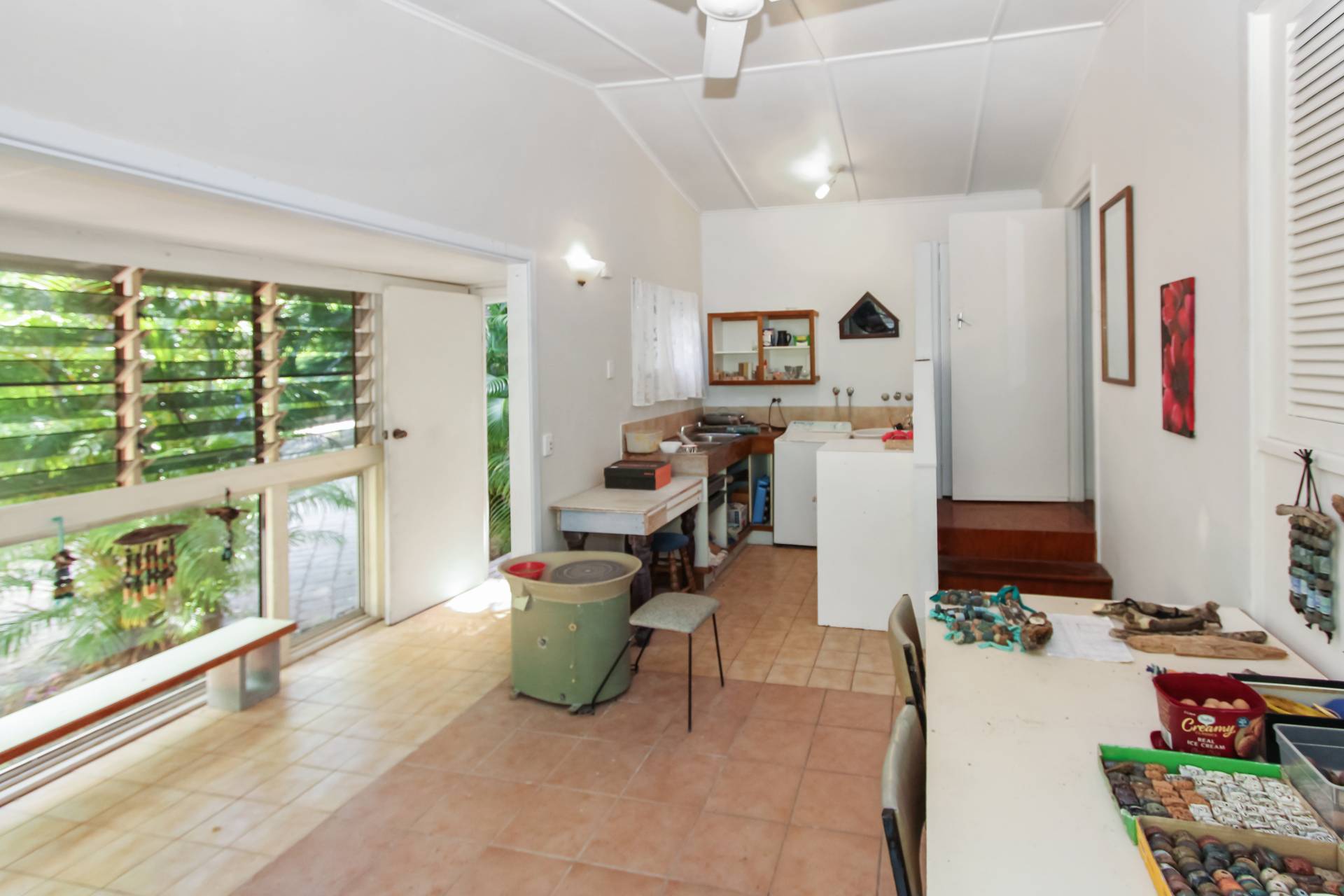 Looks can be deceiving - from the quiet no-through road, the property is very unassuming and appears to just be a quaint little cottage. The paved driveway leads to a large double carport on one side and down into the garden on the other, bounded by a seasonal creek. With 4 bedrooms, 2 bathrooms, 2 kitchens, 2 living rooms, 2 studio/workshops, 2 lock-up stores/sheds, 2 screened indoor/outdoor verandah rooms, 4 external decks, a pool and gardens, there is far more to this property than meets the eye and an inspection is highly recommended.