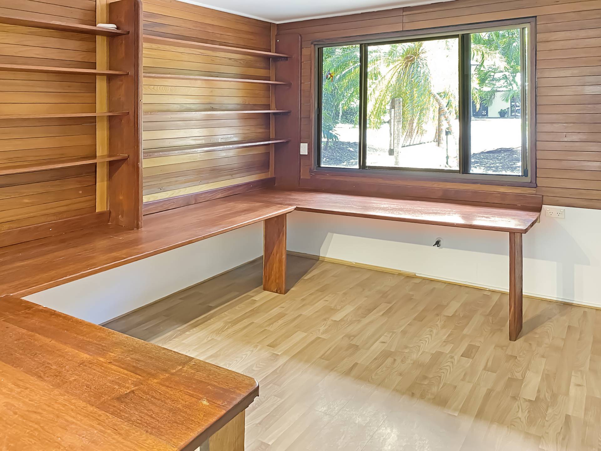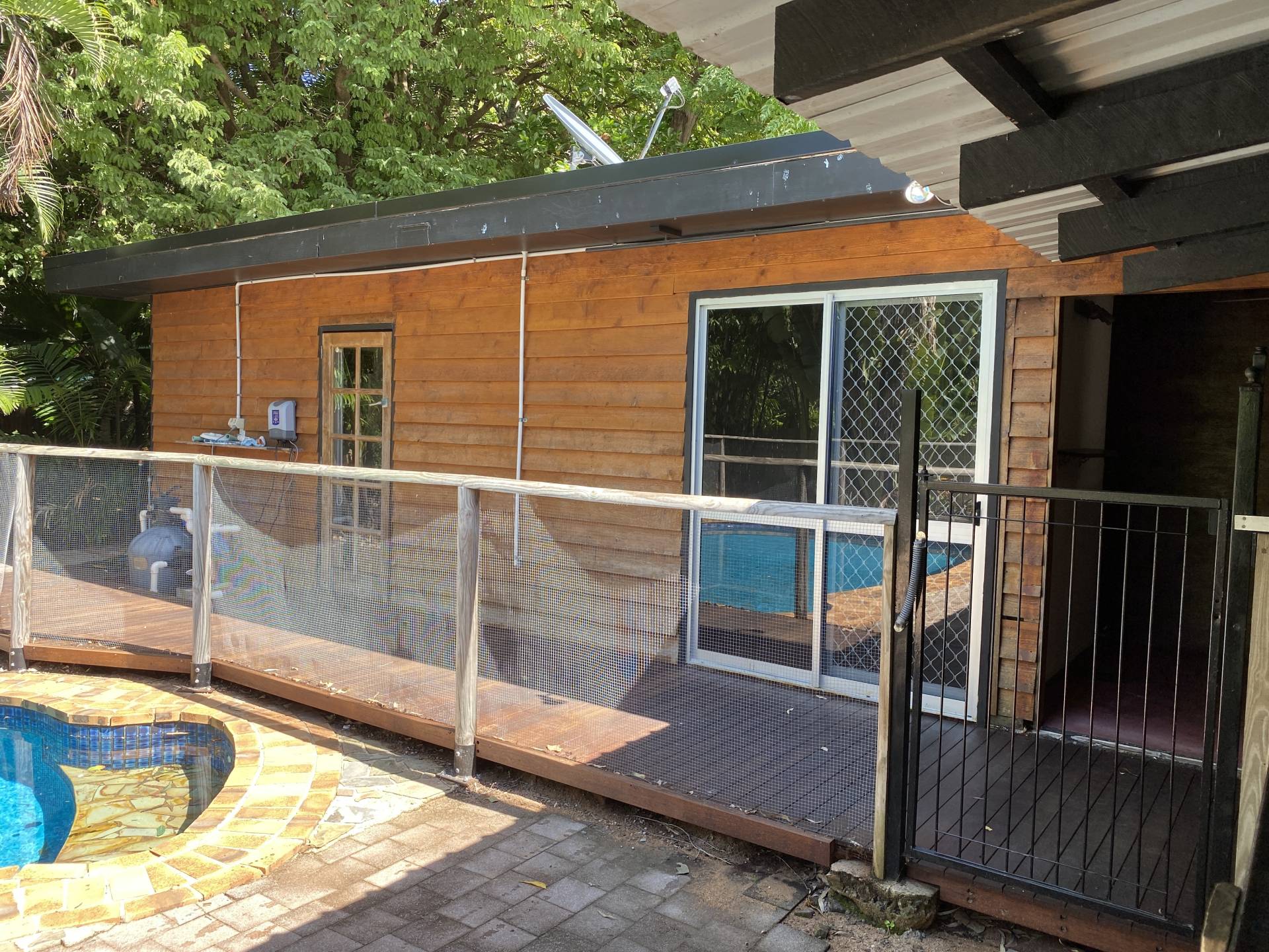 The studio comprises two rooms, both air-conditioned and tiled, which open onto a decked walkway in front of the pool. There's also a bar area which could offer alternate uses or possibly be converted to an ensuite as it backs onto the walk-in-wardrobe of the larger room.