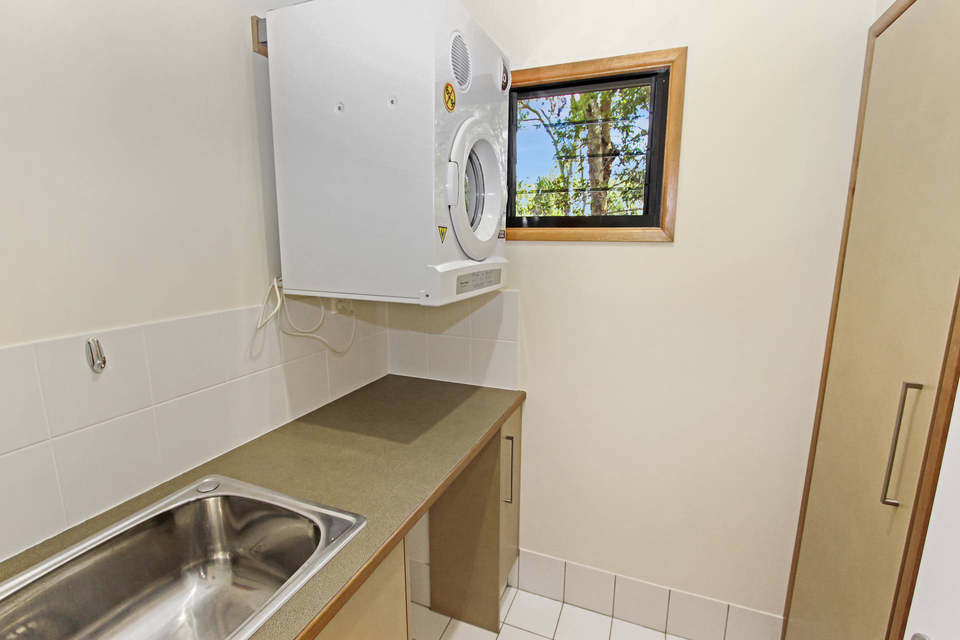 The kitchen is well-placed just off the living area with a servery to the deck. There's plenty of cupboard and bench space, double sink, room for a dishwasher and large gas cooktop. The internal laundry and linen closet make this home more liveable than some of the holiday homes on the island and you'll no doubt enjoy comfortable living here.