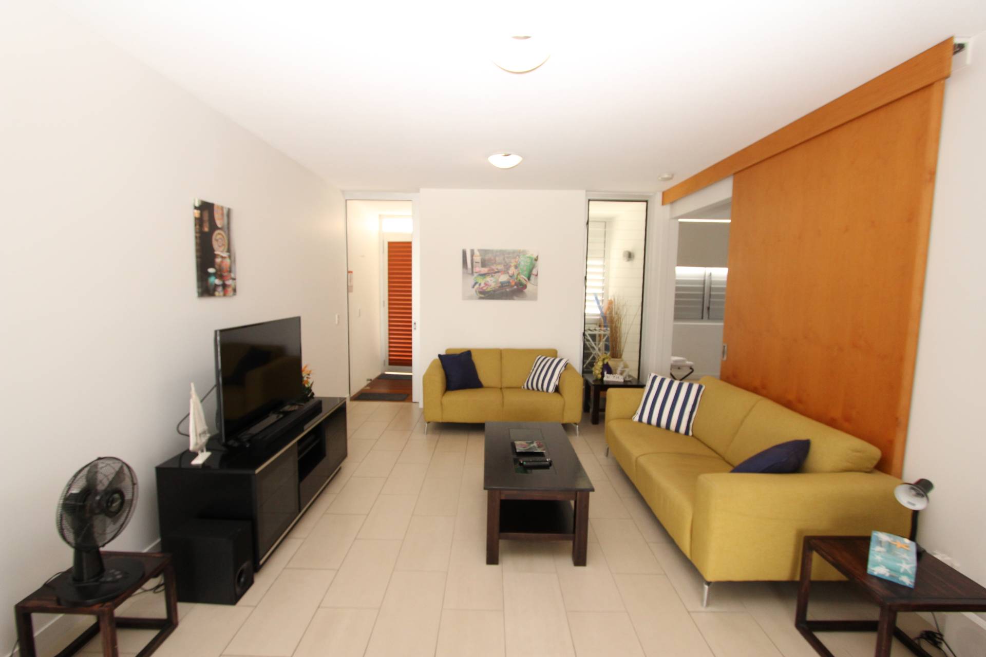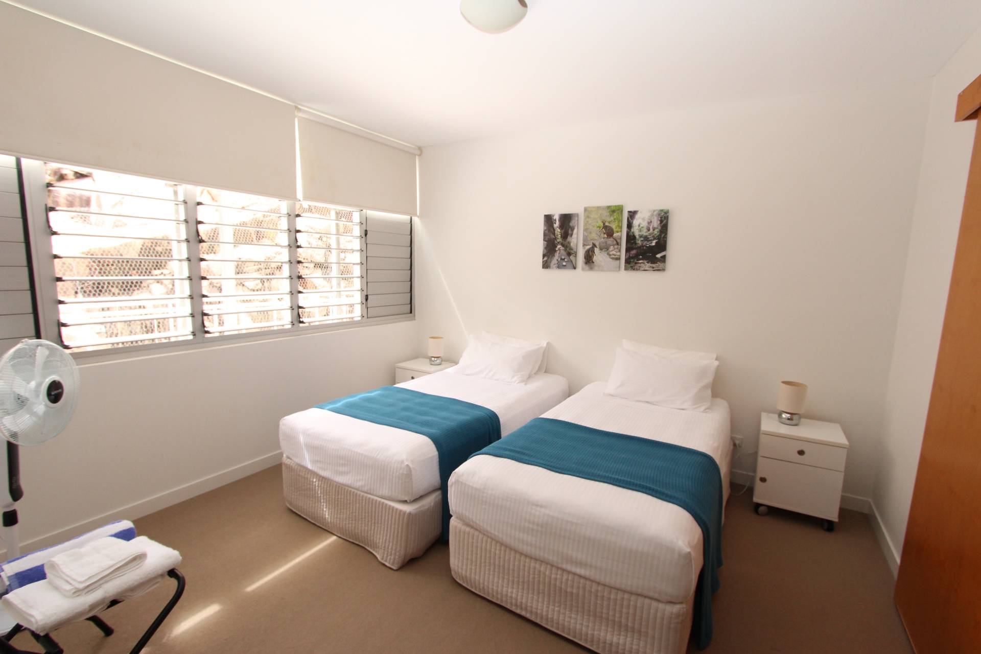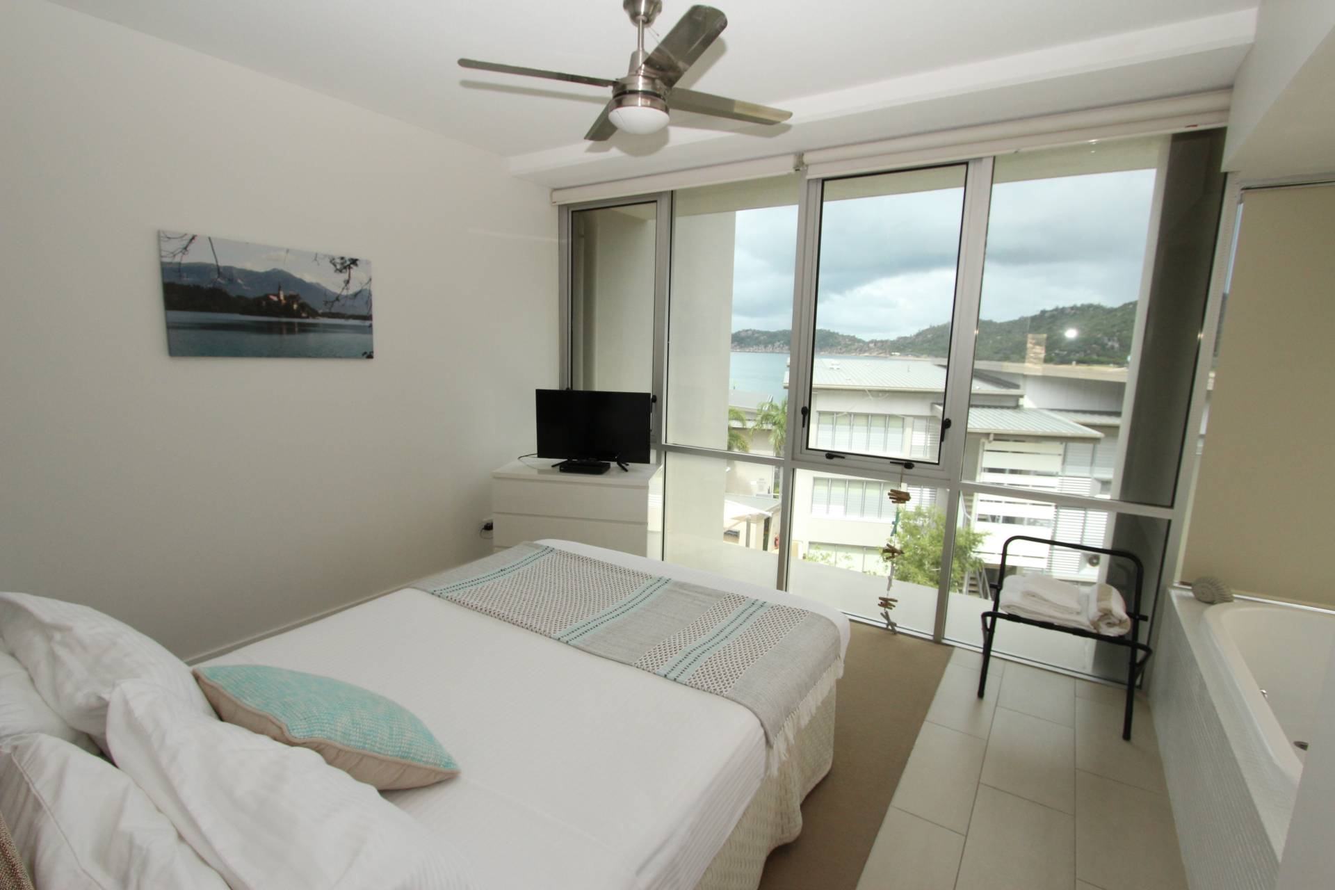 This fourth floor apartment offers water views across the Coral Sea to the granite boulder-strewn mountains of Magnetic Island, Nelly Bay beach and to the twinkling lights of Townsville.