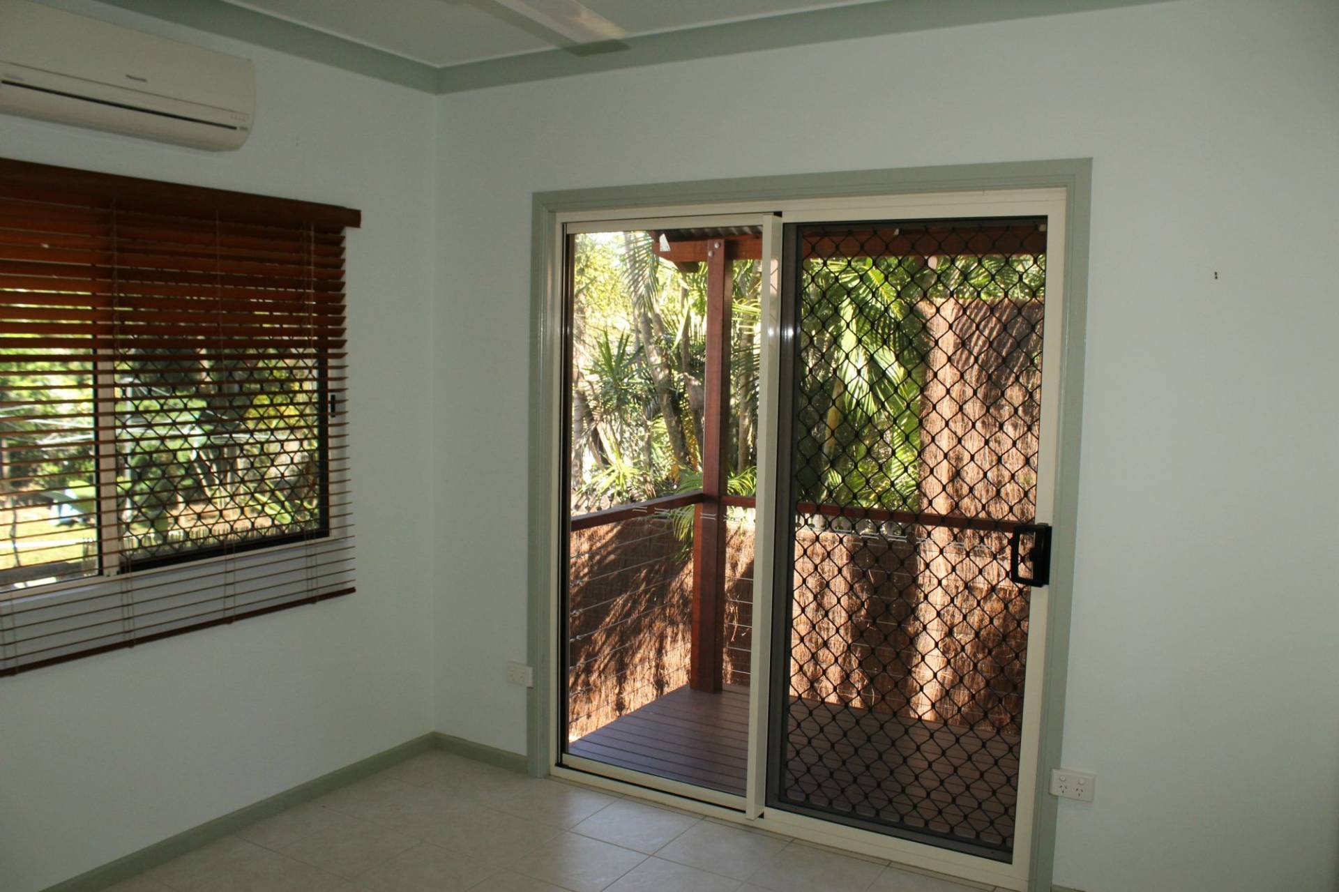 * The master bedroom has huge built-in-wardrobes, air-con and ceiling fan with shuttered doors and windows that can be opened up for light and air or closed up for privacy. These doors open onto the study/hallway which in turn opens onto a covered deck that adjoins the patio that runs the length of the living area.