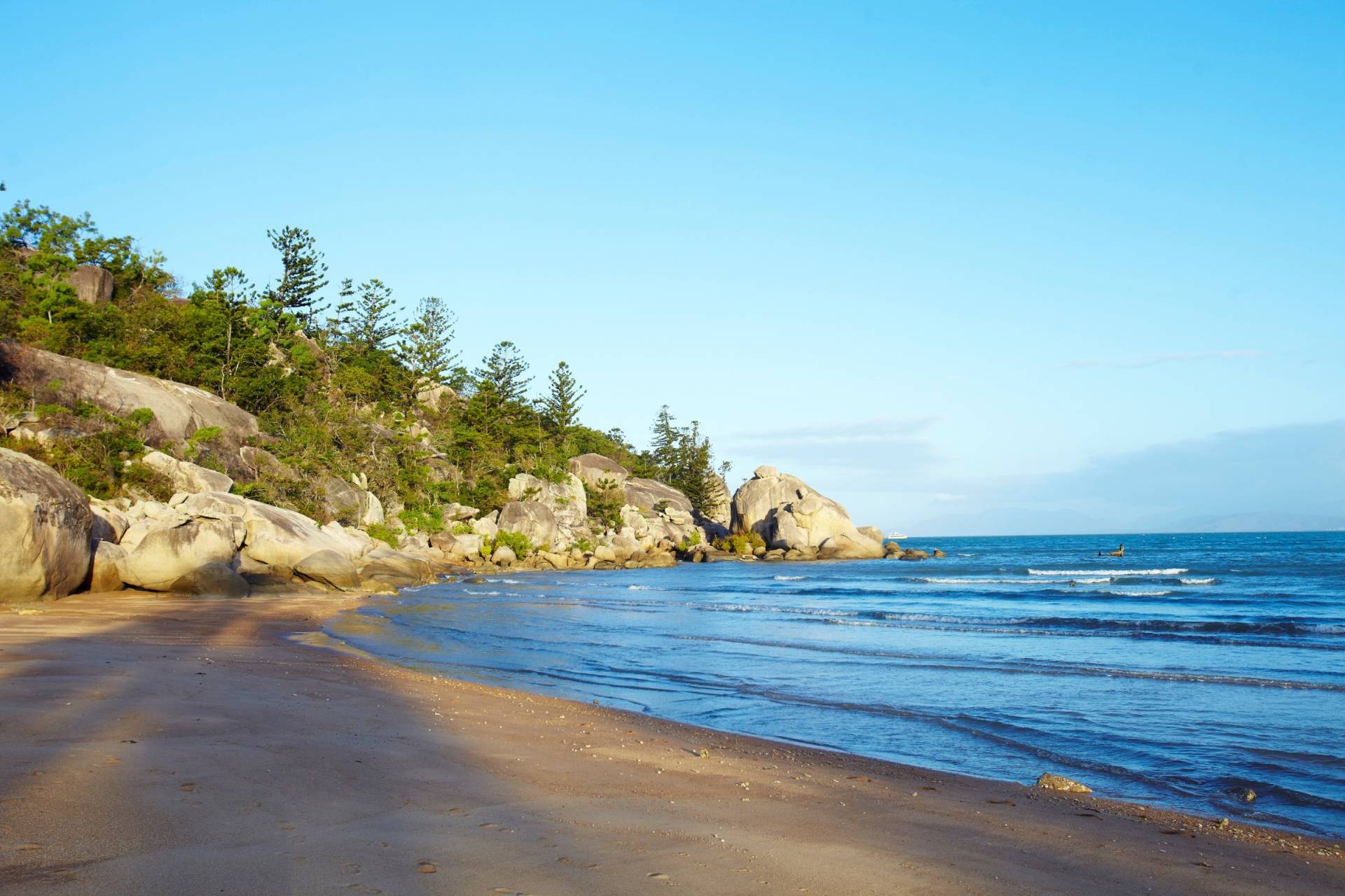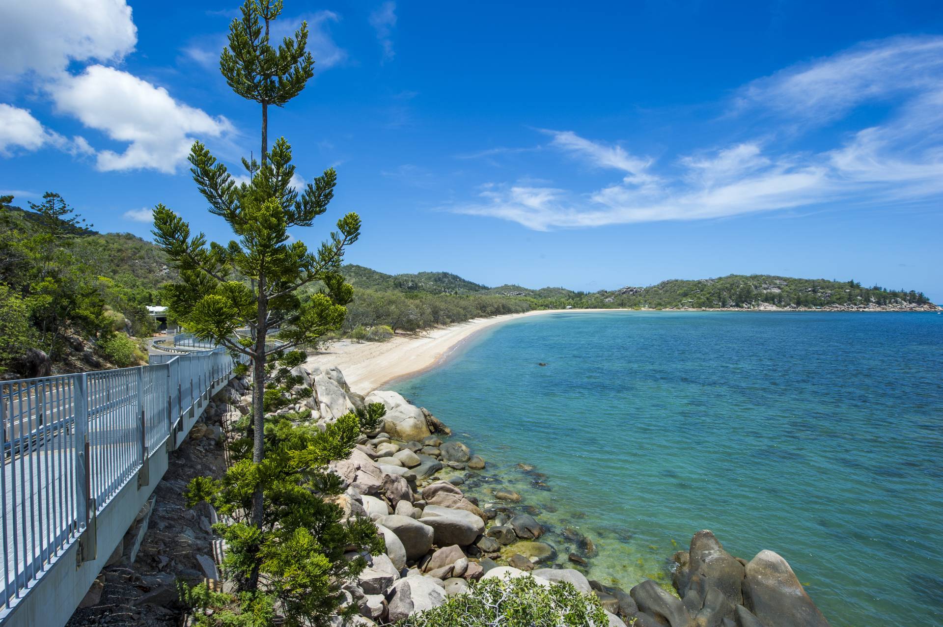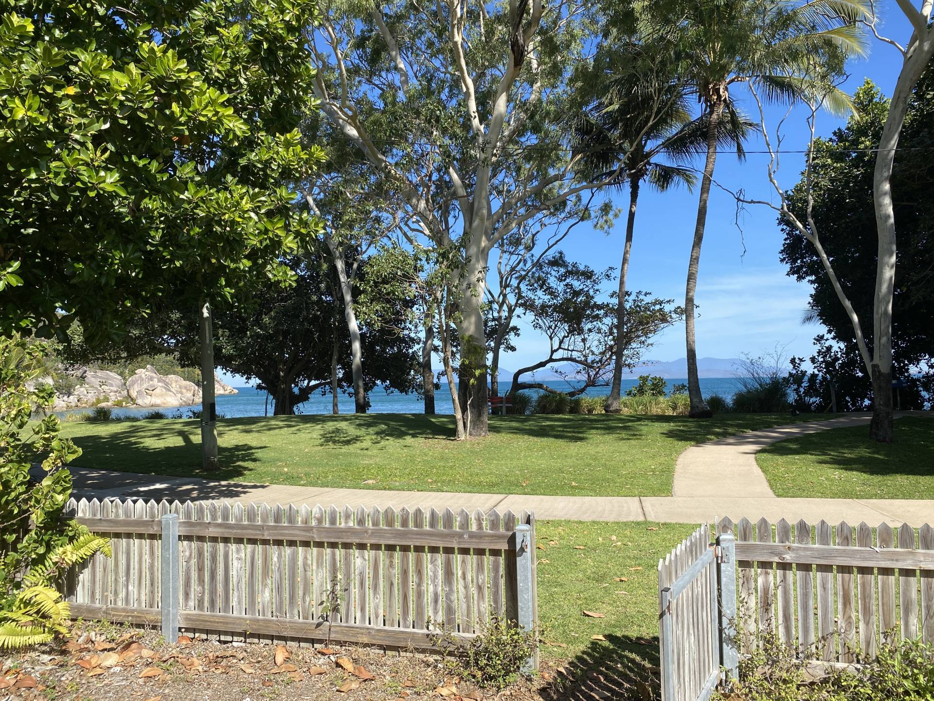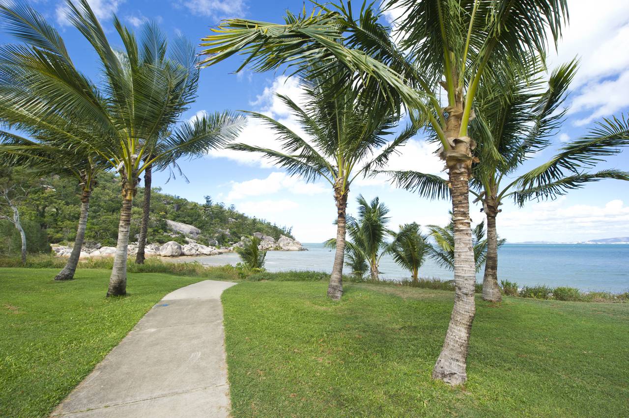 A short private tropical garden walkway connects the rear lots to the beachfront, where palm trees throw shade over the grassed parkland before the sandy beach which curves from the picture-perfect Hawkings Point headland, across the Coral Sea to the twinkling lights of Townsville and to the surf club and Nobby Headland on the western side. The headlands provide naturally picturesque views with their curvy granite boulders and striking hoop pines, and of course the old jetty which is still a popular place to stroll and throw in a line.