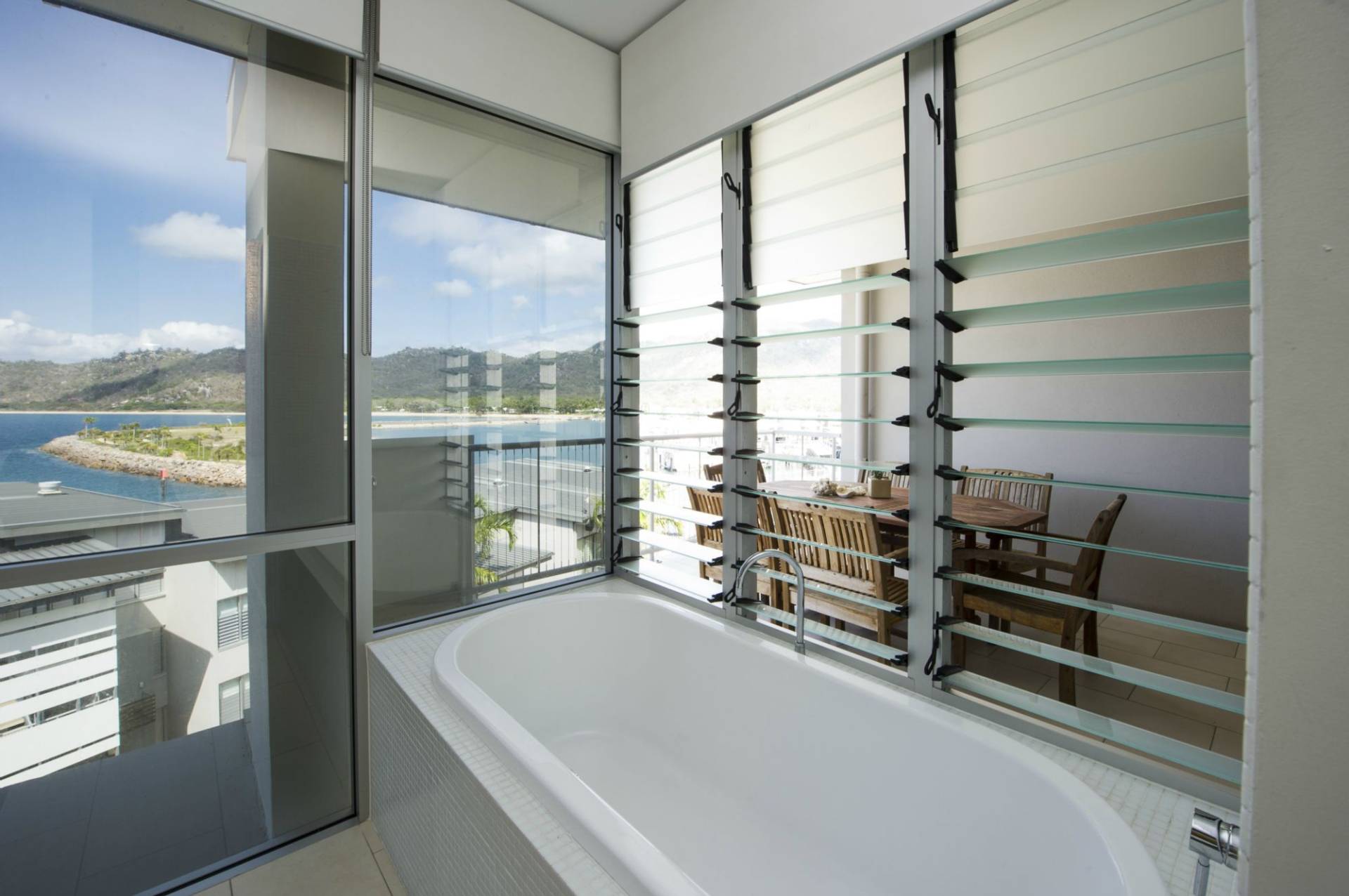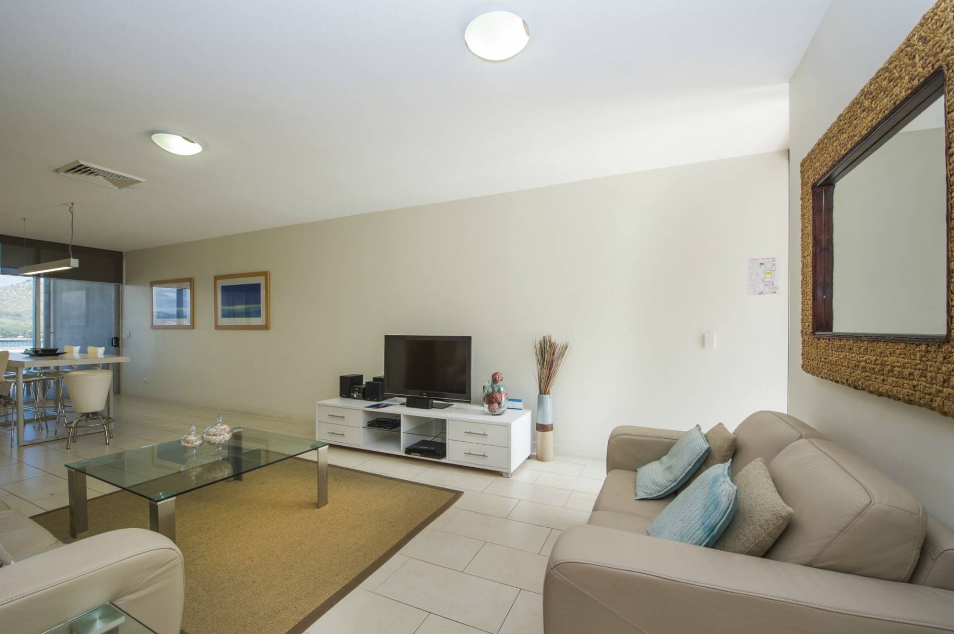 This fifth floor apartment offers captivating water views across the Coral Sea to the granite boulder-strewn hills of Magnetic Island, Nelly Bay beach and all the way to the twinkling lights of Townsville.