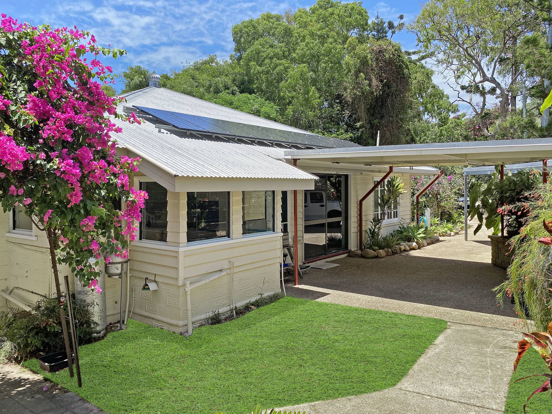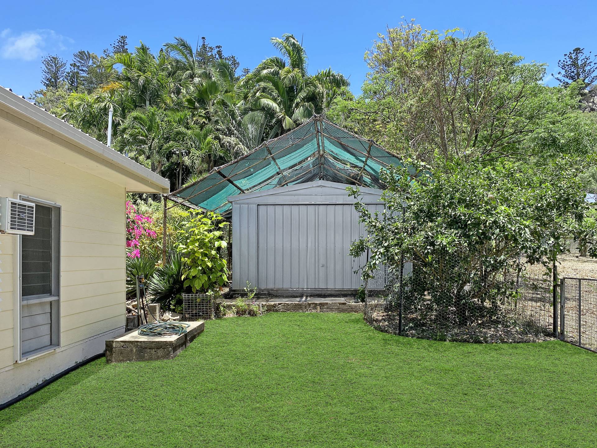 There's a double carport plus a huge shed with three phase power - and split system air con! There's even room for a pool - but who needs one with Alma Bay just around the corner?
