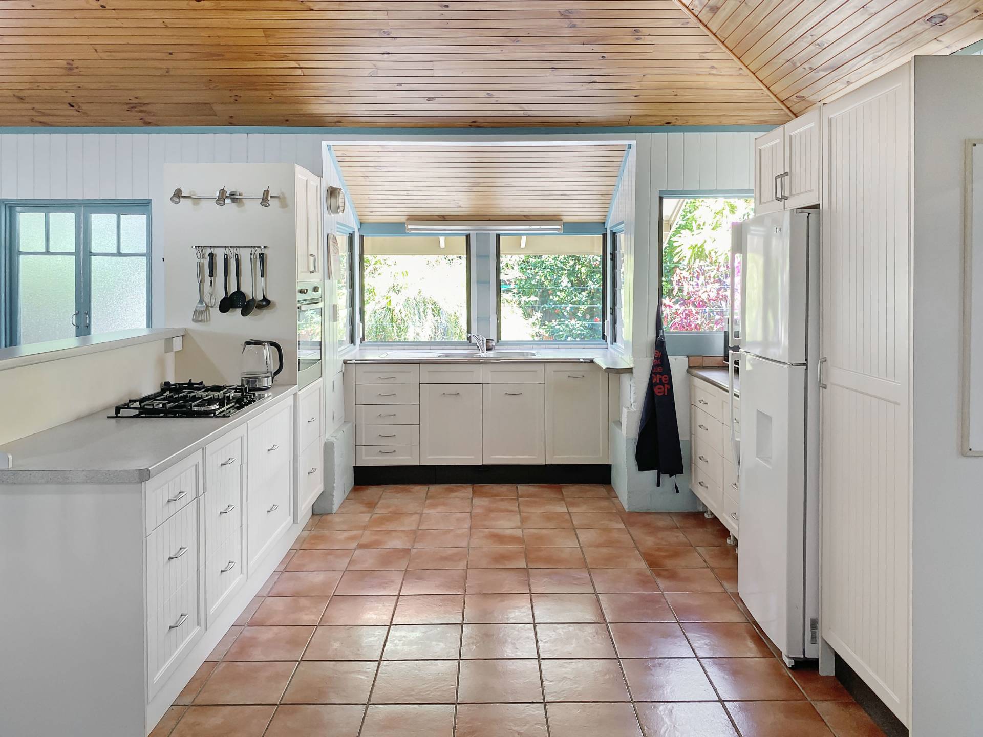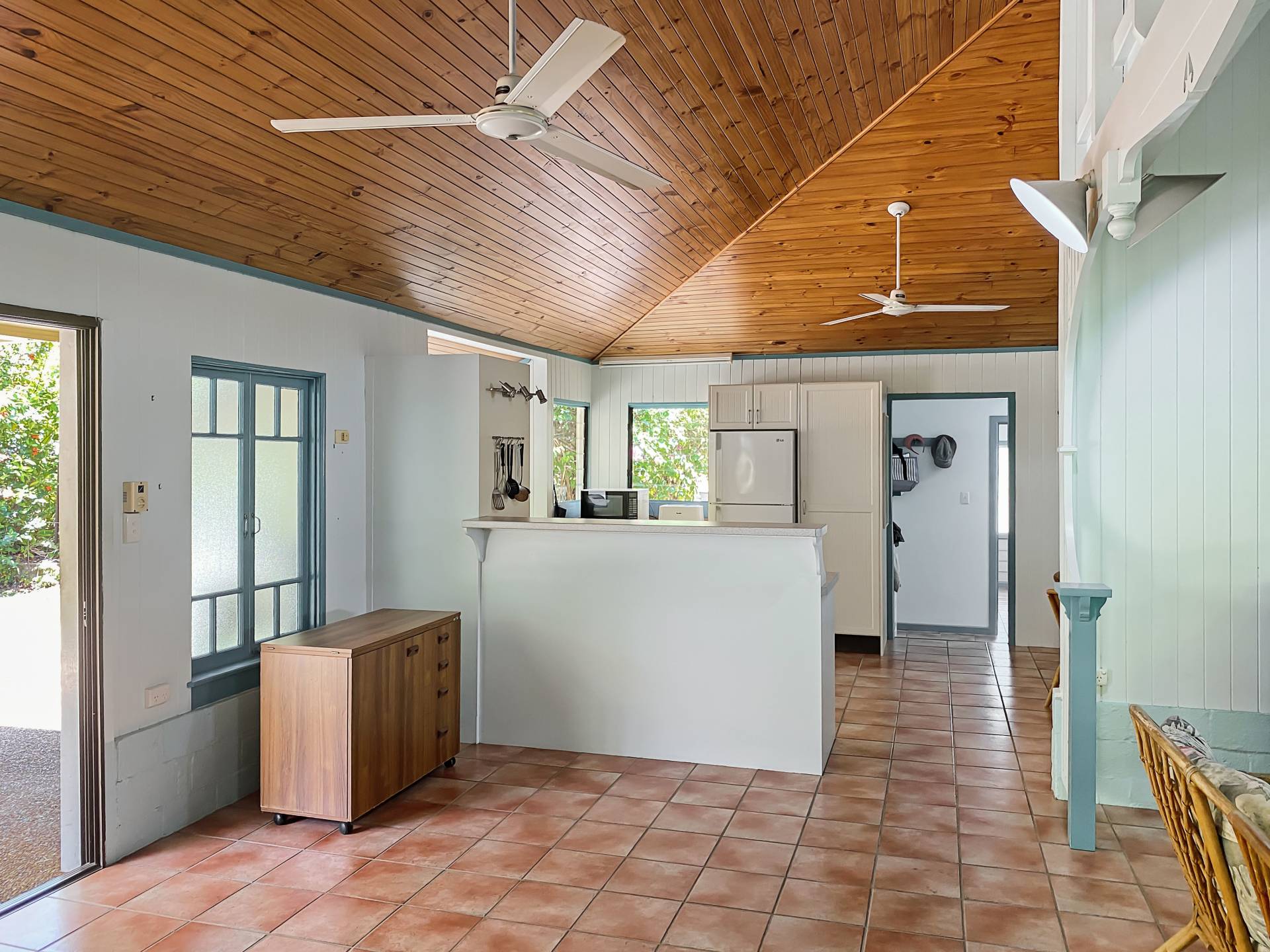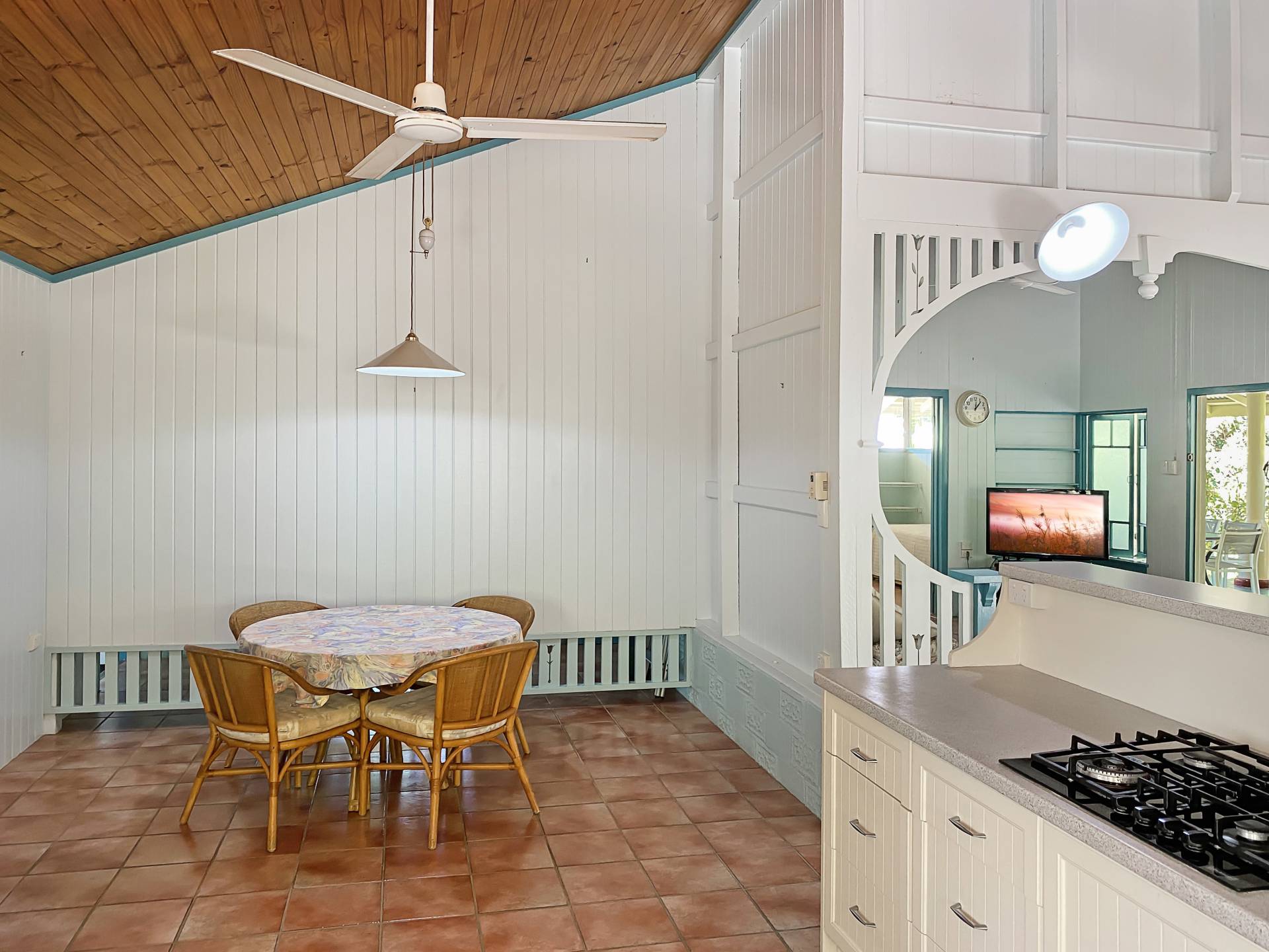 The home is spacious with lounge and a formal dining room leading to the modern kitchen with further dining area. Built before the days of air con, air flow was an important factor and design features throughout the home ensure excellent cross-ventilation - high ceilings, louvre windows, breezeways etc. The roof has been replaced and insulated with a whirlybird for additional cooling.