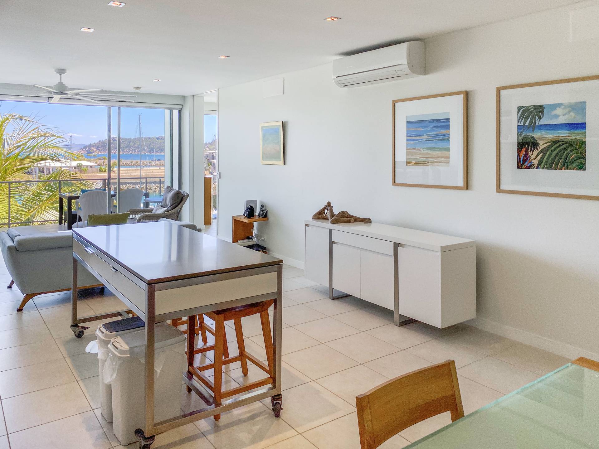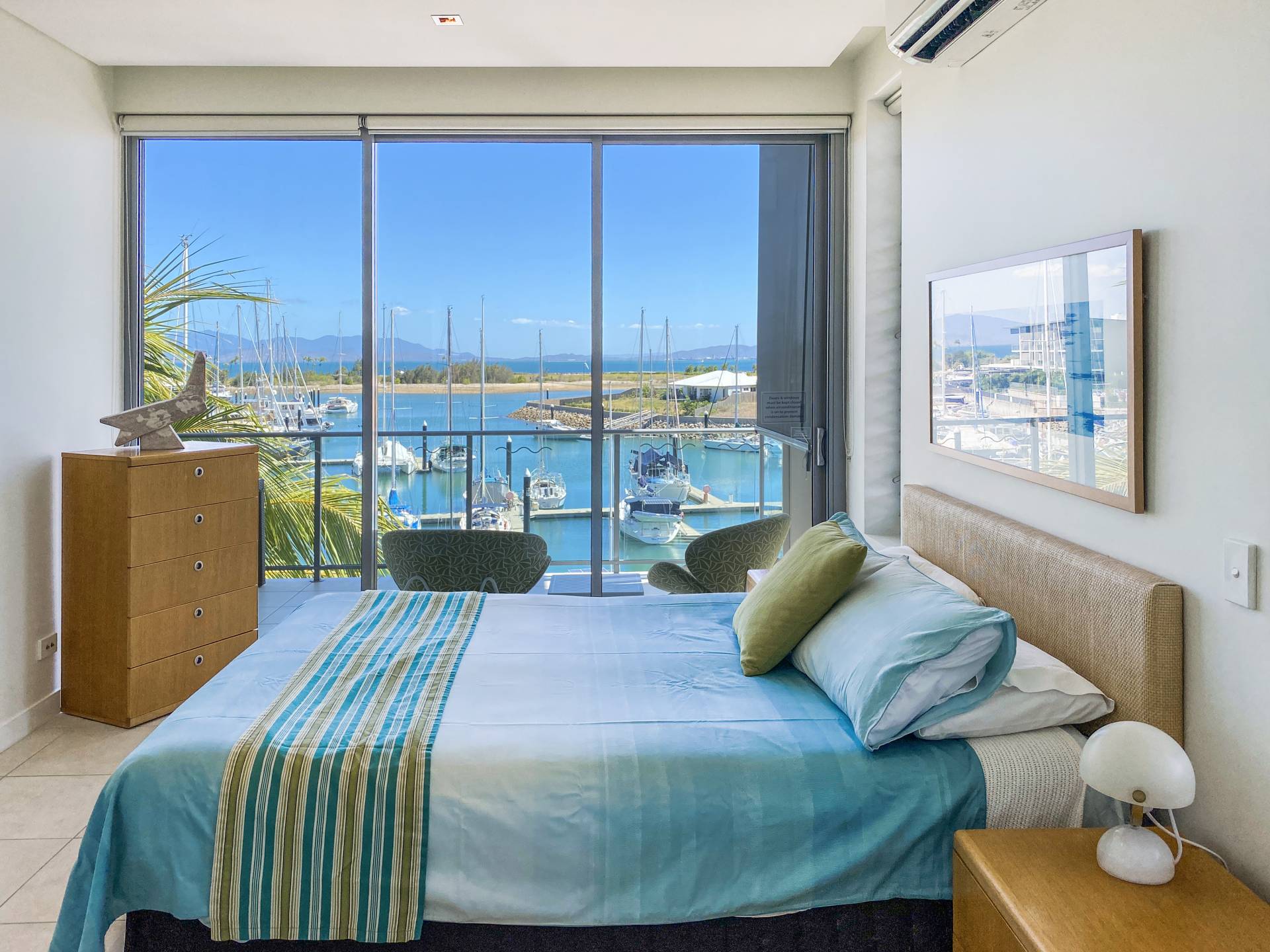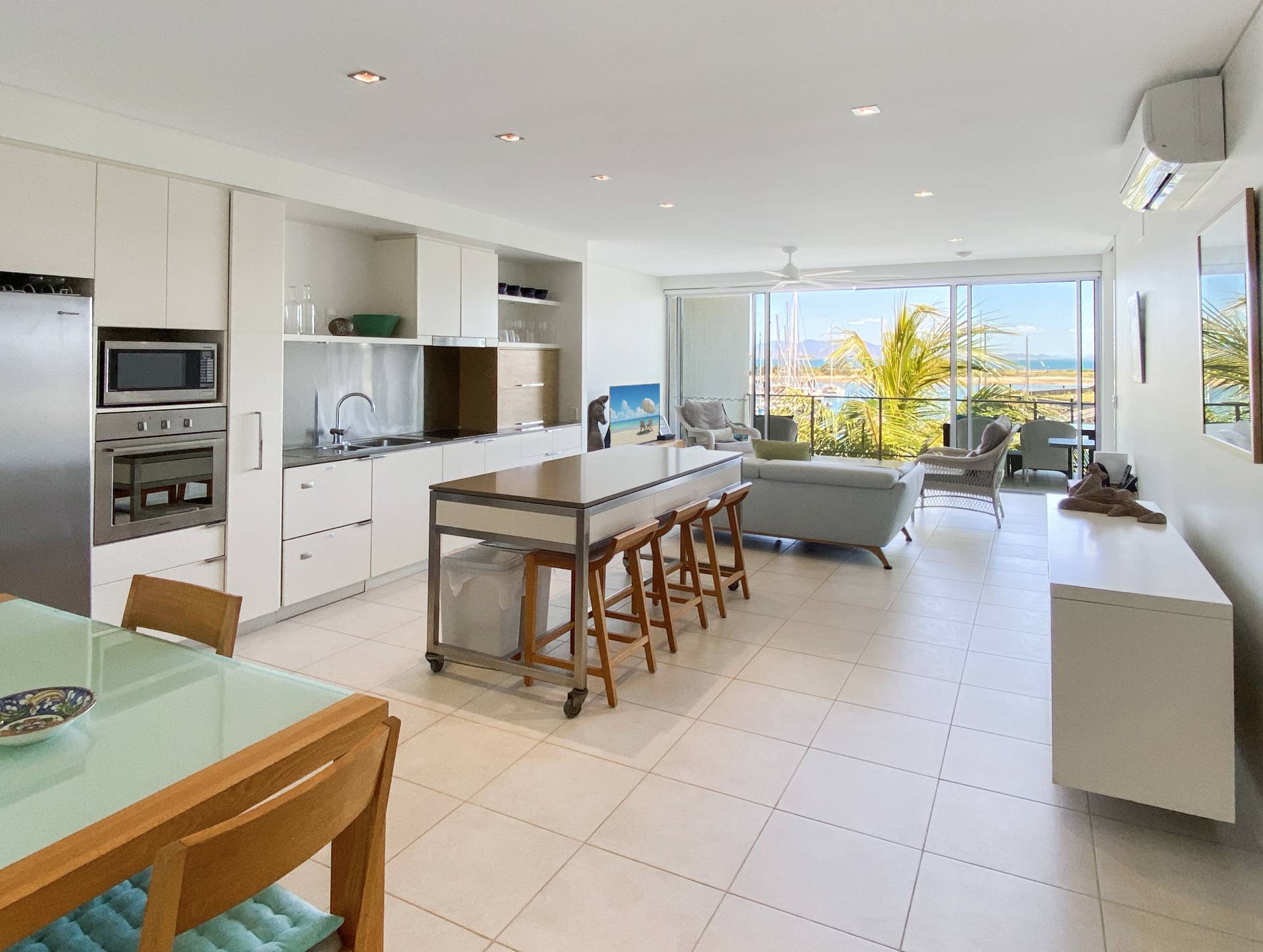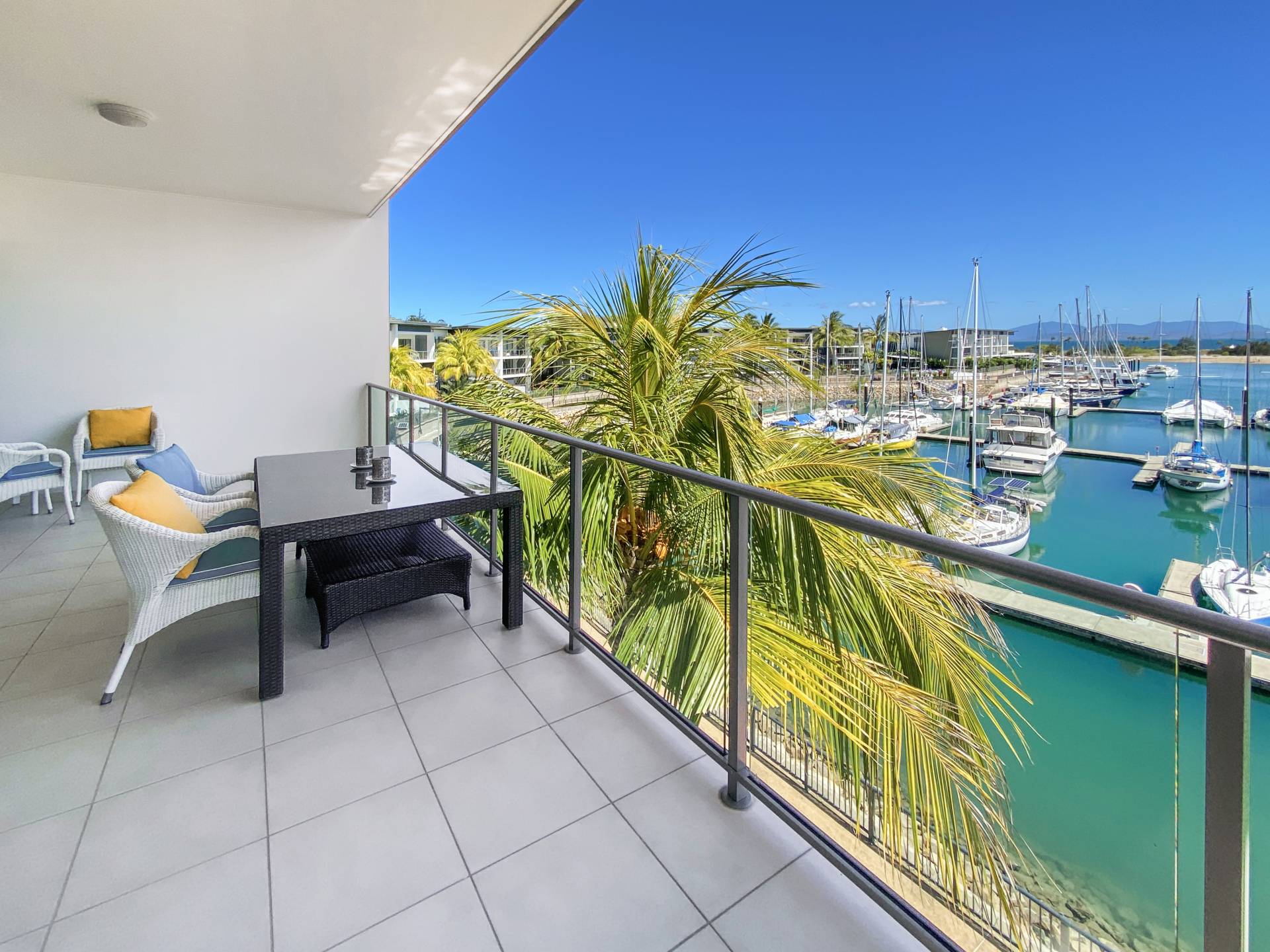 This top floor corner apartment enjoys magnificent views over the marina and south across the Coral Sea to Cape Cleveland and the twinkling lights of Townsville. As soon as you step through the front door, the views can be enjoyed from throughout the apartment with the open-plan living area opening through a wall of glass sliding doors onto the expansive balcony where you can keep an eye on your boat moored in the marina or simply dream of which boat you would like to sail away on.