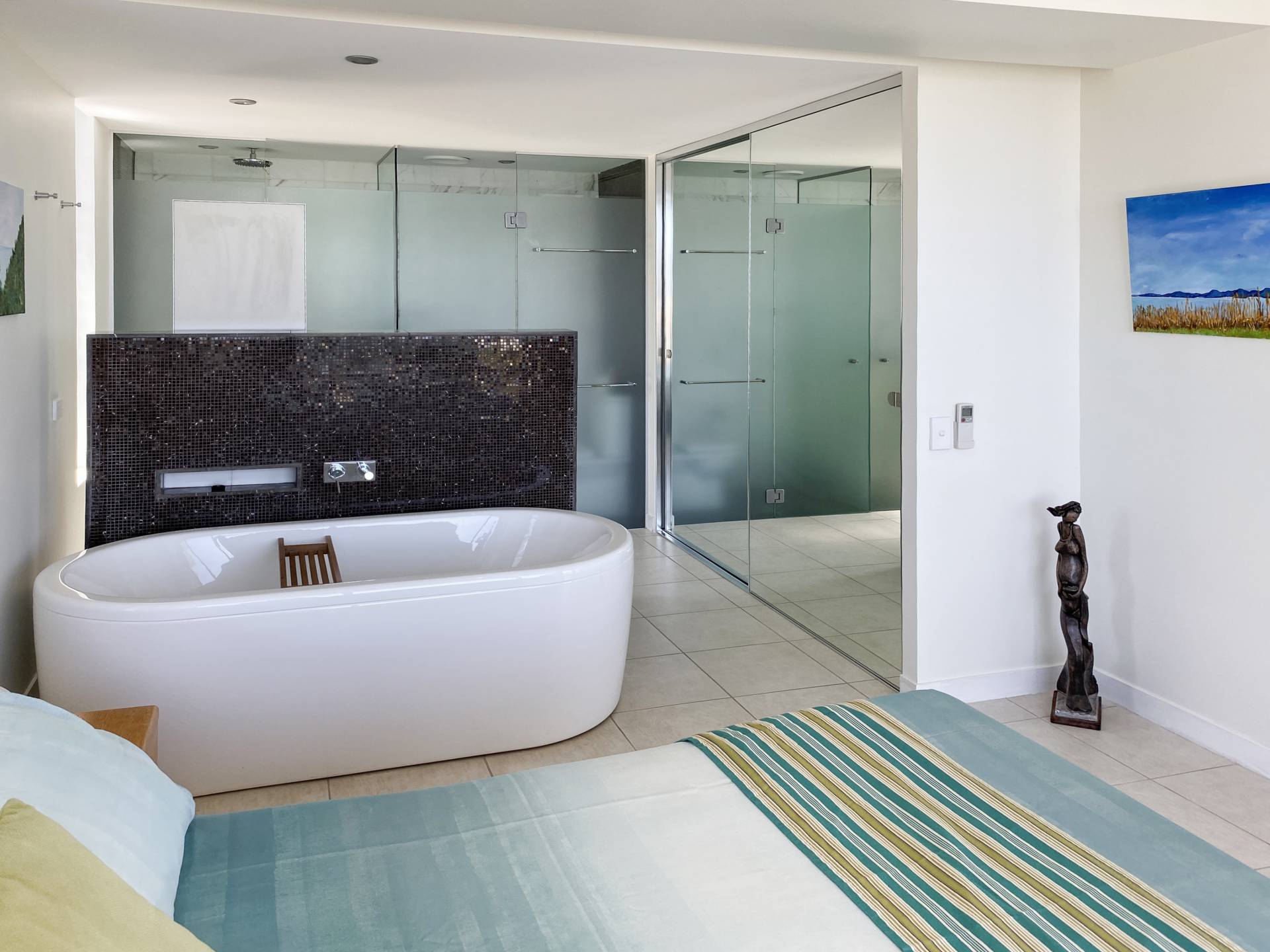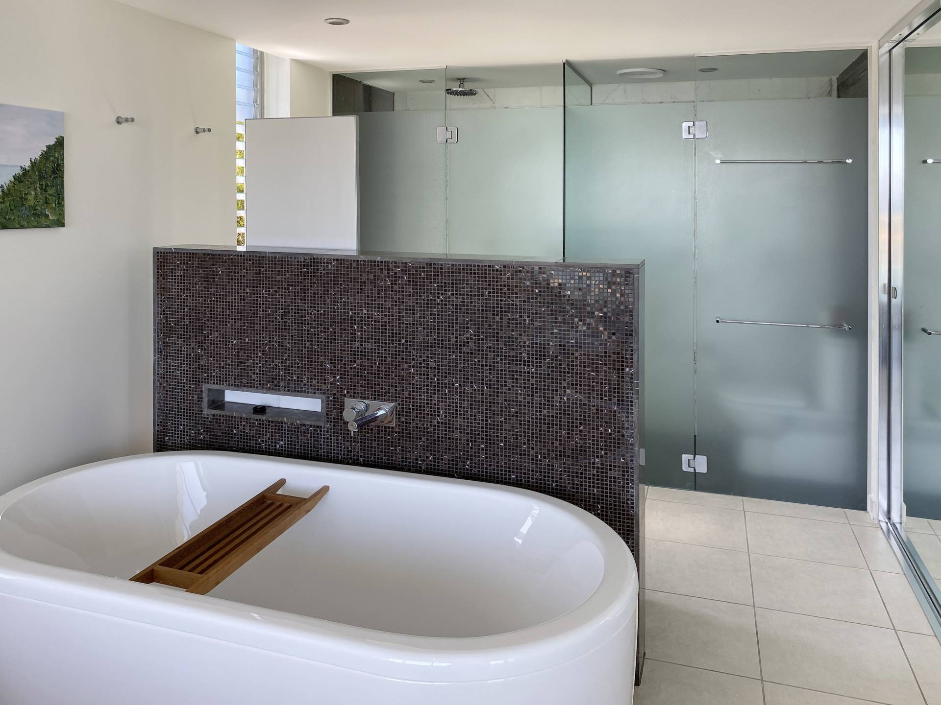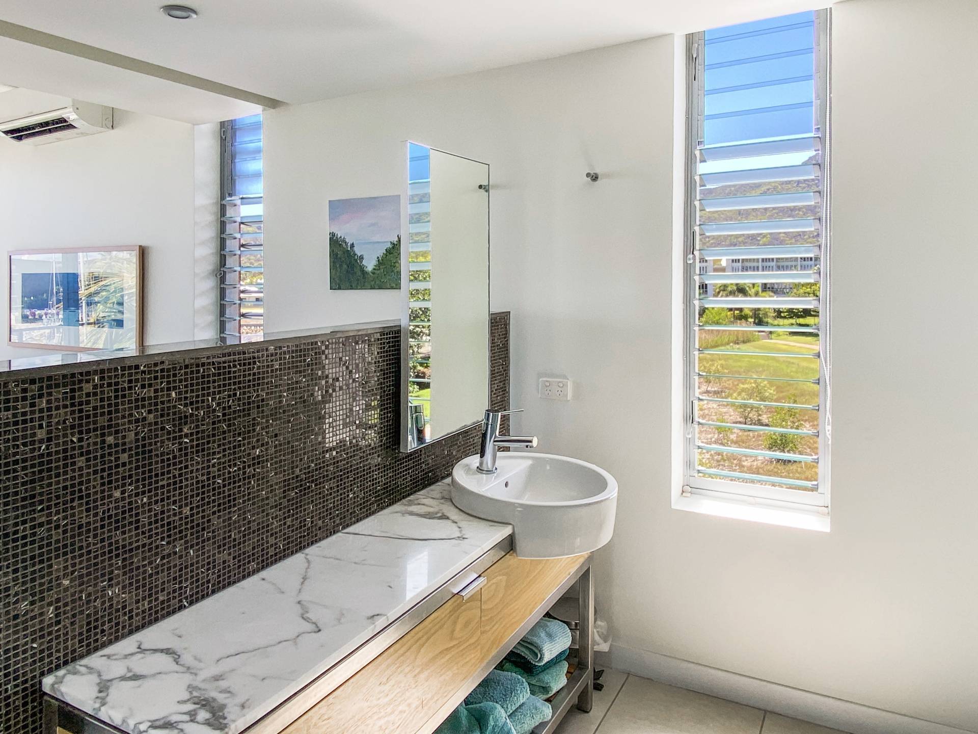 * Wake up to water views in the master bedroom with its contemporary ensuite bathroom - relax in the stand-alone bathtub or reinvigorate with the rainhead shower.  A huge benefit of this corner unit is the three banks of louvres in the master bedroom and ensuite providing beautiful light and superb cross-ventilation.