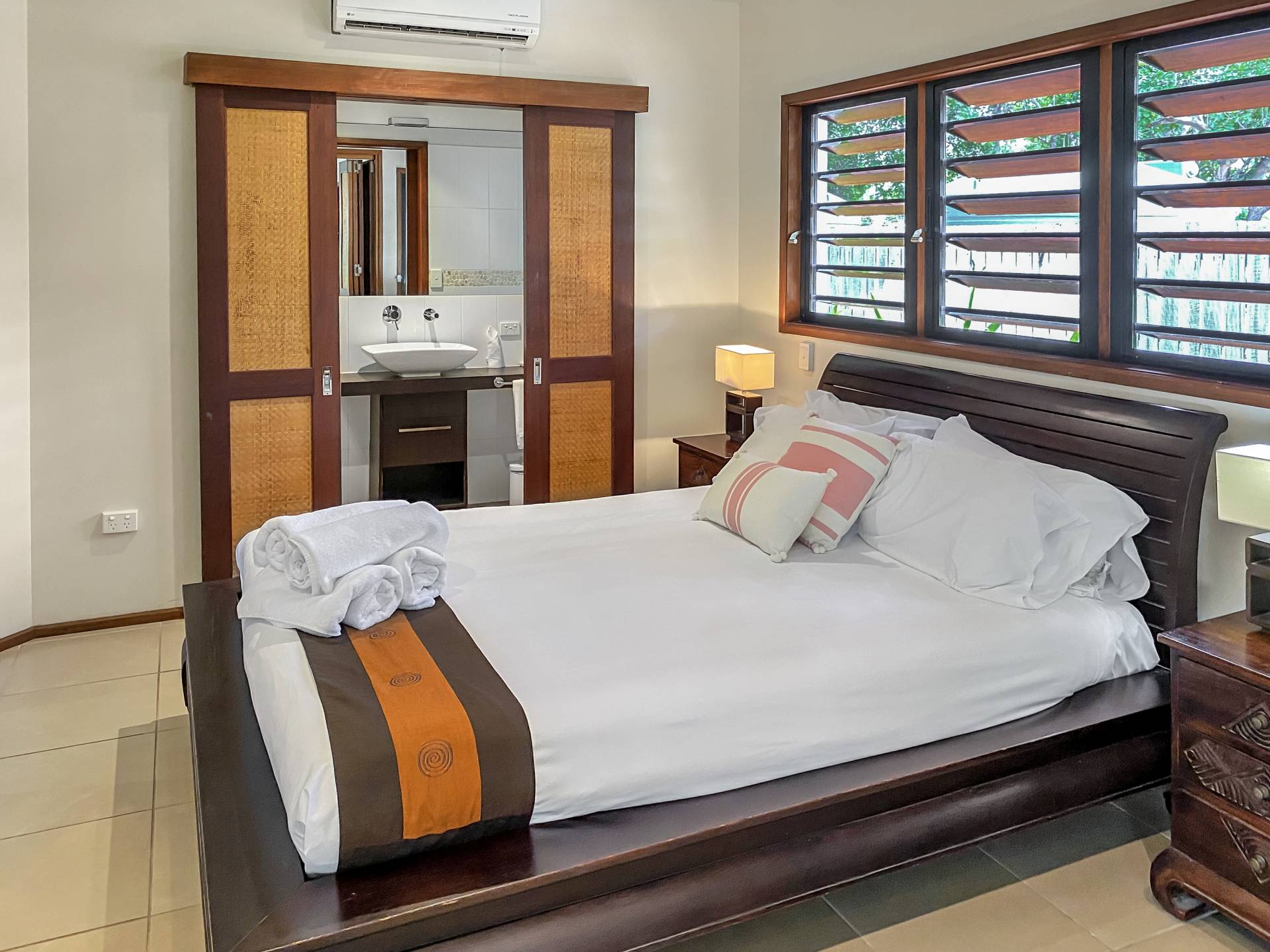 The property is completed by lush tropical gardens, sandstone paths, bamboo fences, a communal BBQ gazebo and a heated pool (in winter!) with lounges and umbrellas. A sensational place for your own holidays with family and friends as well as the benefit of continuing rental income.