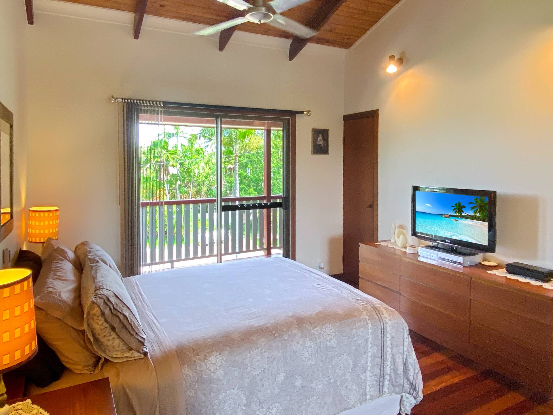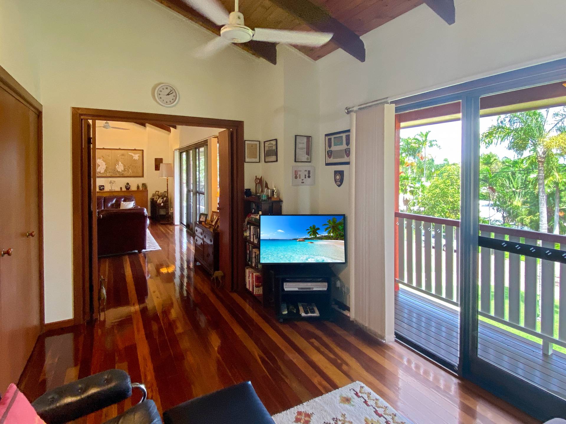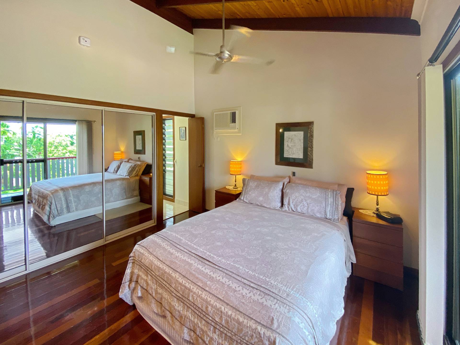 The front deck is the ideal place to watch the sunrise due to its elevation over the bay, which also means that the house captures the breezes beautifully, making this one of the coolest areas to live on the island. Inside, the raked ceilings and doors opening from each bedroom and living area onto covered decks mean the house stays cool all year round with little need for air con.