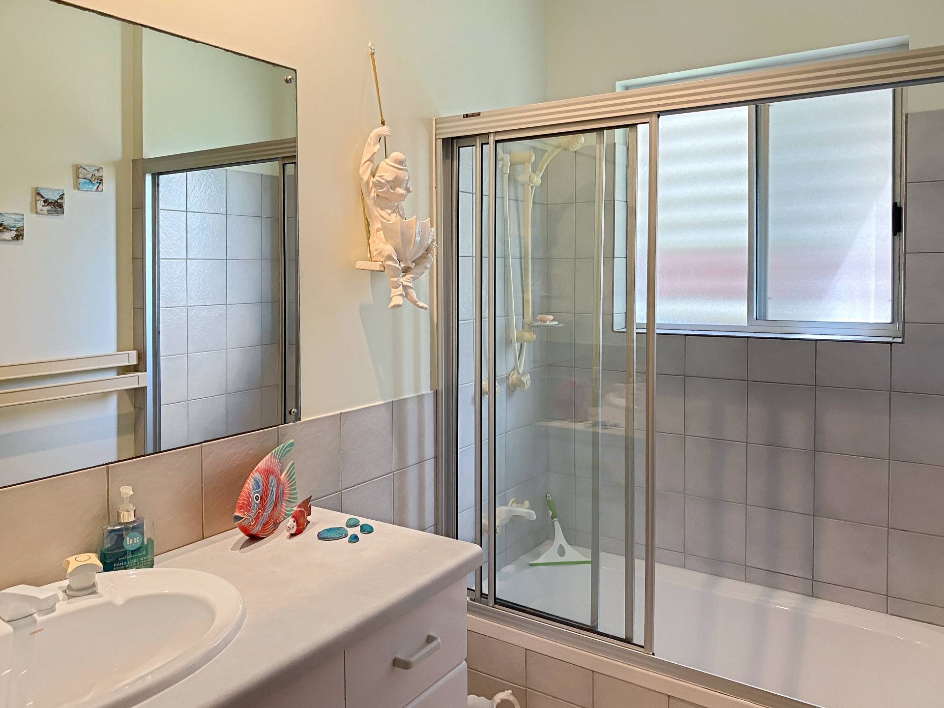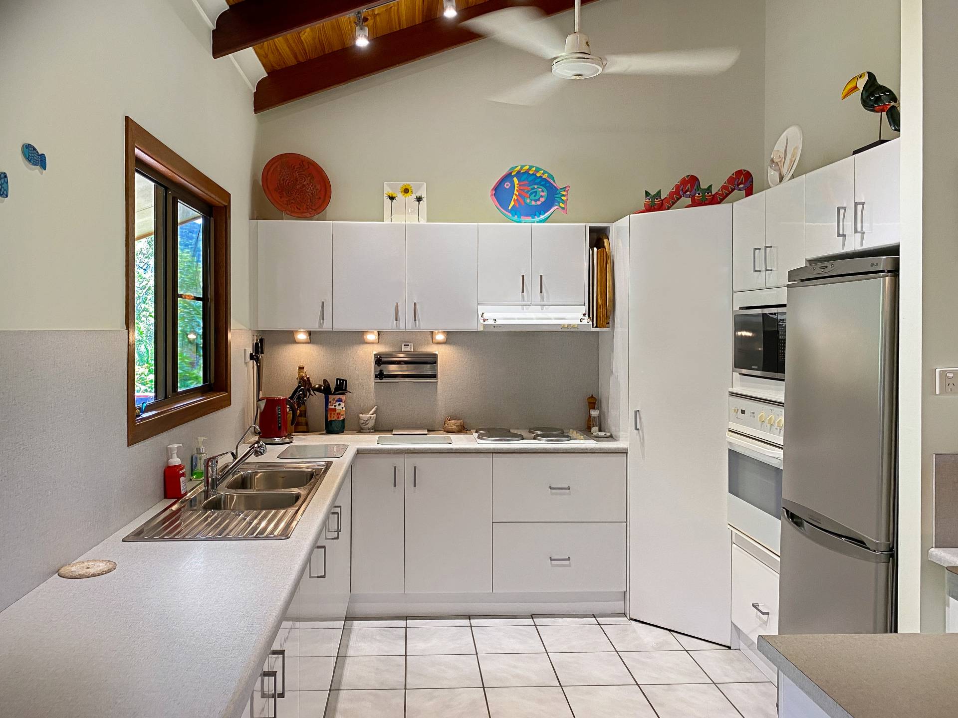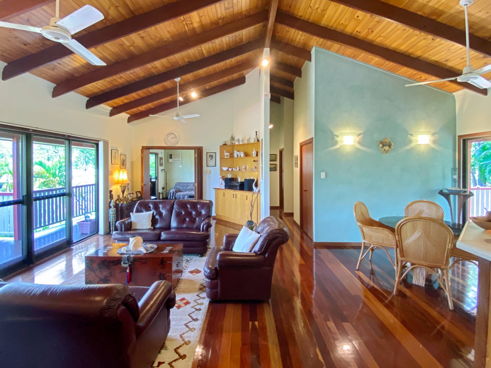 The third bedroom is currently utilised as a study but is also at the front of the property whilst the second bedroom is facing back to the National Park. All of the bedrooms have built-in-wardrobes, ceiling fans, box air con and high raked ceilings and all open out onto decks with glass sliding doors.