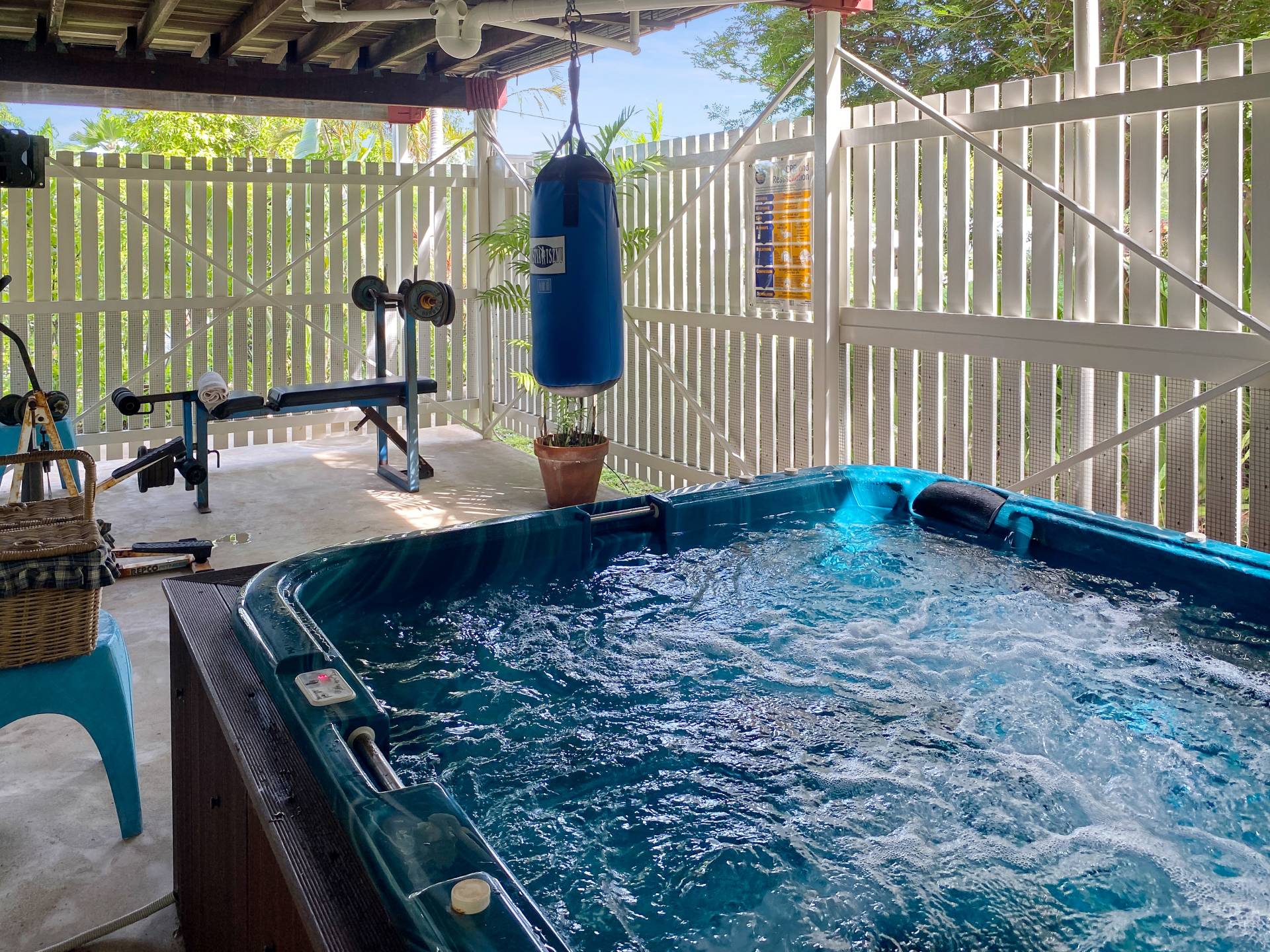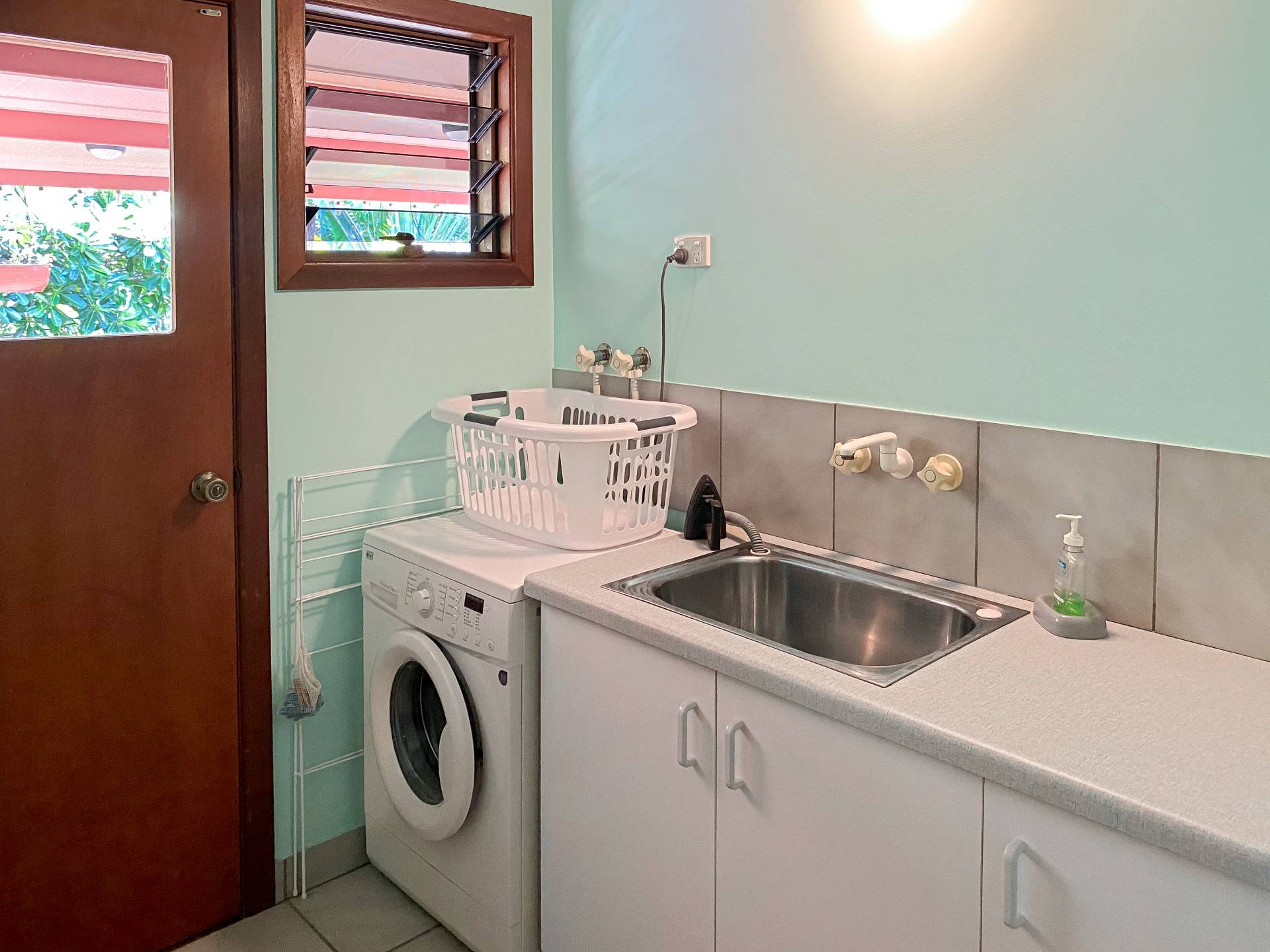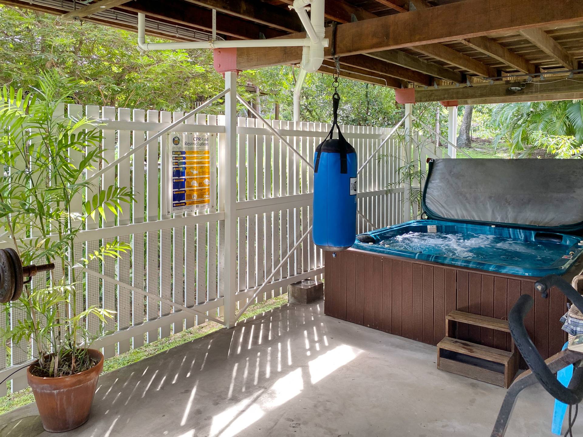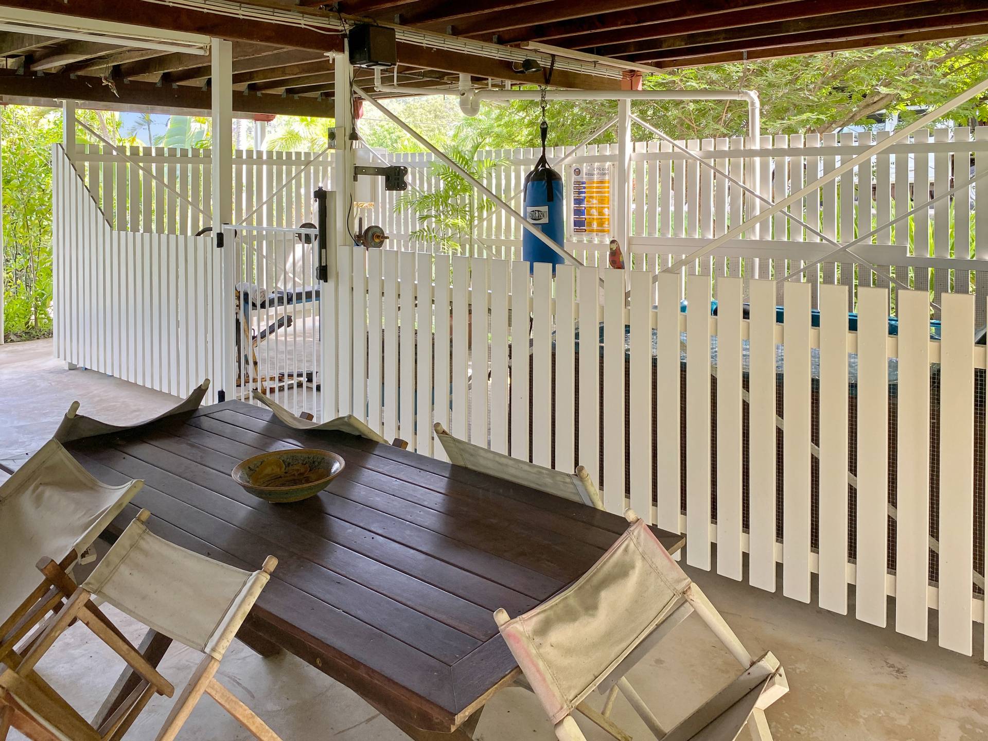 Front and back stairs allow easy access to the area under the house, which is a very useful level concreted area, with adequate height to be able to build in further. There's a great lock-up area for garden tools and storage plus a fenced area for the spa, ideal for cooling off after a day at the beach or office. There's still plenty of room for parking two vehicles undercover, with additional room for a pool table or ping pong table if desired. The home handyman, tradie or entertainer will find this area of great value - especially if you know the cost of concreting on the island!