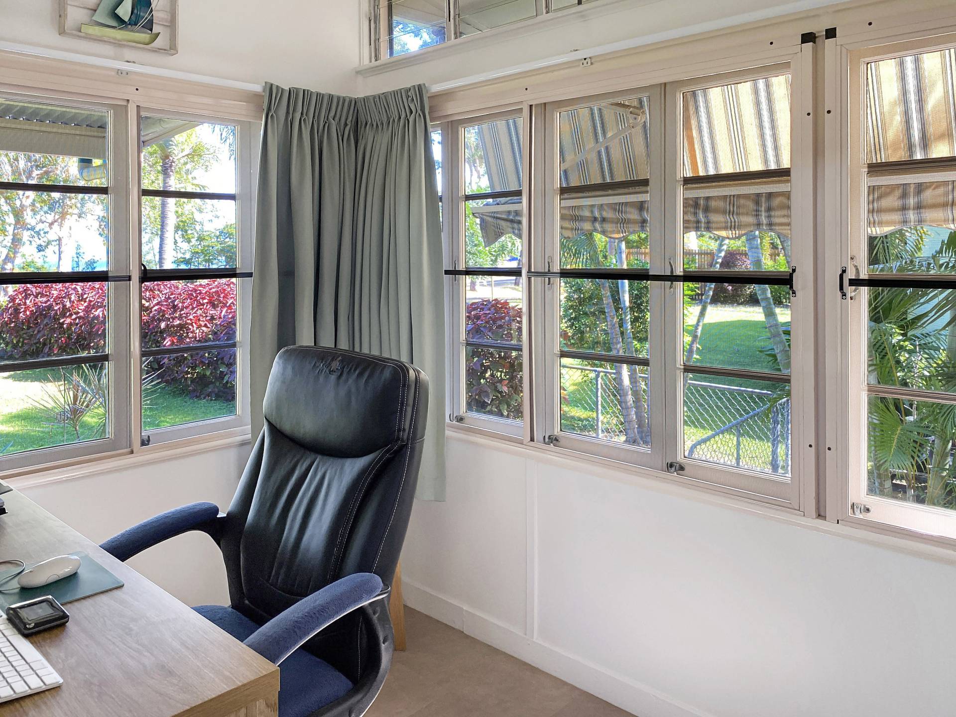 The kitchen has been sensitively modernised to suit the character home, with beautiful Tasmanian Blackwood benchtops, quality appliances, soft-close cabinetry and is open-plan to the living area and study, which occupies the front corner of the home, where you could spend more time watching boats sail by than working!