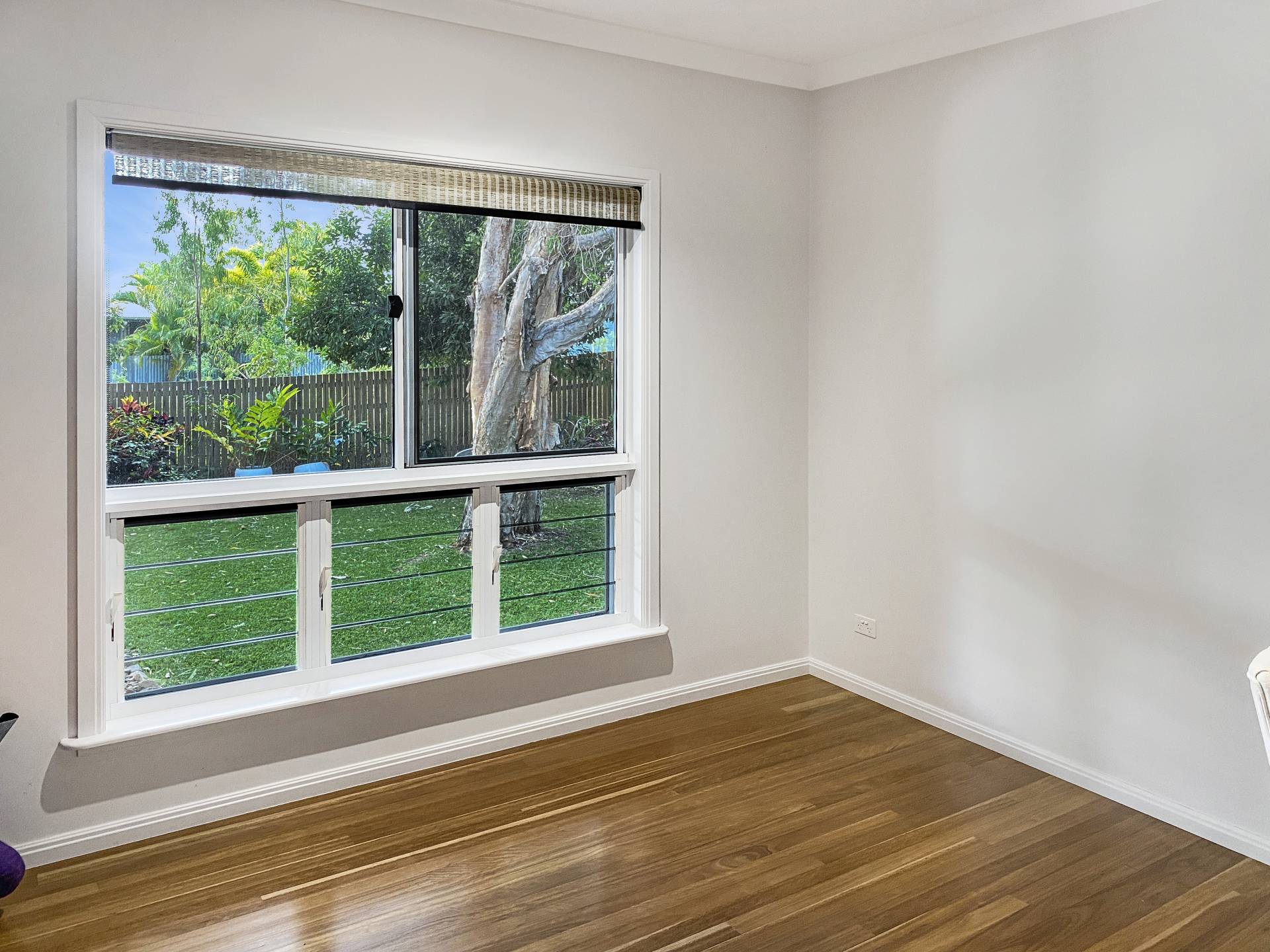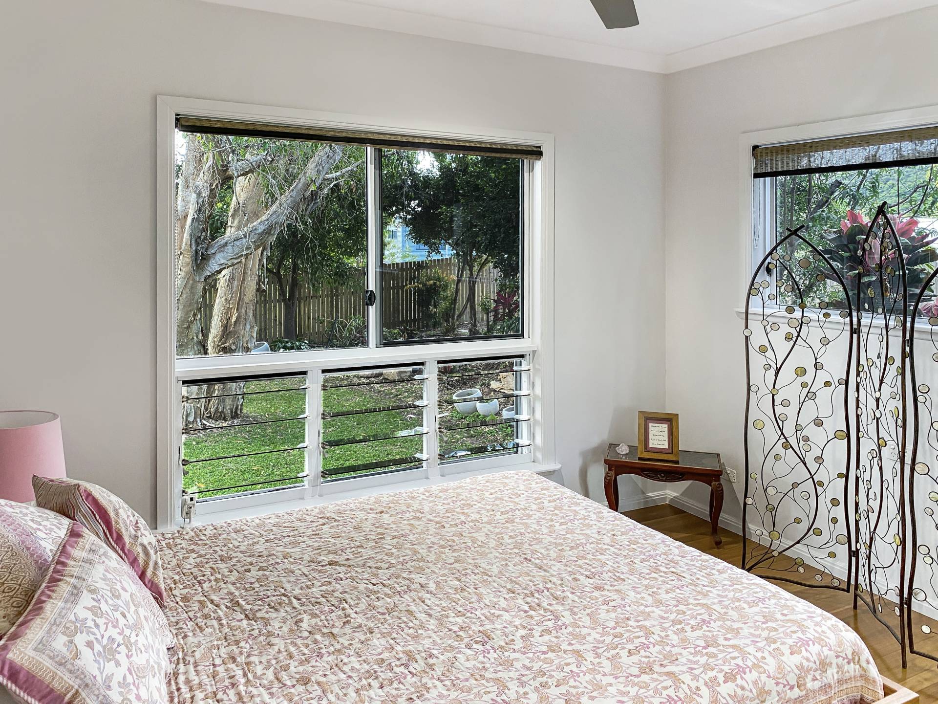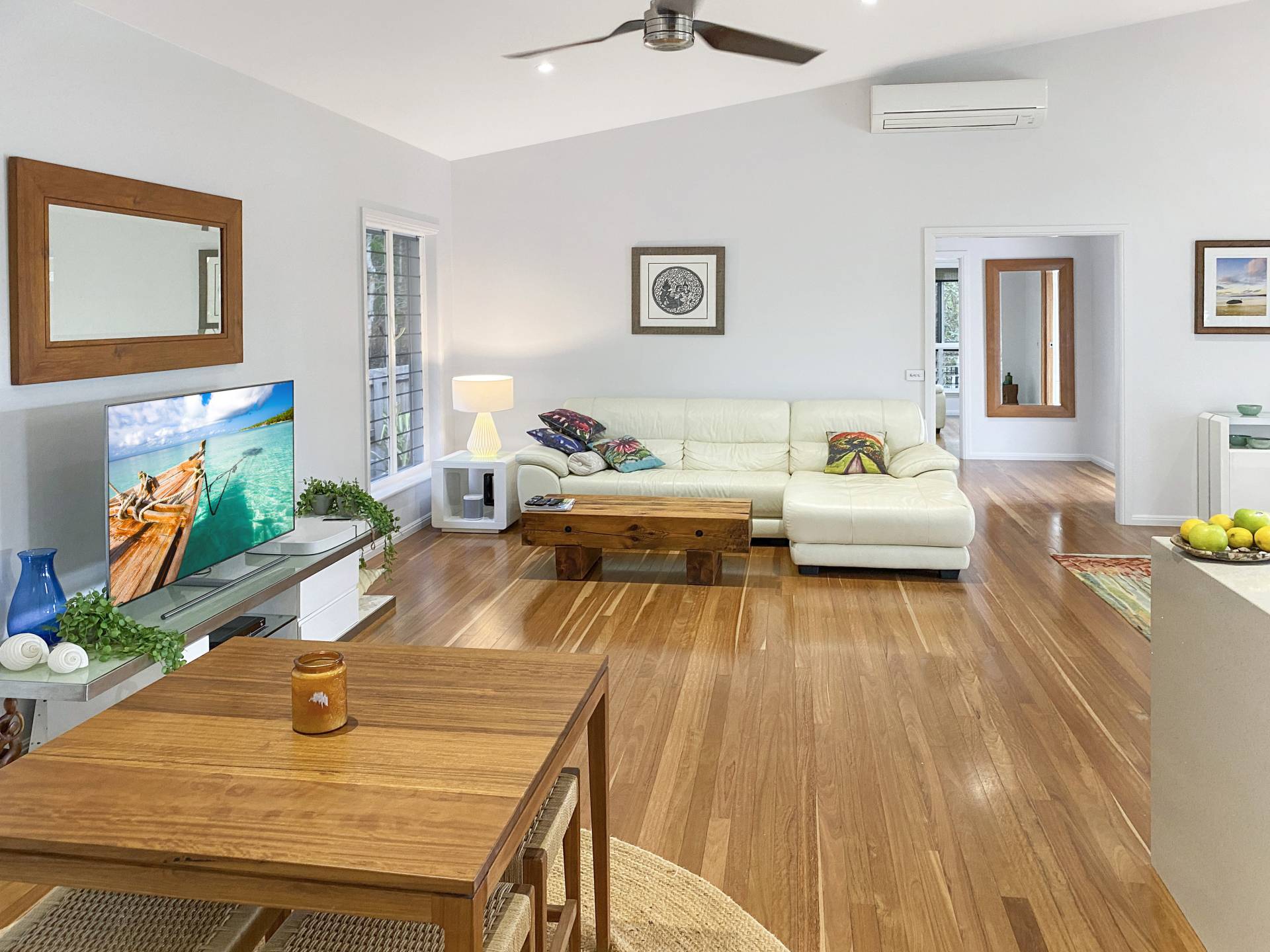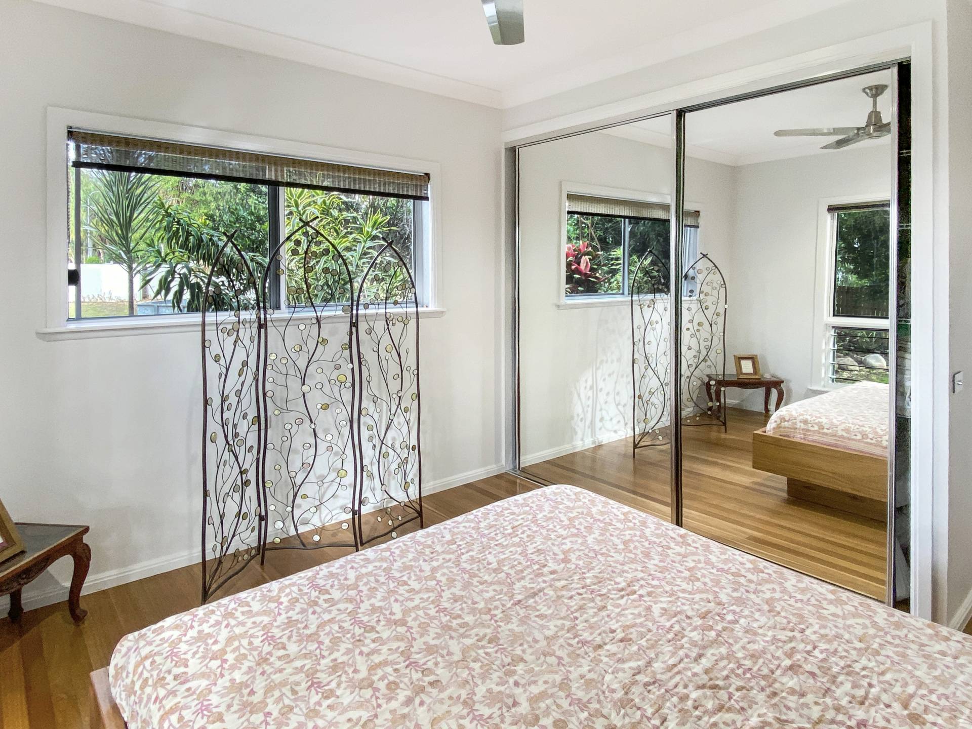The air-conditioned master bedroom opens onto its own covered front deck and you won't tire of waking to the views of the parkland behind from the hand-made hardwood bed custom-made to complement the home. The ensuite bathroom features a large walk-in shower, stylish mango wood vanity and a bath that bath-lovers will love!
