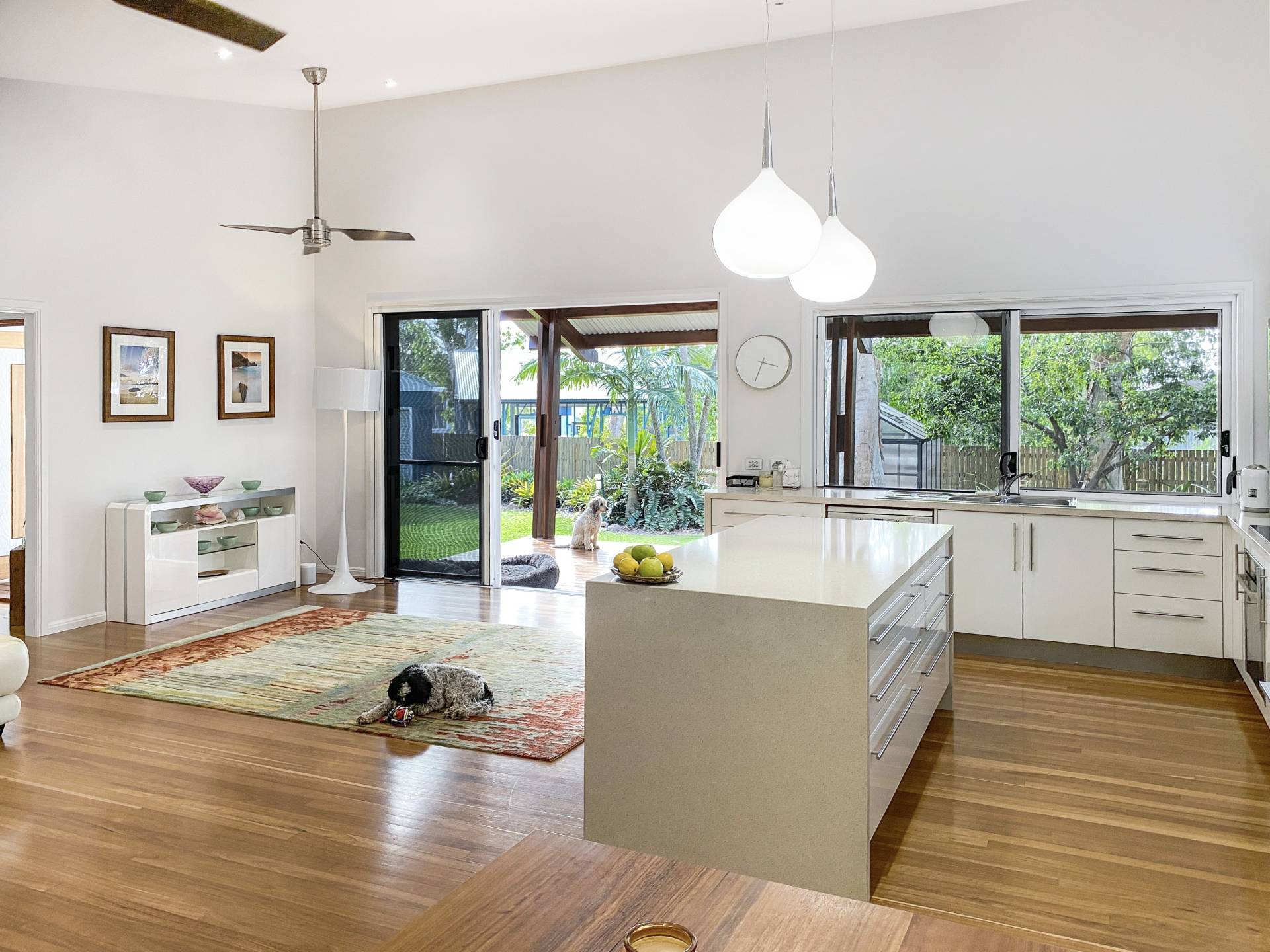 This contemporary home features a unique curved roof making it really stand out from the crowd. Adjoining beautiful parkland on two sides, its location is quiet and peaceful, yet just a short walk to the beach along a picturesque boardwalk through a conservation lagoon where native birdlife abounds.