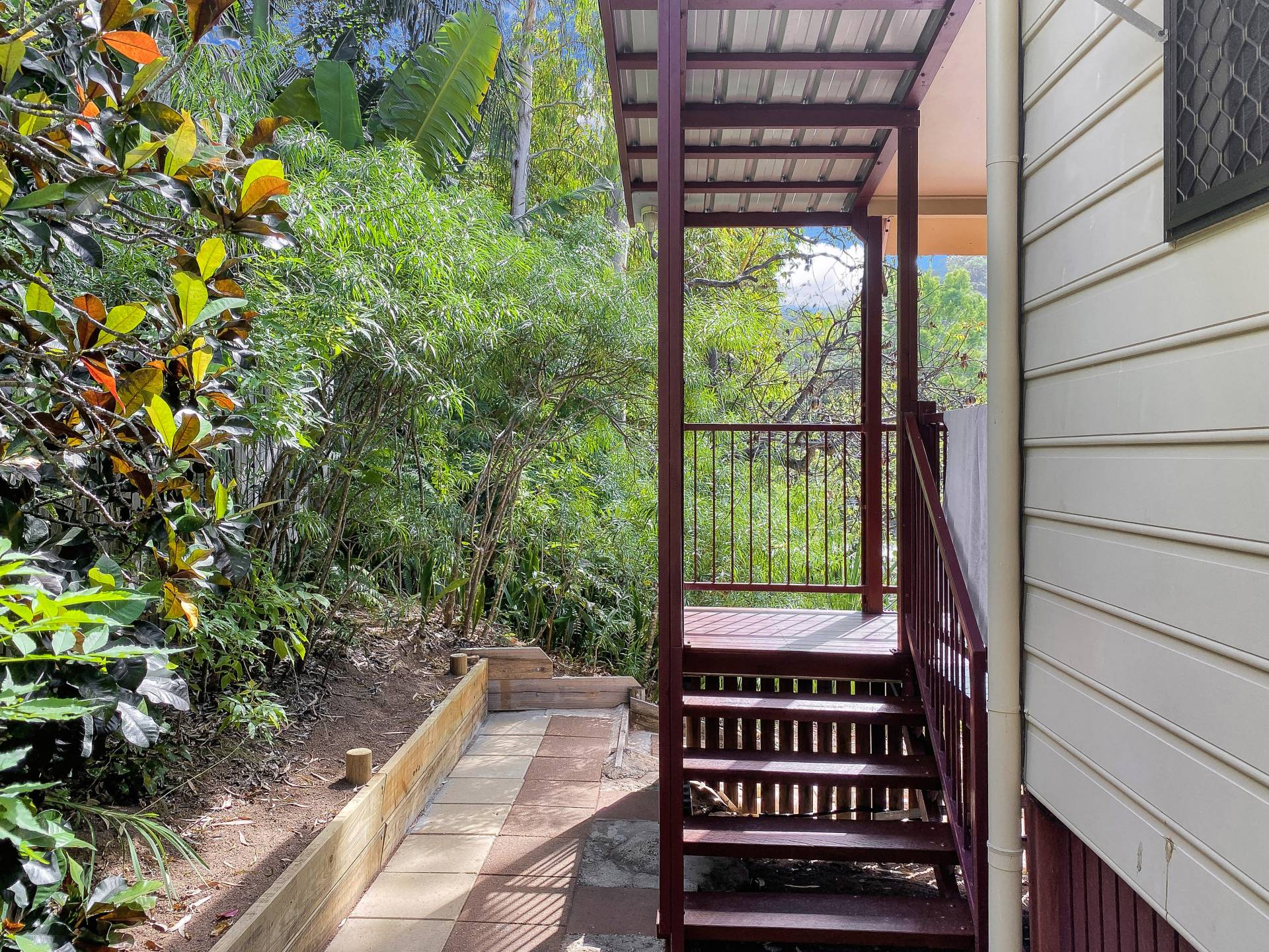 This house is set high on leafy Mirabel Avenue, its decks maximising the tree and mountain views whilst capturing the breezes perfectly. The large L-shaped deck wraps around the internal open-plan living area to provide another whole outdoor living and dining area whilst allowing lots of light inside.