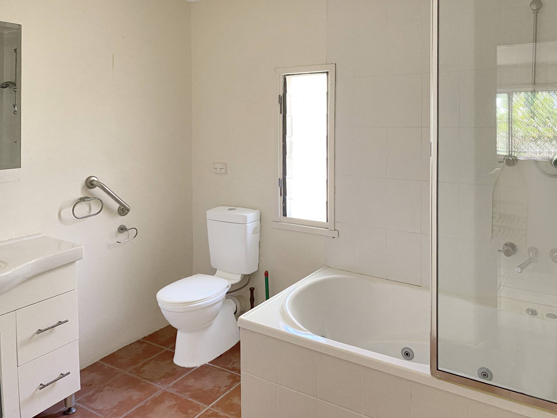 The master bedroom features built-in-wardrobes and ensuite bathroom with a shower over the spa bath.