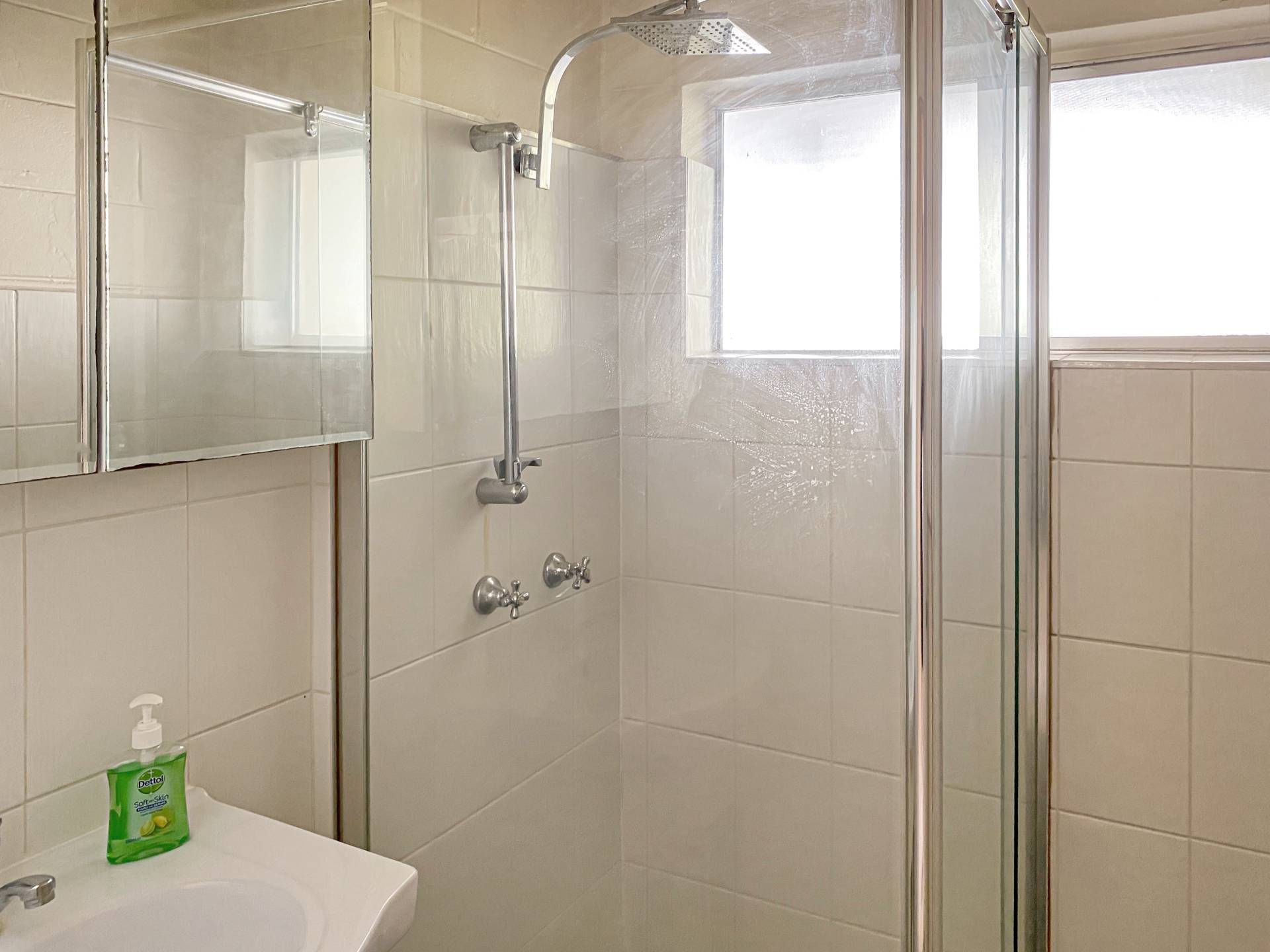 The family bathroom opens off the living area and features a shower and vanity with a separate toilet.