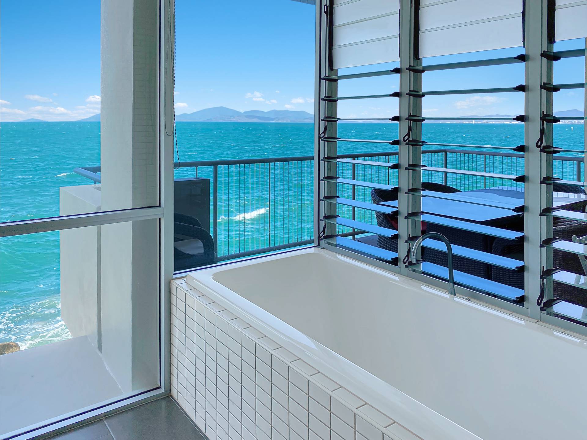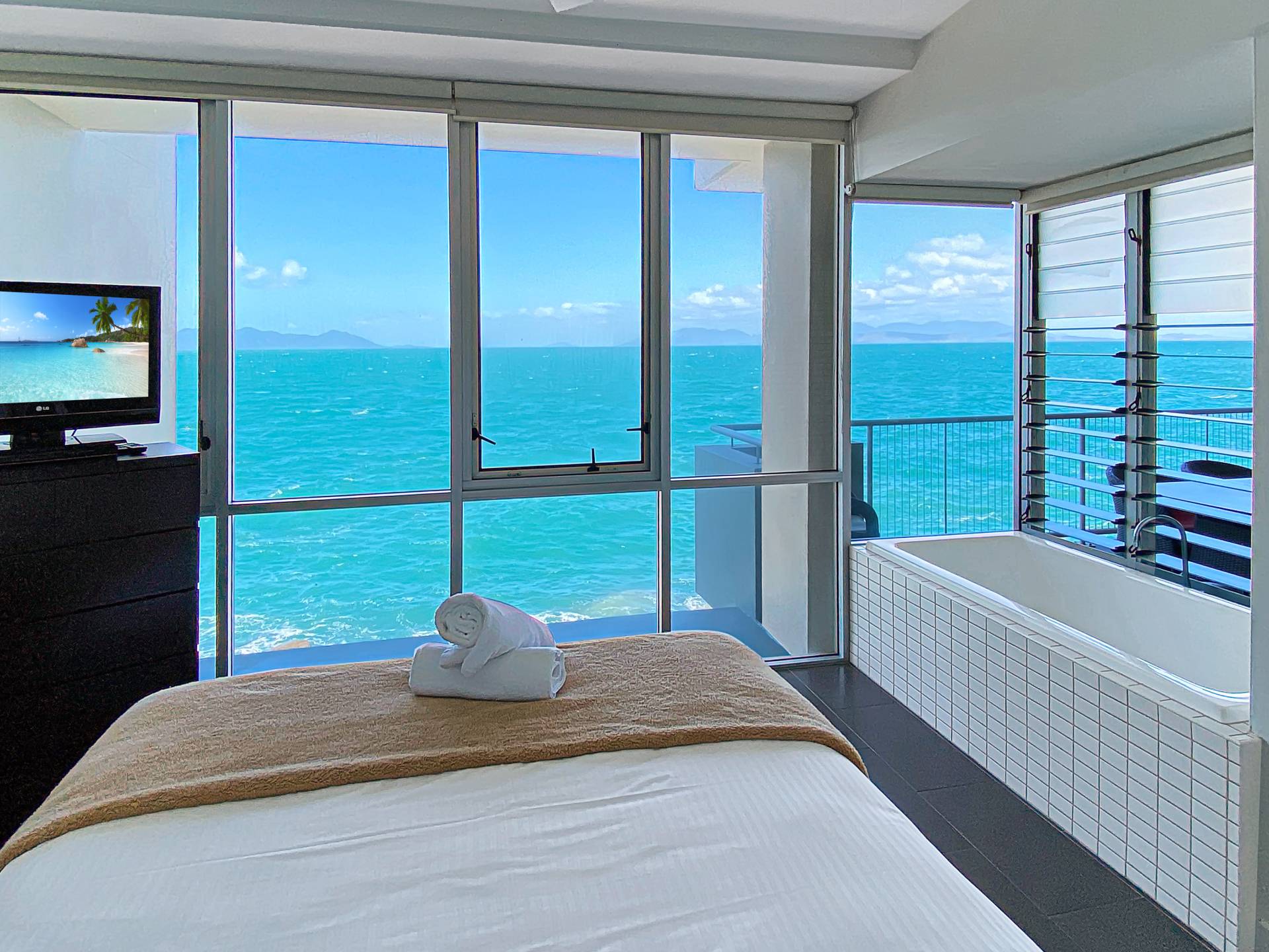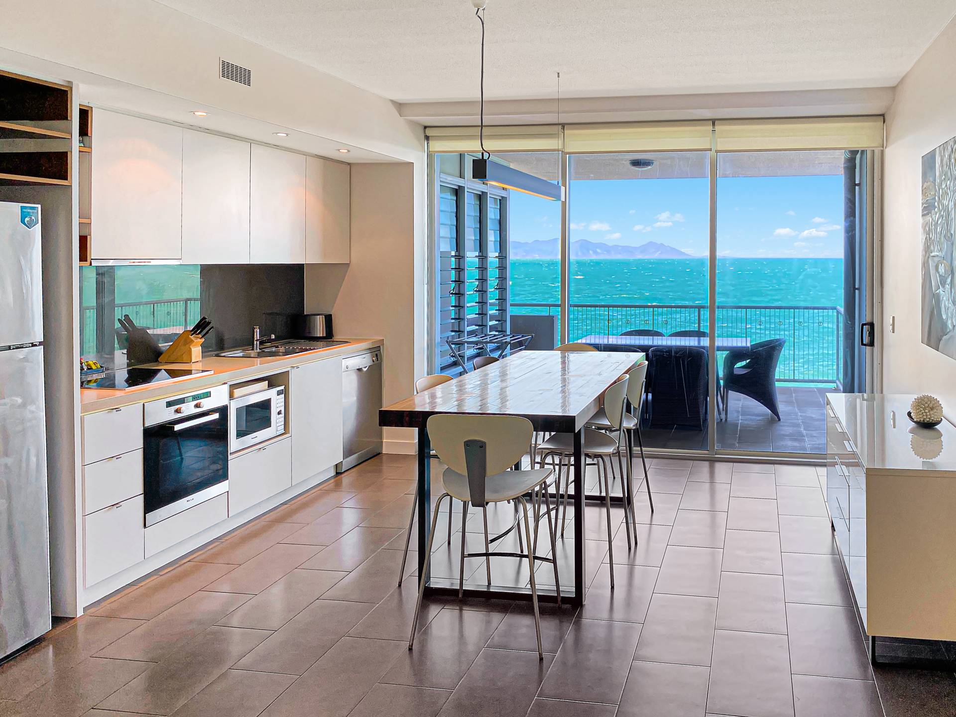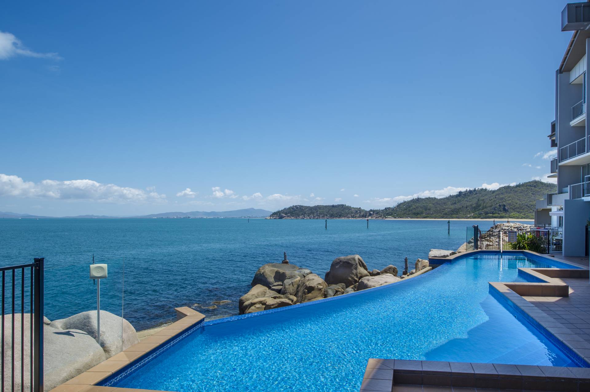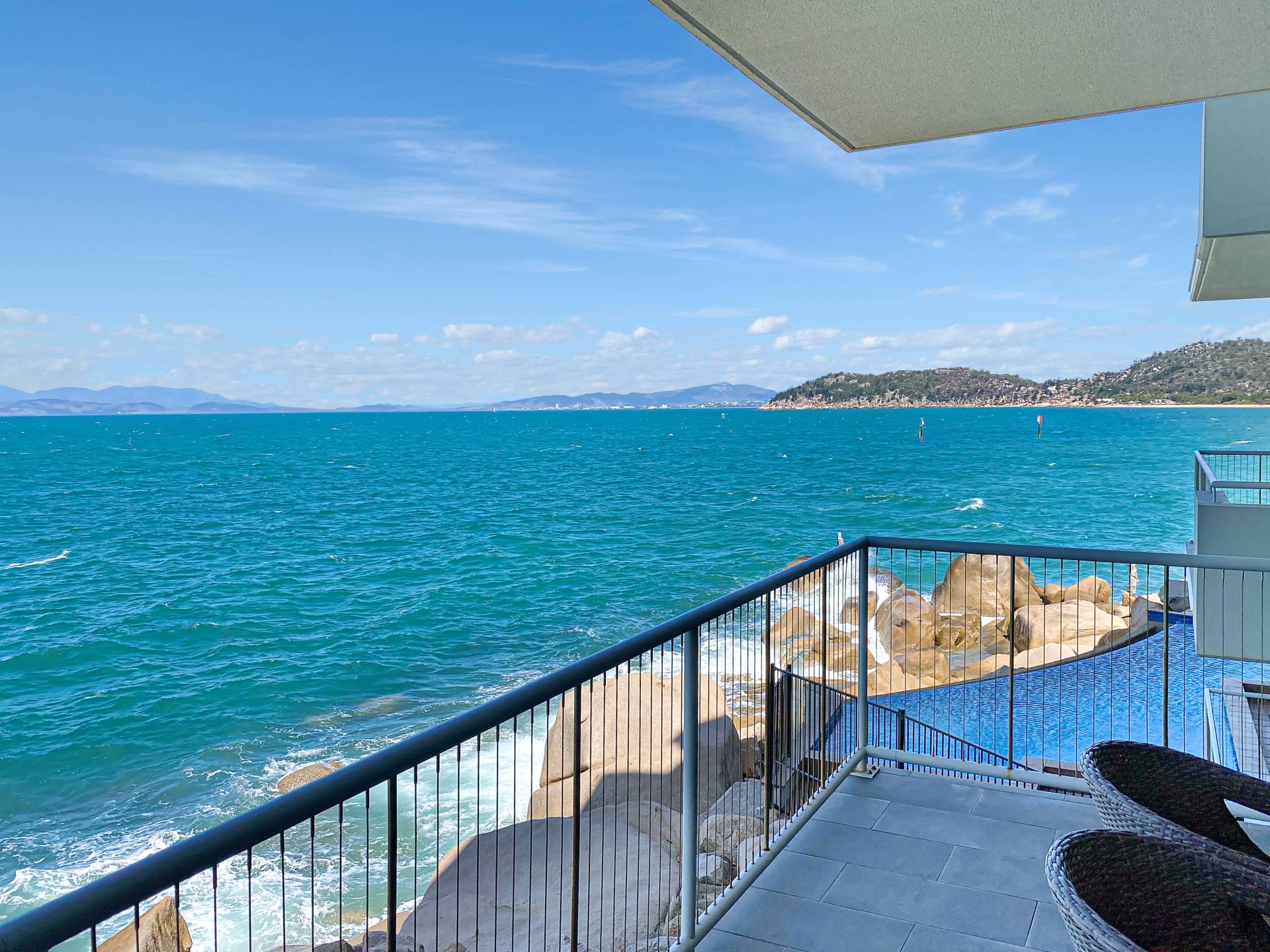 This oceanfront apartment enjoys privacy and ocean views to the mainland & lights of Townsville but also to the hills of the island and Nelly Bay beach. The iconic rounded granite boulders are just off the balcony where the remains of an old jetty can be seen and boats sailing in and out of the harbour provide some action to watch when the whales and turtles aren't playing out the front!