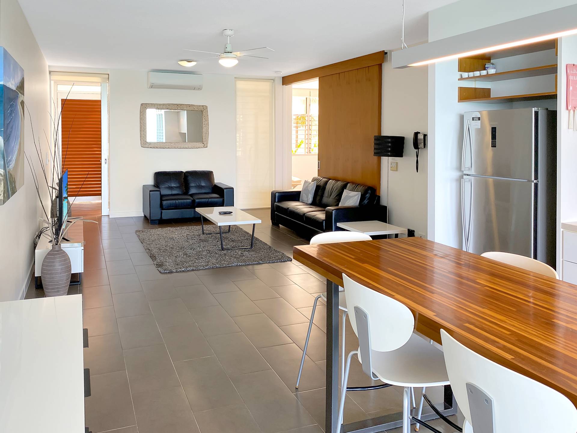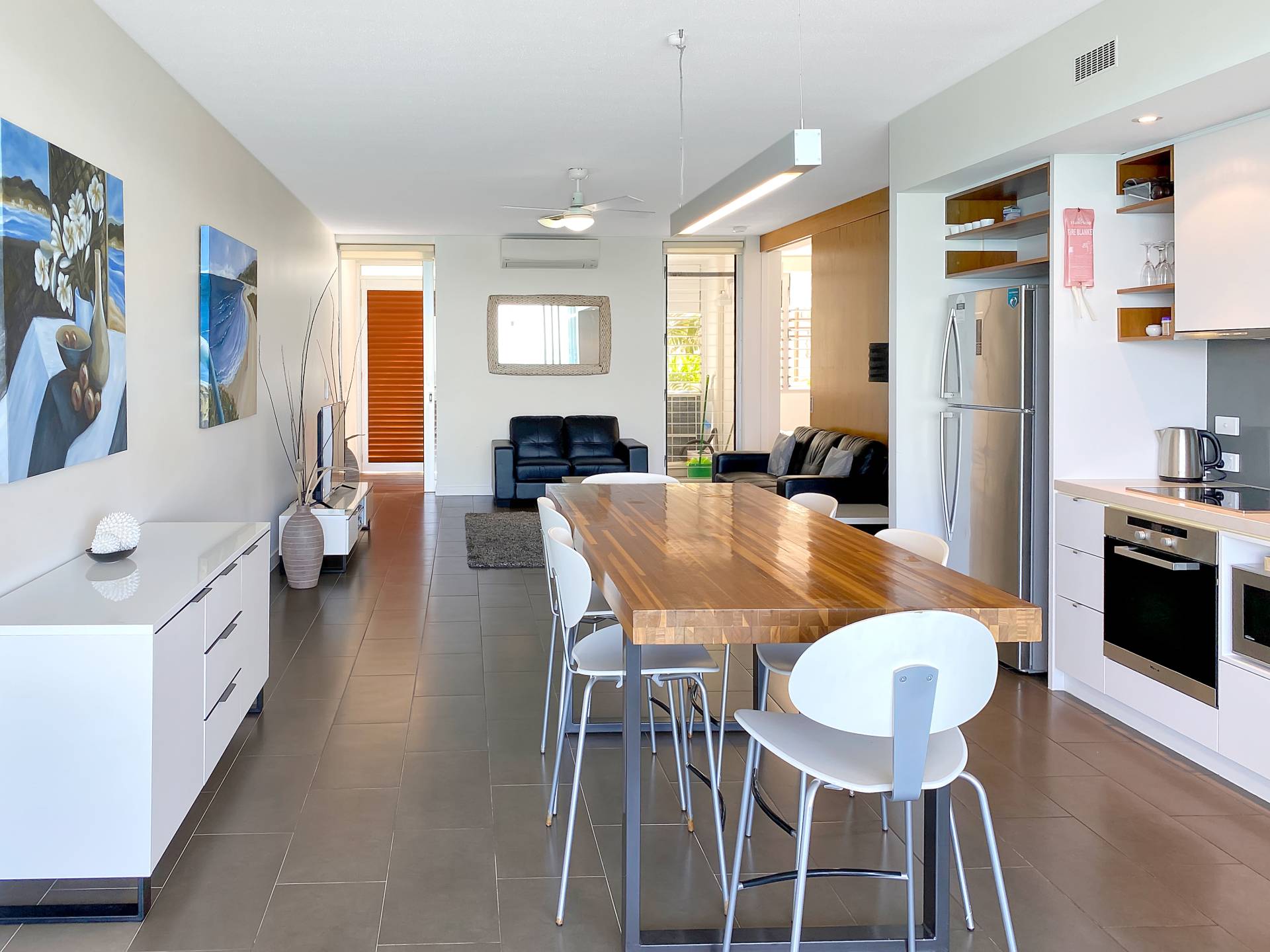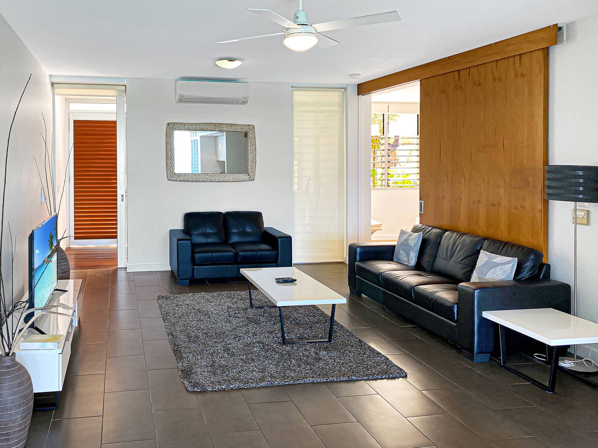 The open-plan living area opens onto the covered balcony, with sea breezes keeping the place cool anytime of year, although dthe apartment is fully air-conditioned for those who need it. The second bedroom is to the rear of the apartment, just off the living room, with the family bathroom easily accessible from both the living area and the bedroom. The master bedroom suite encompasses an ensuite shower and separate bath, from which you can enjoy the ocean views.