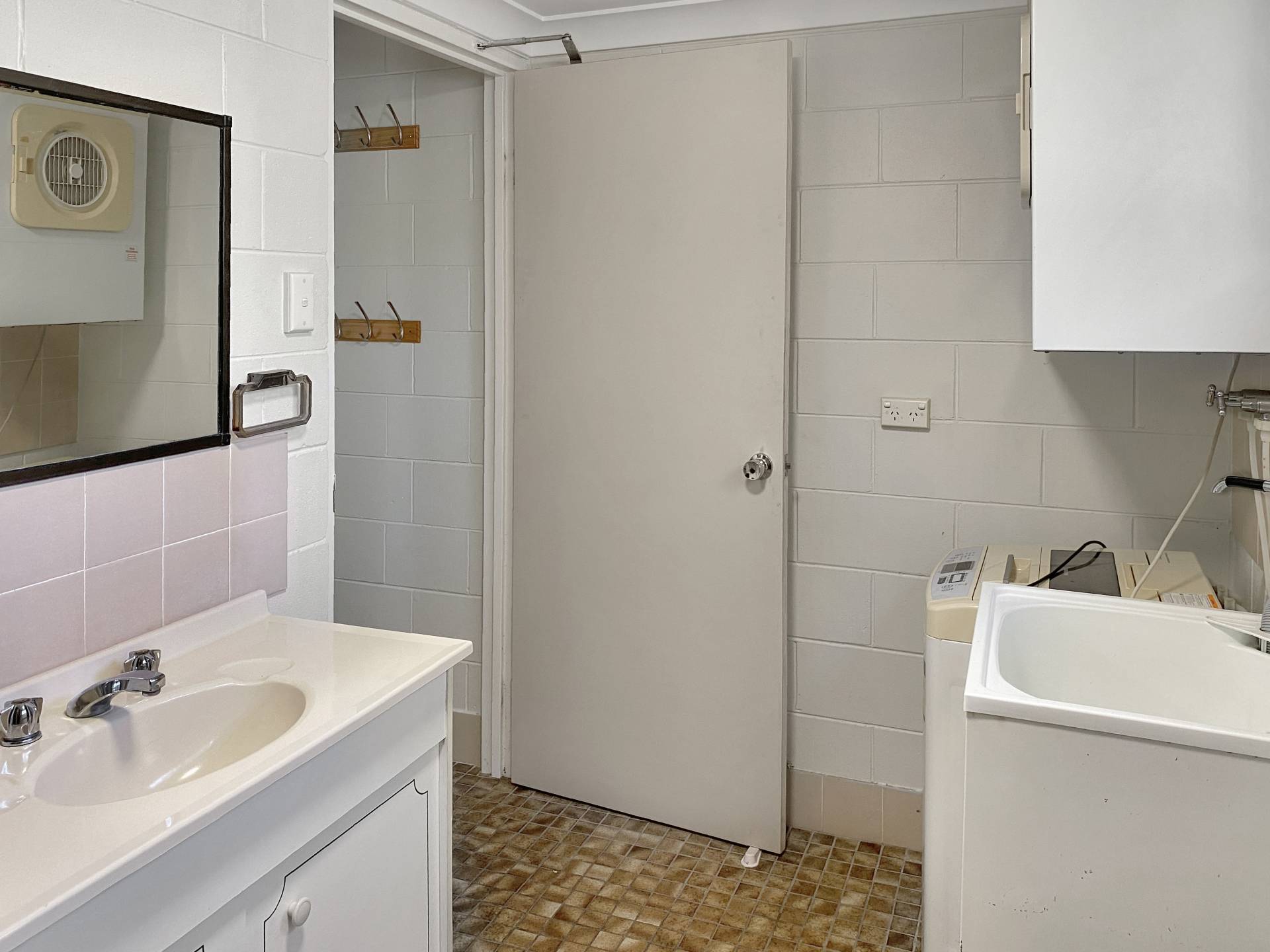 * Combined laundry/bathroom