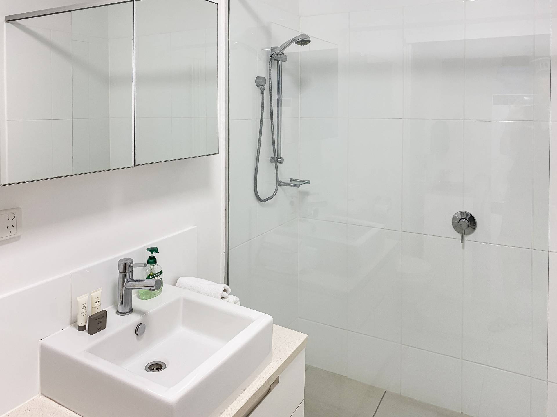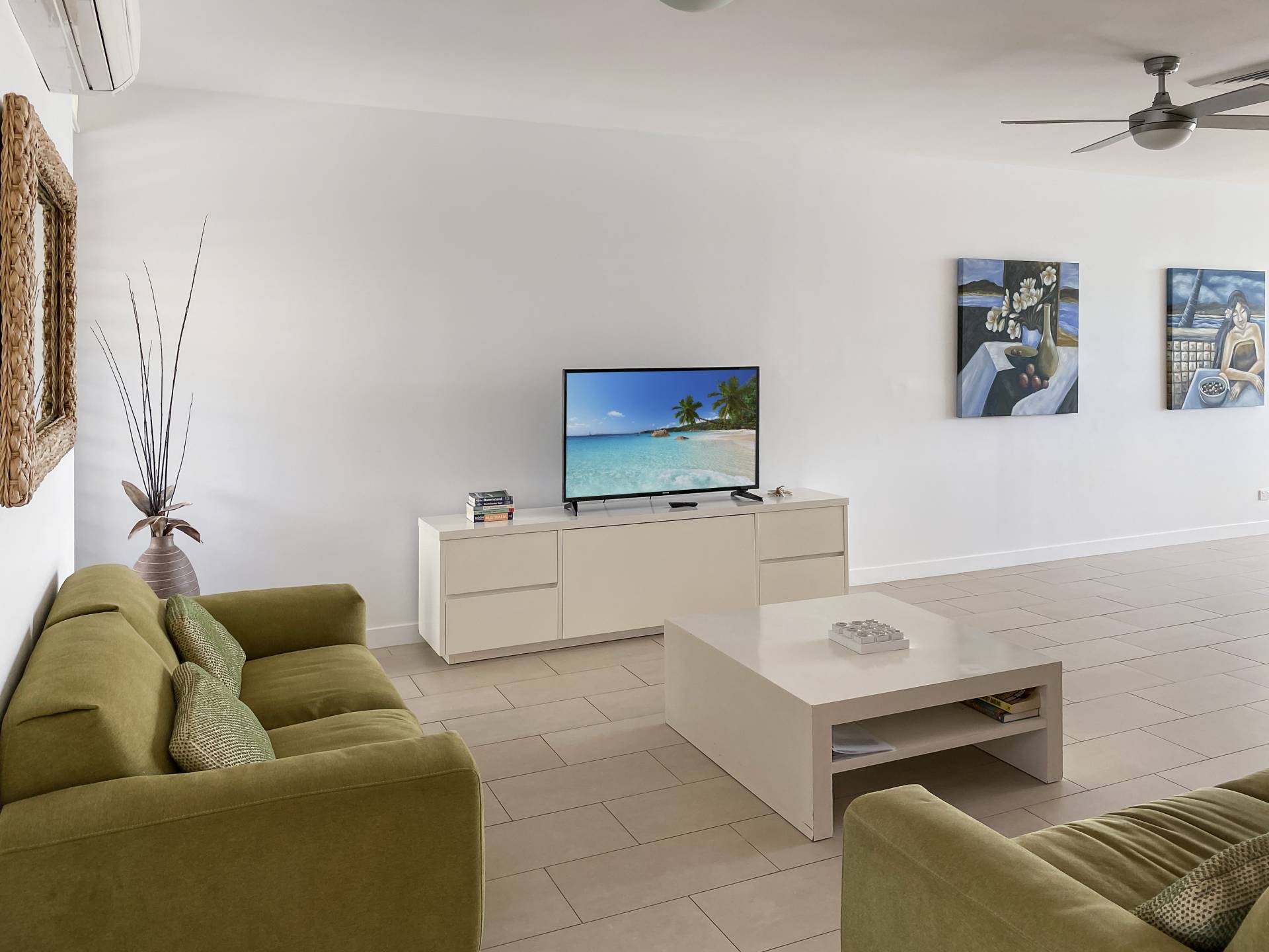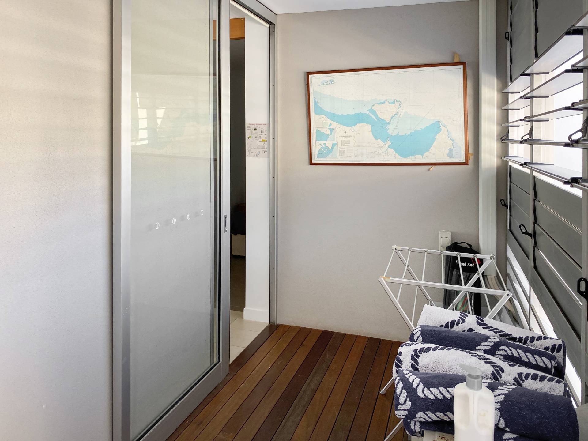 Enter into the 'beach room' and you immediately see straight through the glass louvres to the view ahead. The open-plan living area is spacious, bright and captures gentle sea breezes with excellent cross-ventilation and is pleasant whatever the weather with ceiling fans and split system aircon. The living extends through the galley style kitchen and out onto the covered balcony where you'll likely spend a lot of time, gazing out at the ever-changing view.