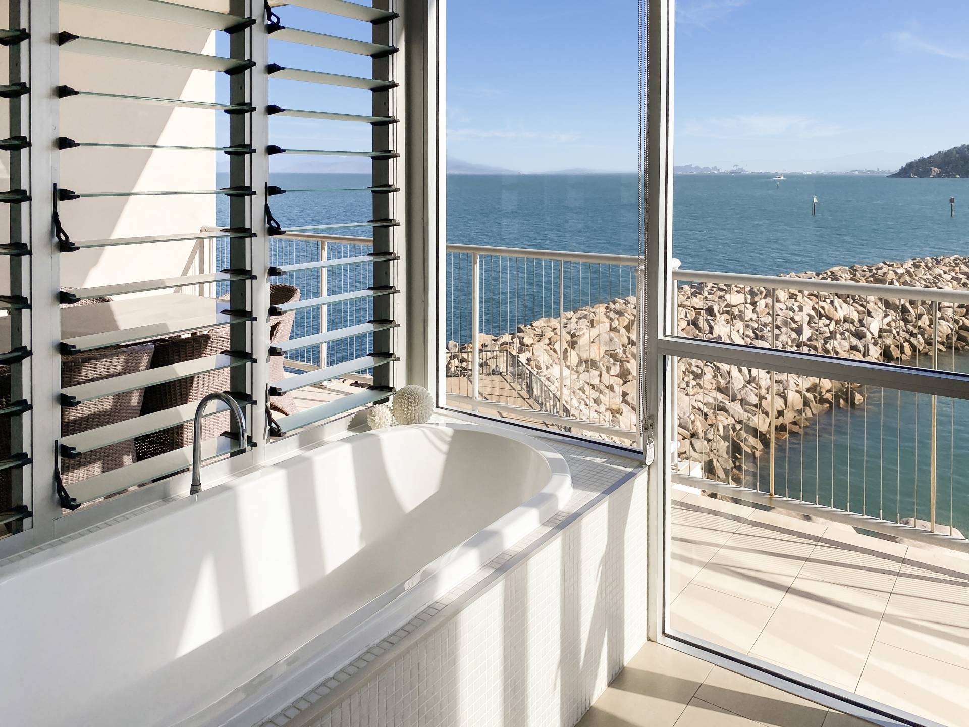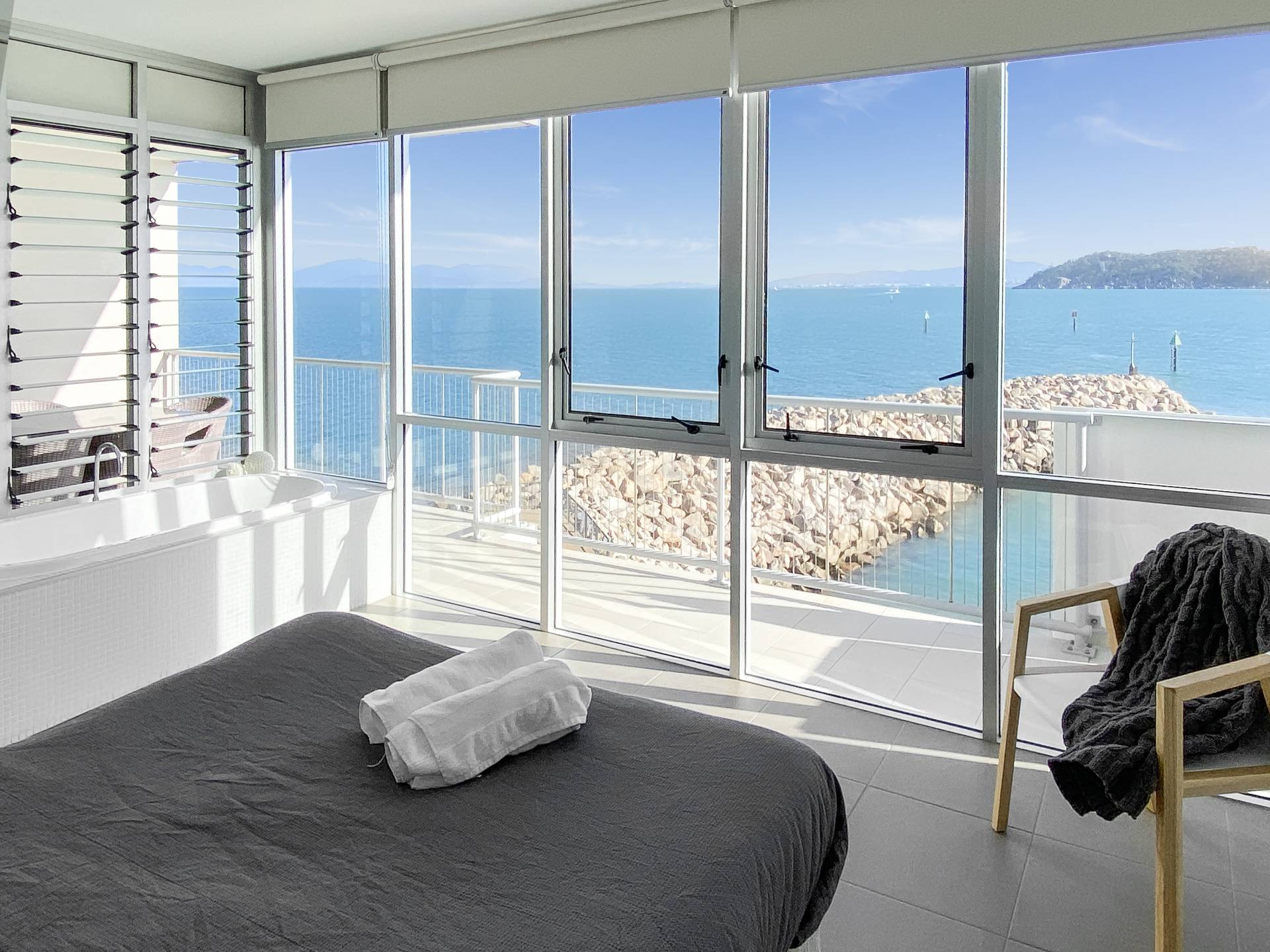 Wake up to the the sunrise bouncing its colours off the boulders and ocean and enjoy the sunset and distant city lights as you take a bath or shower in the ensuite.
