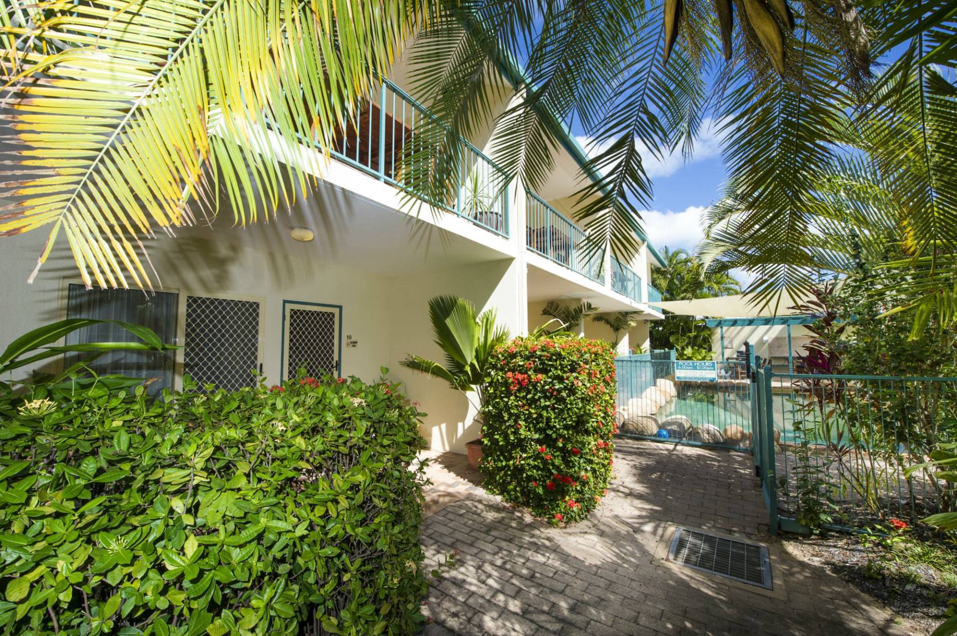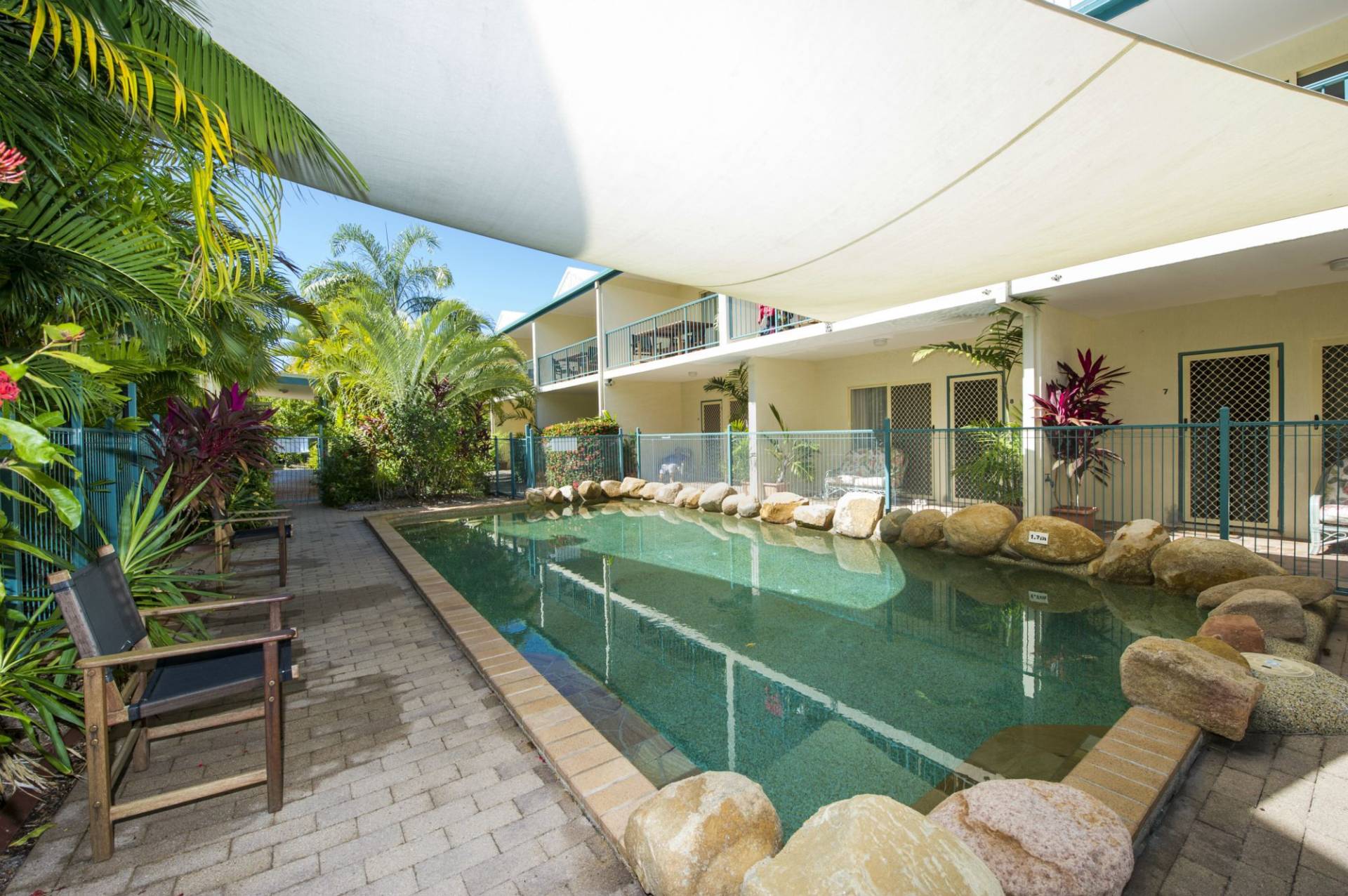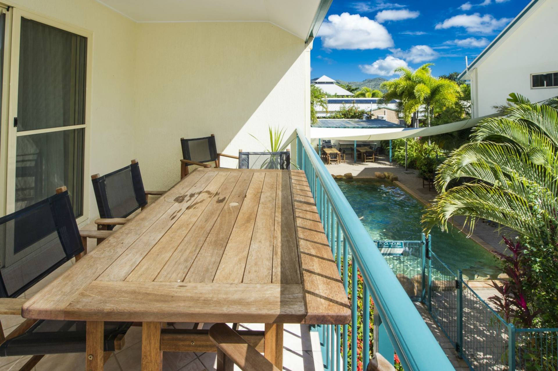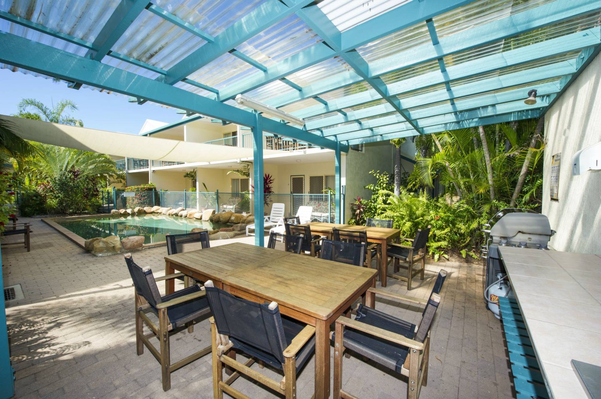 A small covered patio at the entry is a nice spot to sit and meet the other guests and is just metres from the lovely resort pool and communal bbq area.
