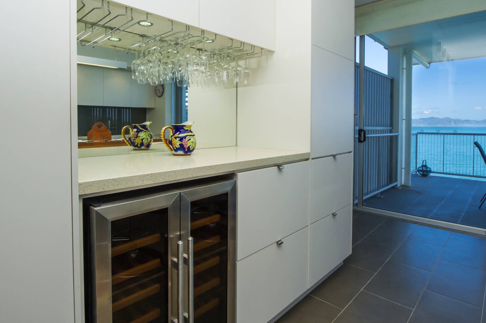 The kitchen features stone benchtop, large double door plumbed fridge freezer, dishwasher, oven and cooktop with a bar, wine fridge, pantry and additional storage which is unique to this apartment and indispensable to an owner-occupier.