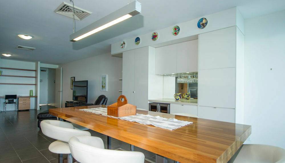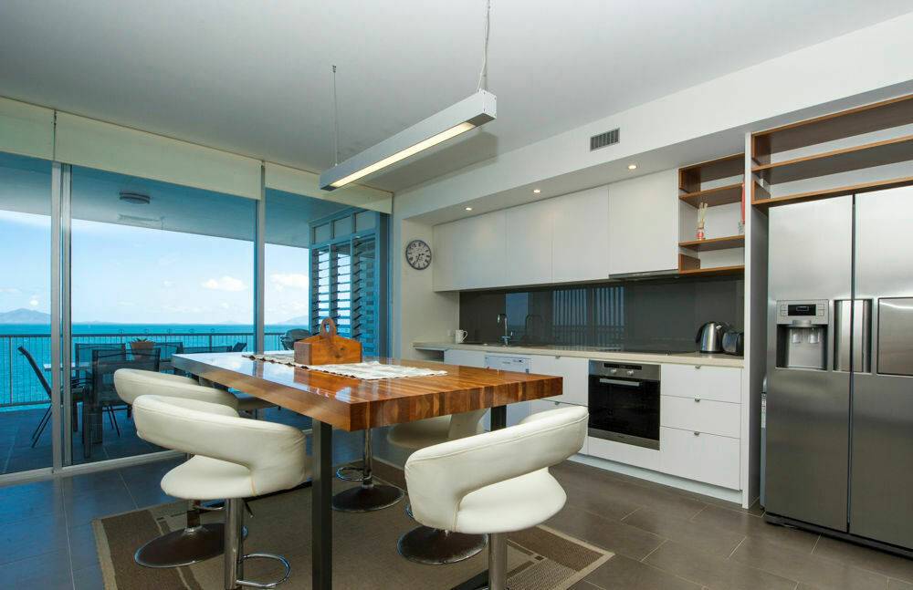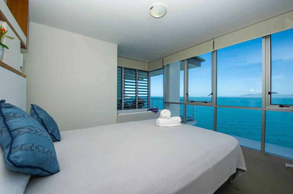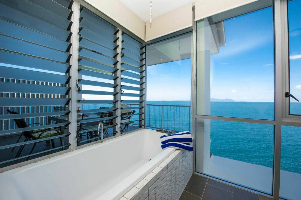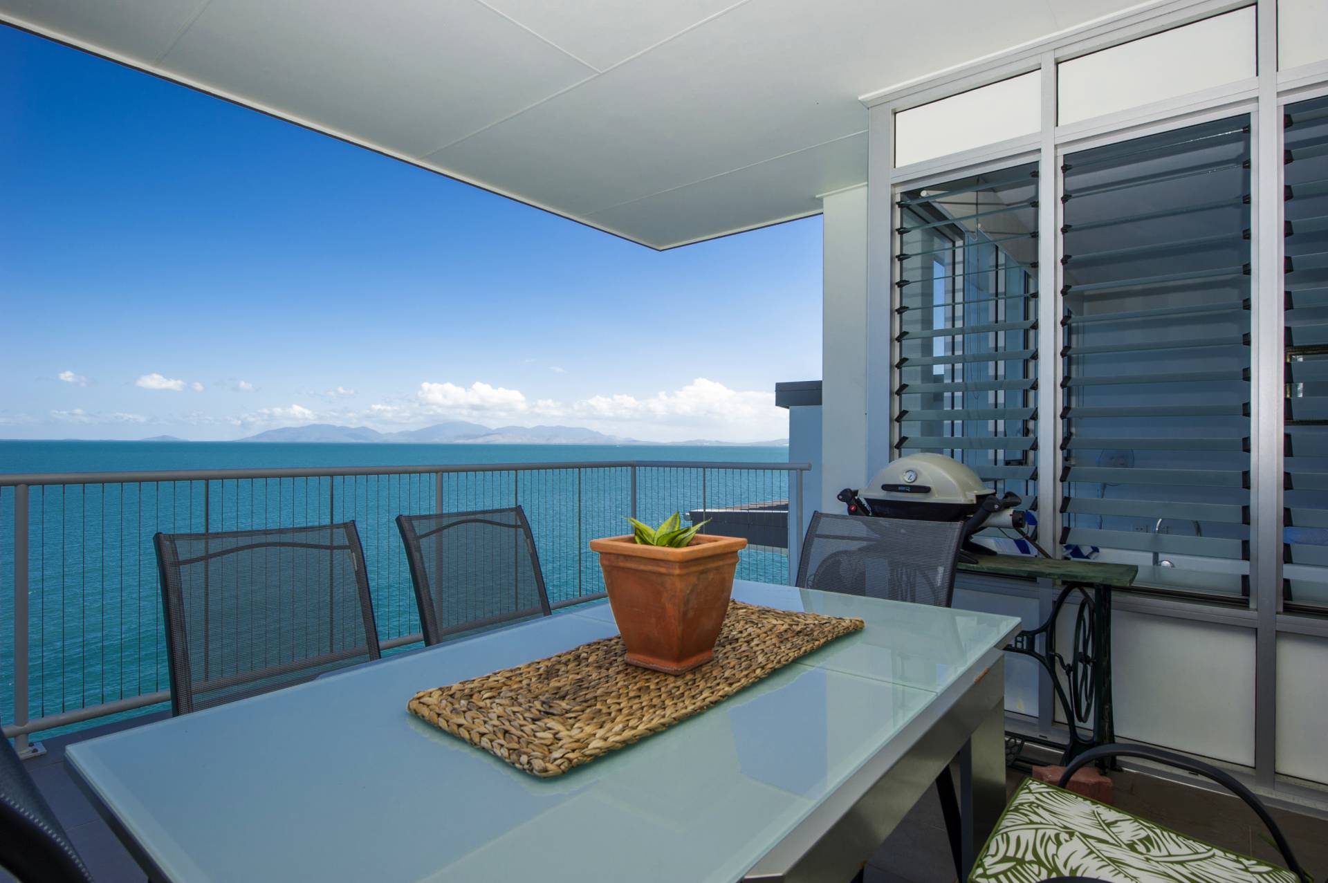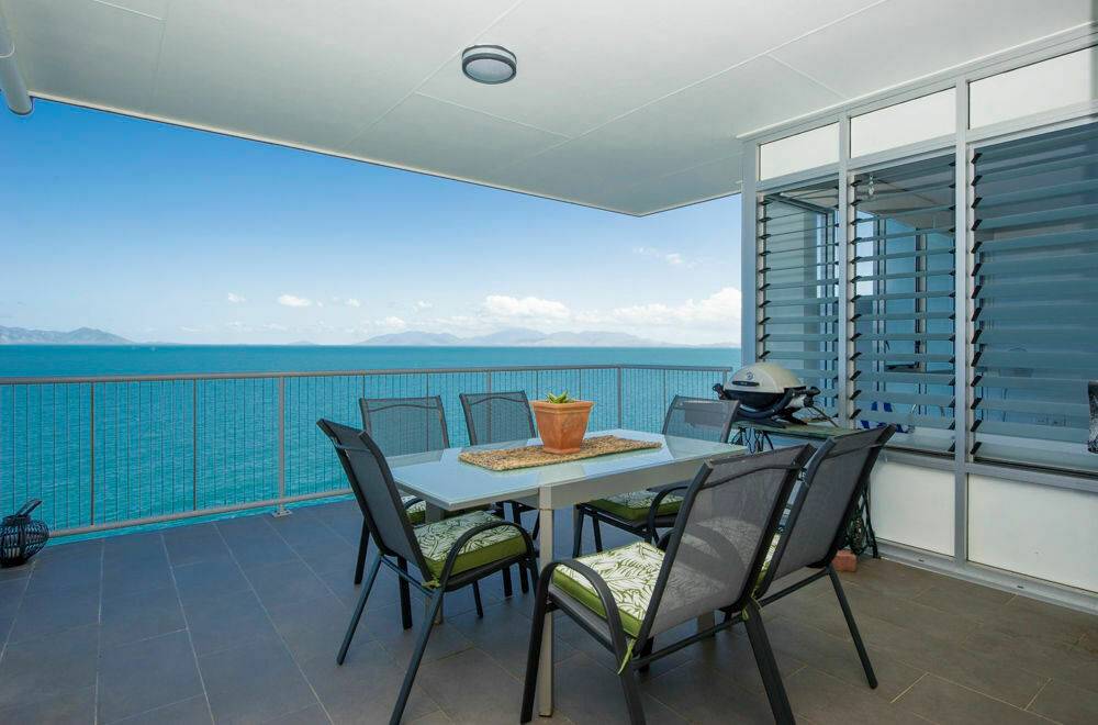 This well-positioned fully furnished 3 bedroom oceanfront apartment takes advantage of its top floor corner location to provide stunning views across the Coral Sea to Cape Cleveland as well as views across beautiful Geoffrey Bay and Arcadia.
