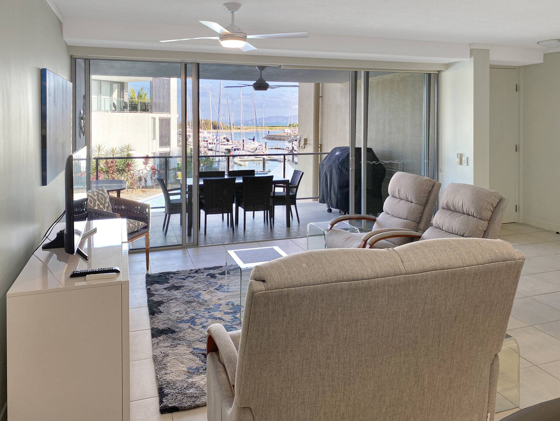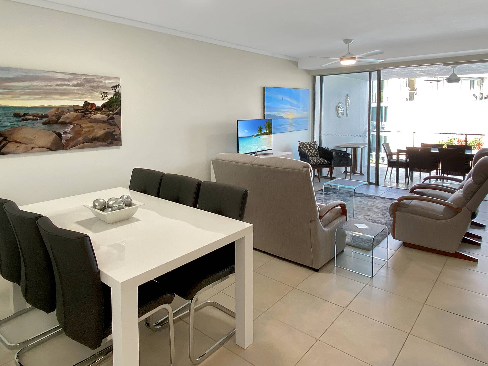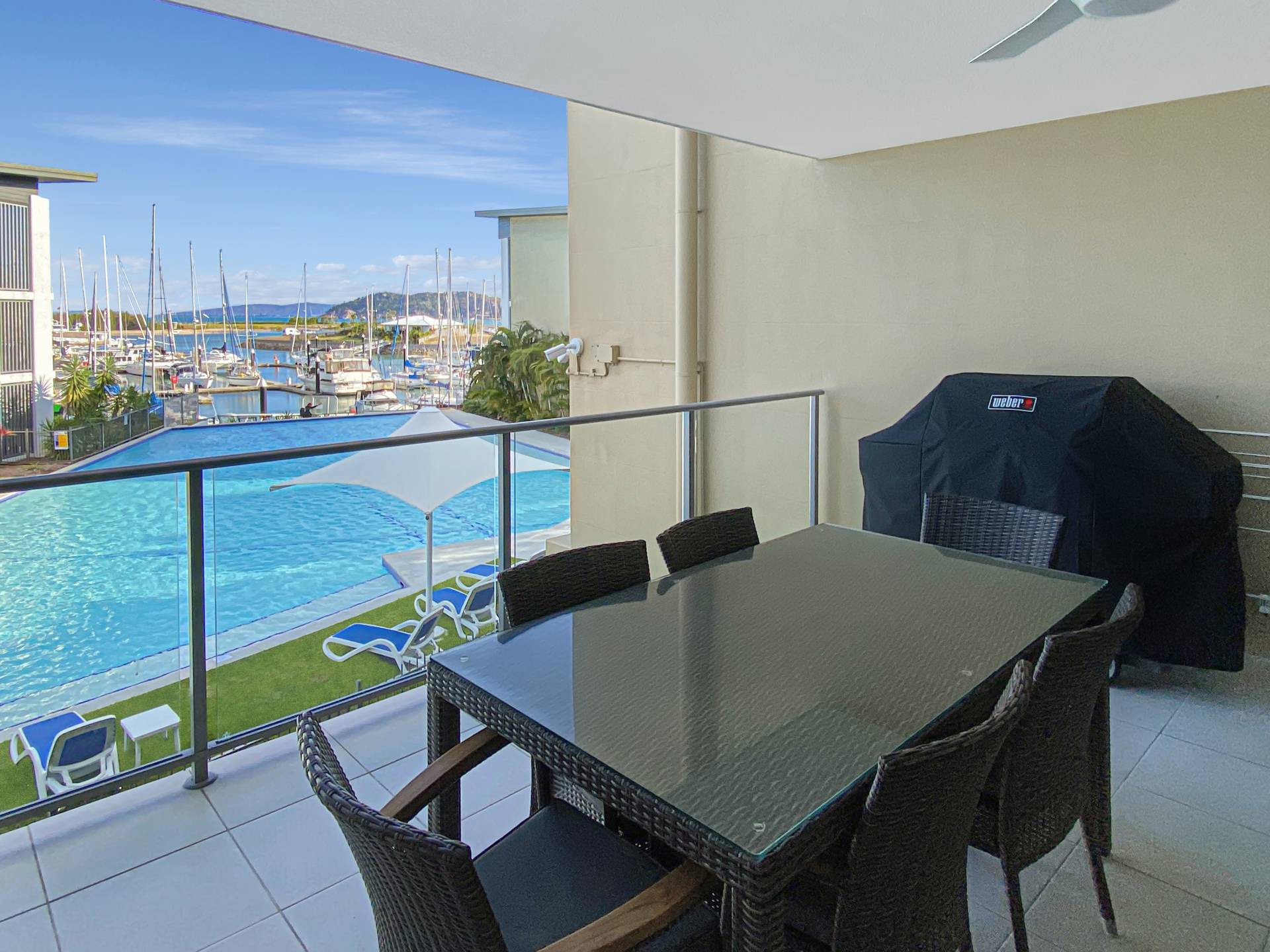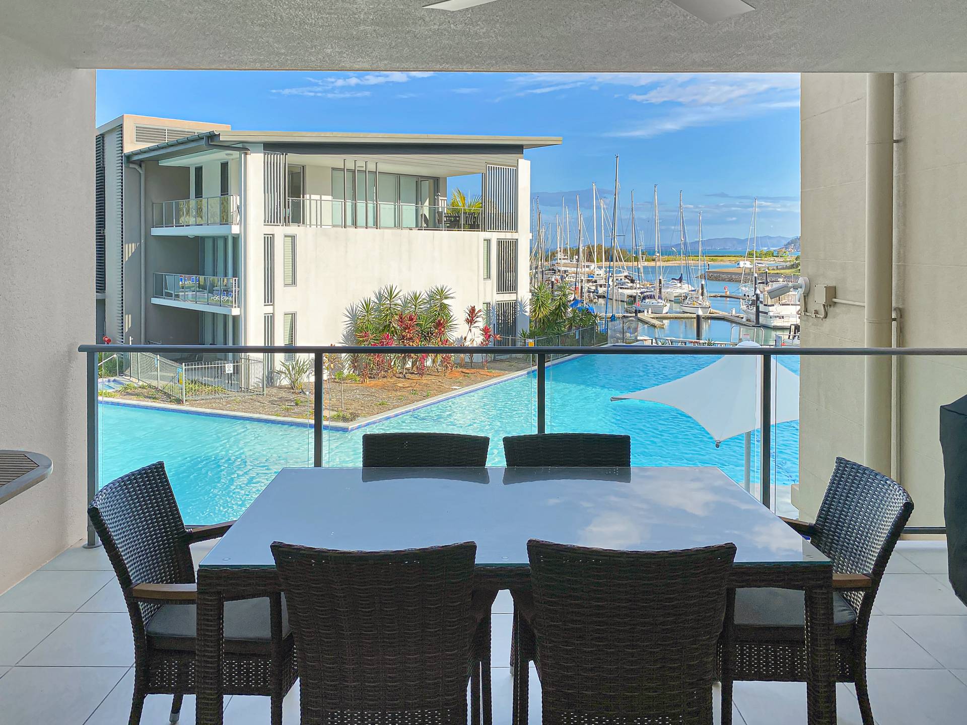 This recently updated apartment is neat and tidy and ready to move into or holiday let. It offers excellent views across the lagoon pool, marina and across the Coral Sea to the twinkling lights of Townsville on the mainland.