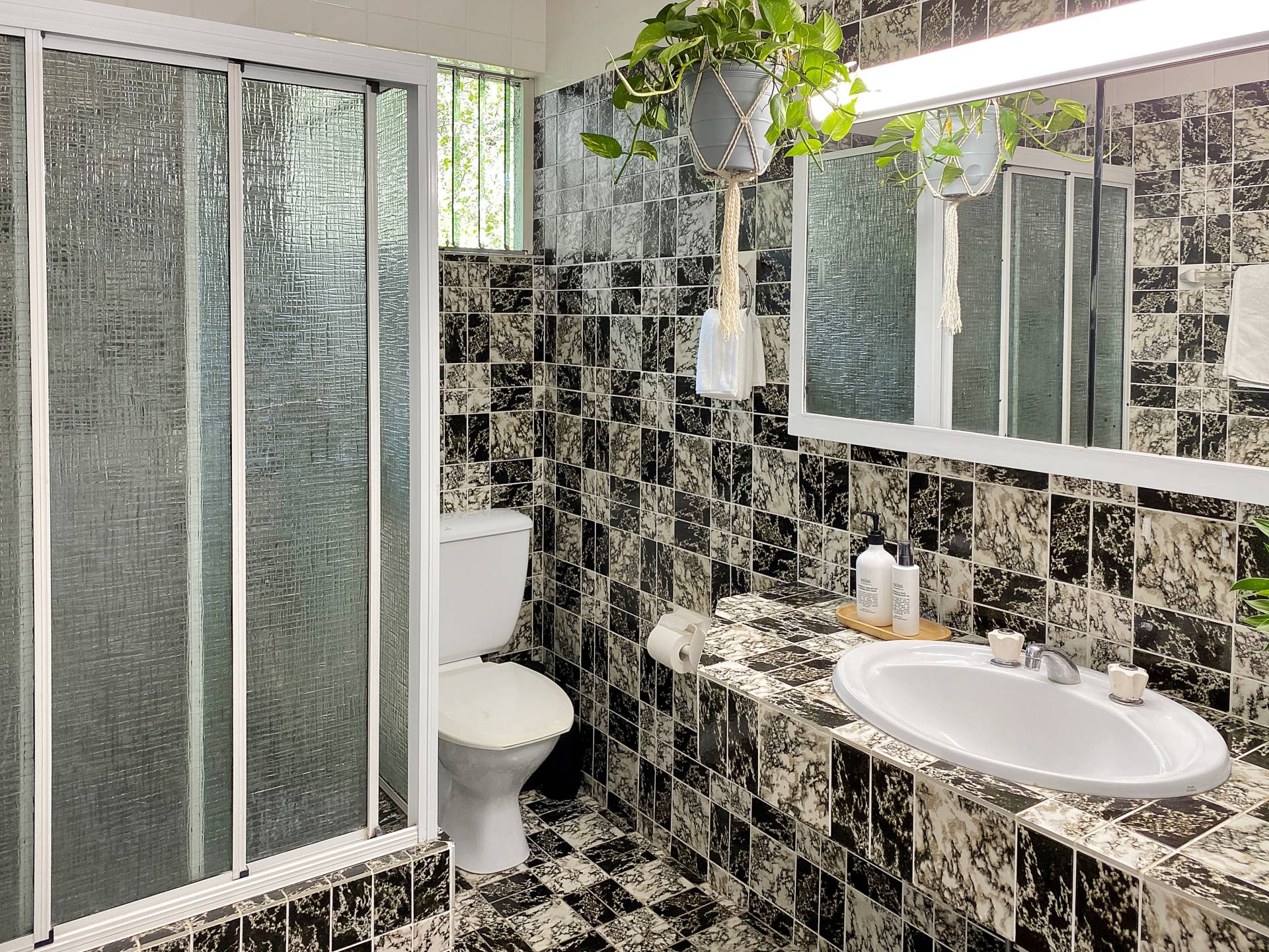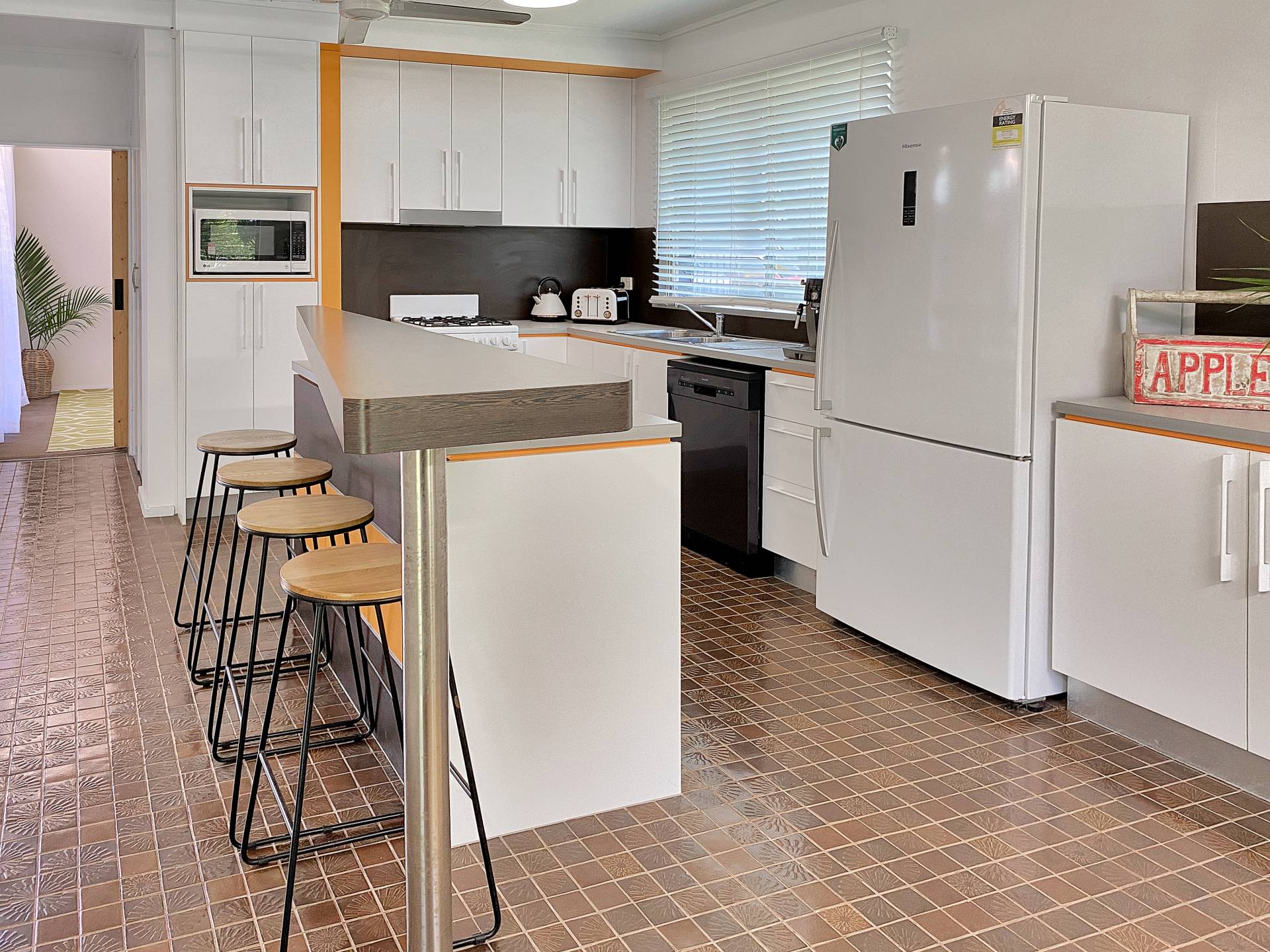 All of the bedrooms have split system air-conditioning and ceiling fans, with carpeted floors and built-in-wardrobes to three, with plenty of room in the fourth should more storage be required. The huge fourth bedroom could make a great home office or rumpus room and opens onto the swimming pool through sliding glass doors. Both the ensuite and main bathroom have shower, toilet and vanity with some quirky tiling if you're into retro-styling!
