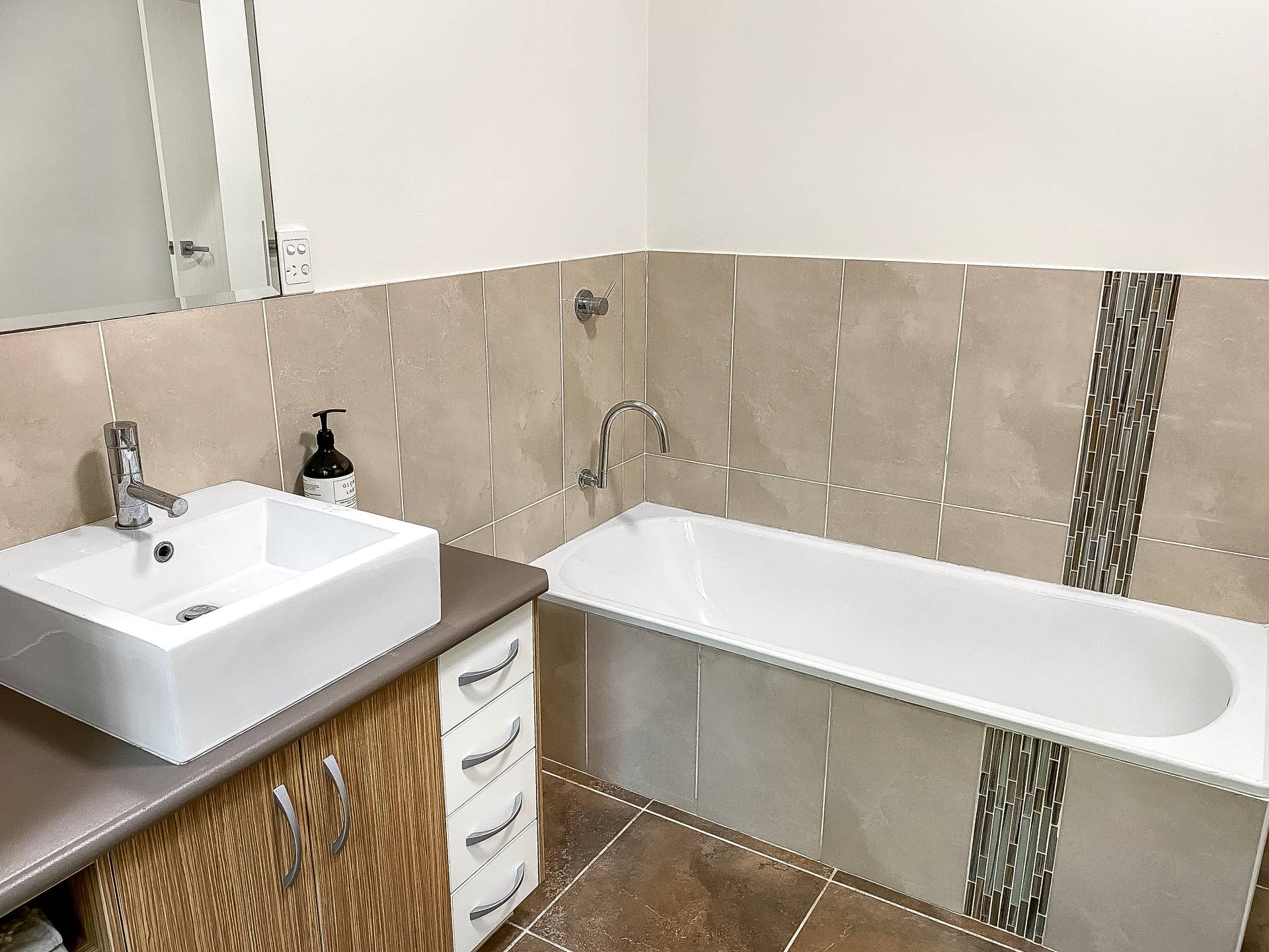 • Family bathroom with bath, separate shower & vanity, with a separate powder room in the hallway for convenience