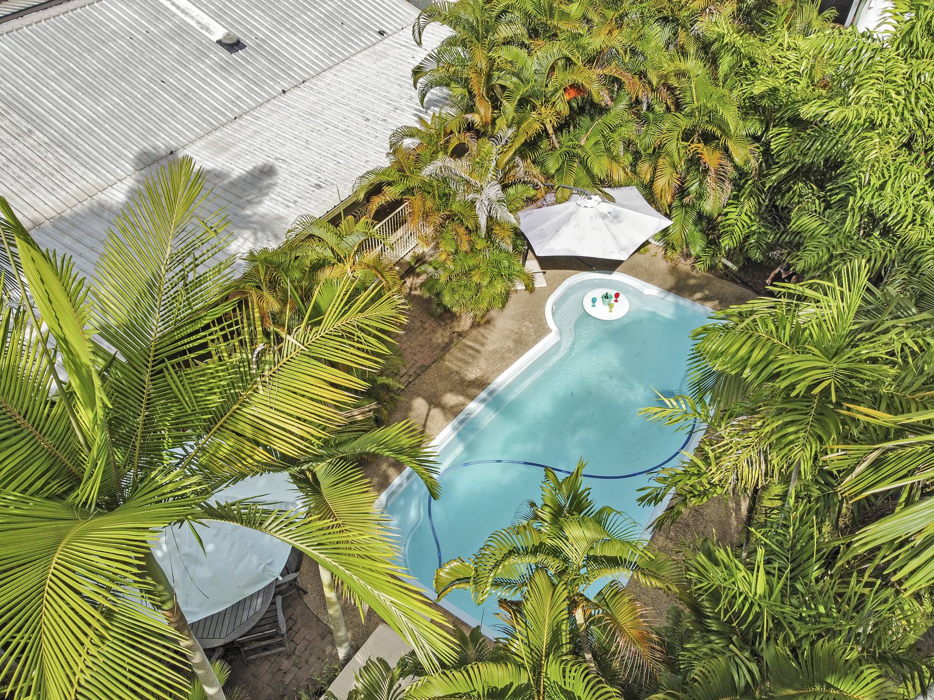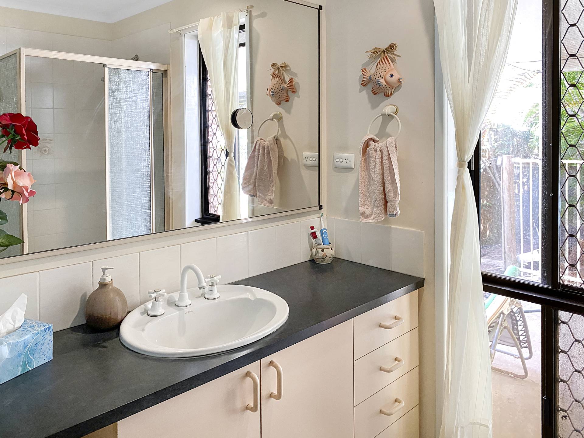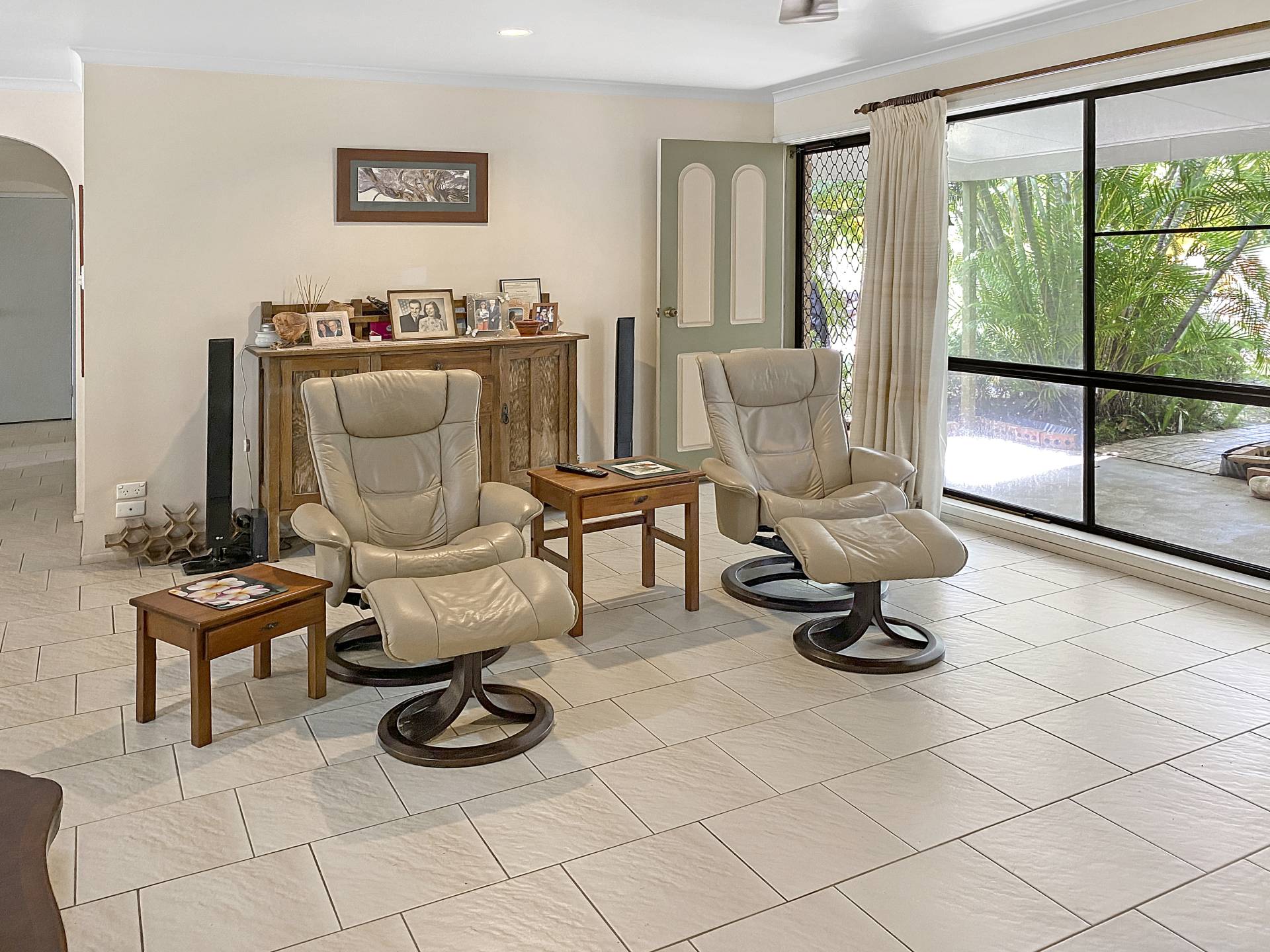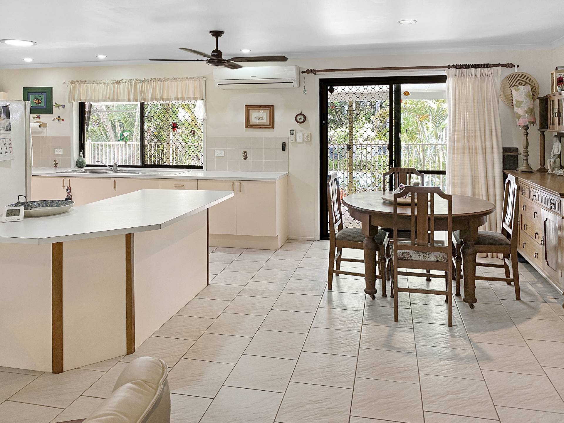 Nestled amongst the swaying palm trees, you will feel tucked away in your own private oasis here. From the 3m wide covered back verandah, you can enjoy looking over the pool to the trees beyond, and it's a great area for kids or dogs being fully fenced with a shady grassy area to the rear.