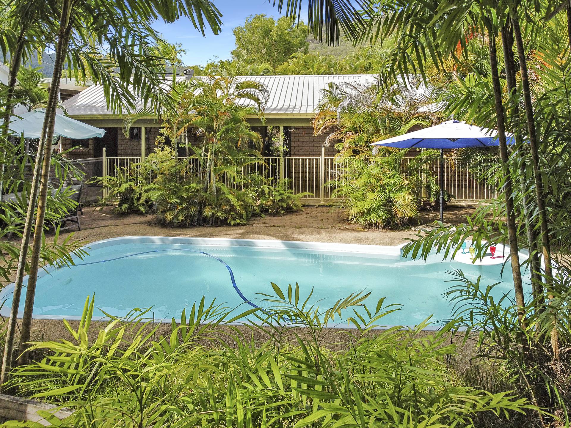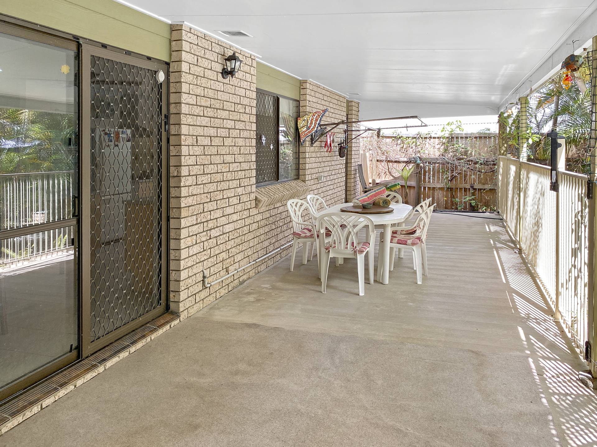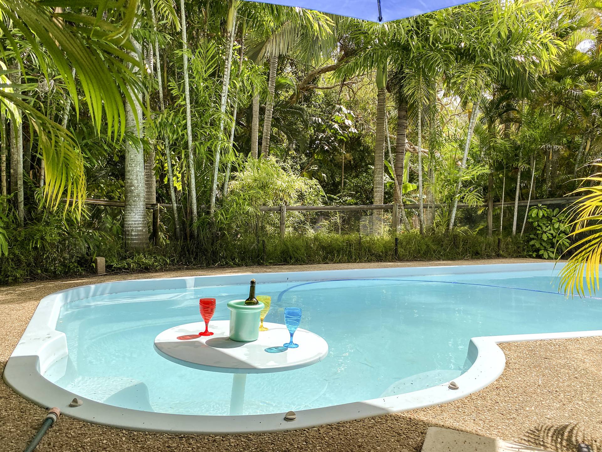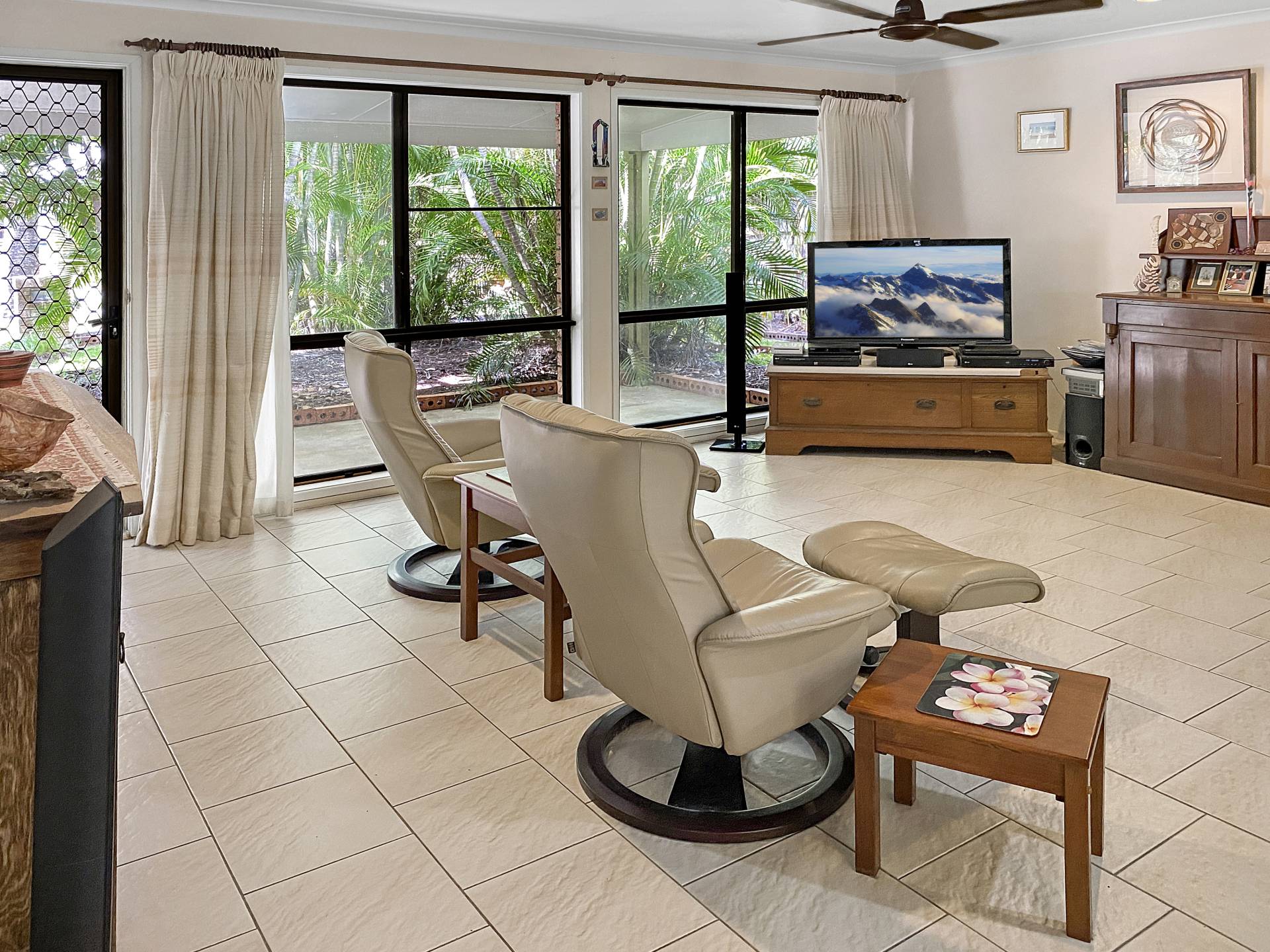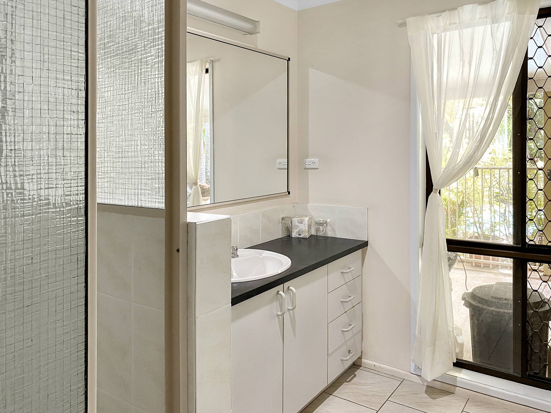 Nestled amongst the swaying palm trees, you will feel tucked away in your own private oasis here. From the 3m wide covered back verandah, you can enjoy looking over the pool to the trees beyond, and it's a great area for kids or dogs being fully fenced with a shady grassy area to the rear.