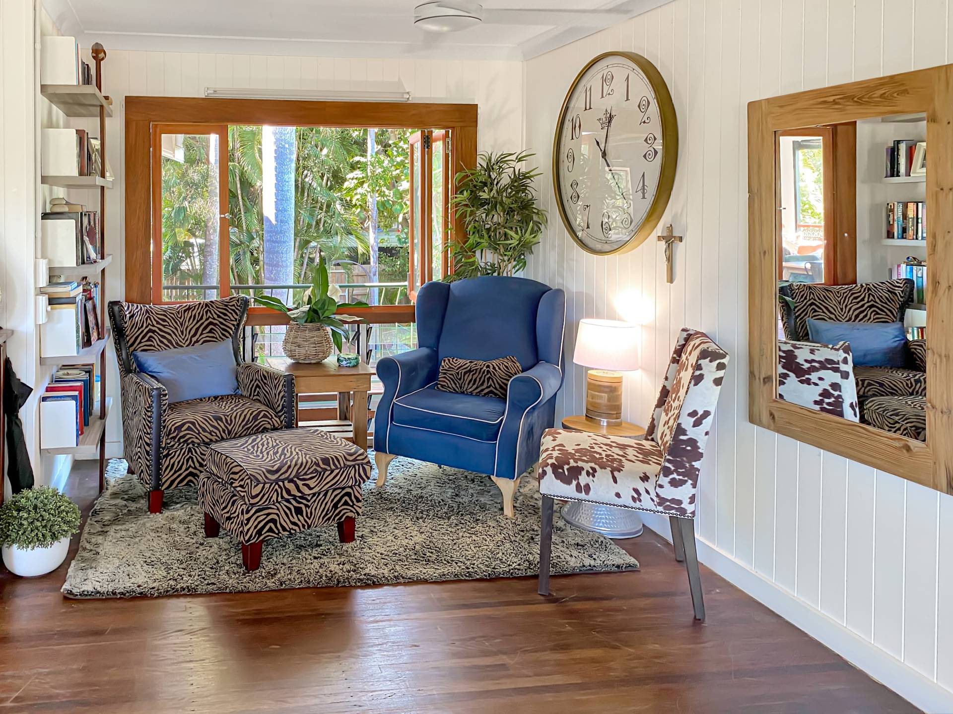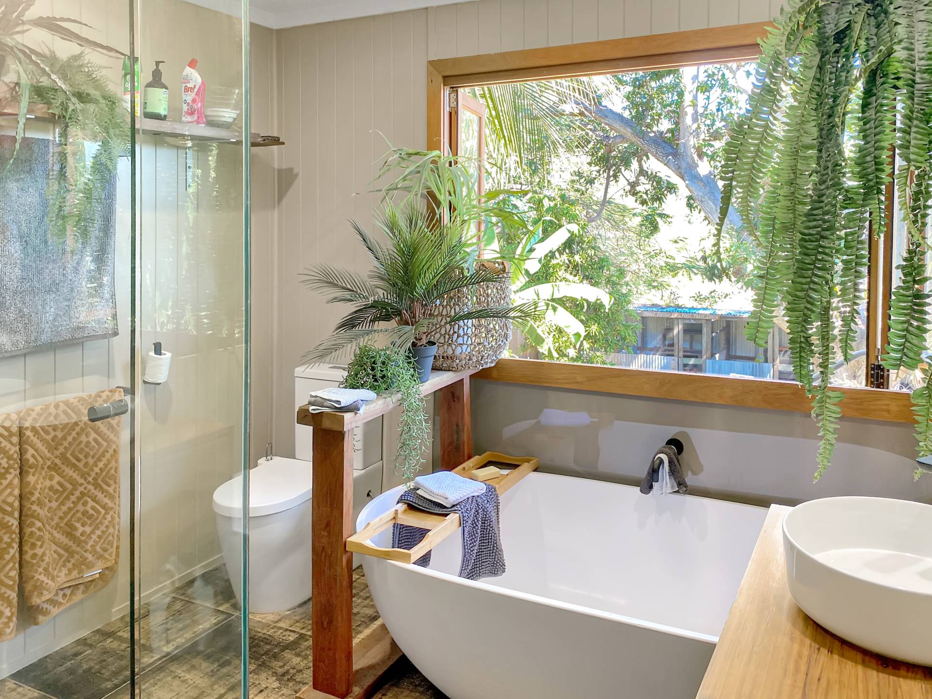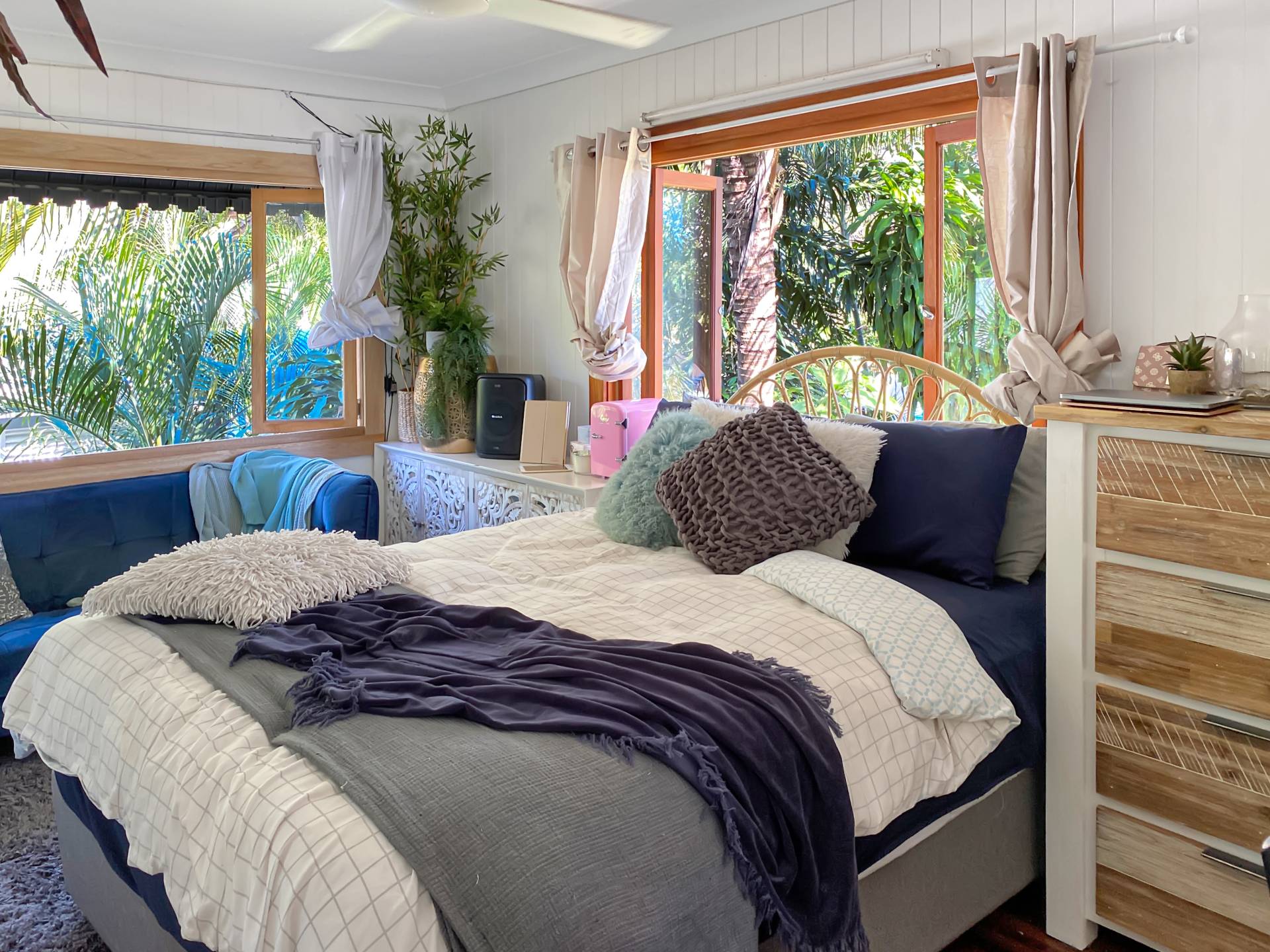 The three bedrooms upstairs are all bright and breezy, with the two at the front opening onto a small front deck and with built-in-wardrobes. The main has air conditioning while the others are cool enough with ceiling fans.