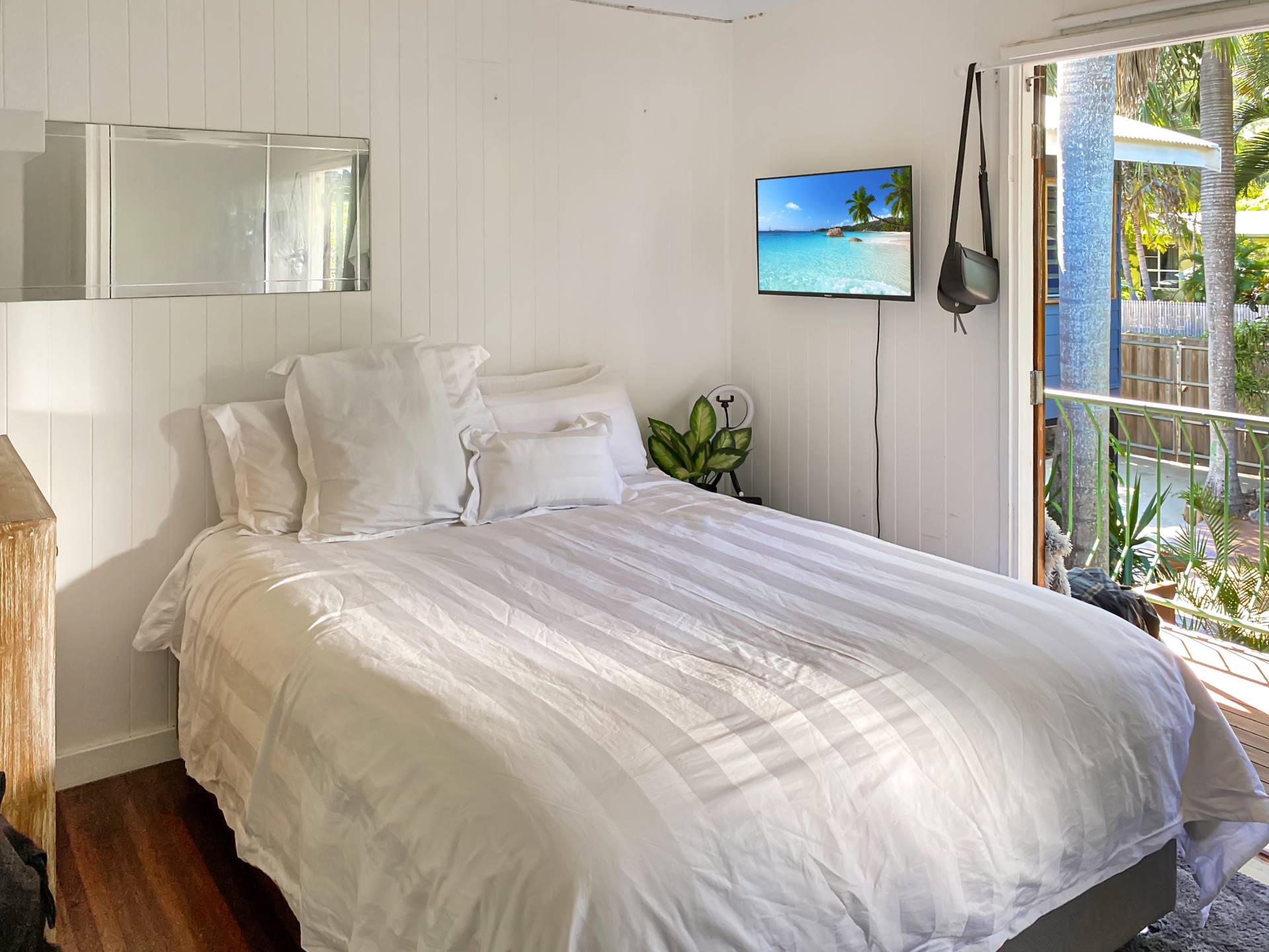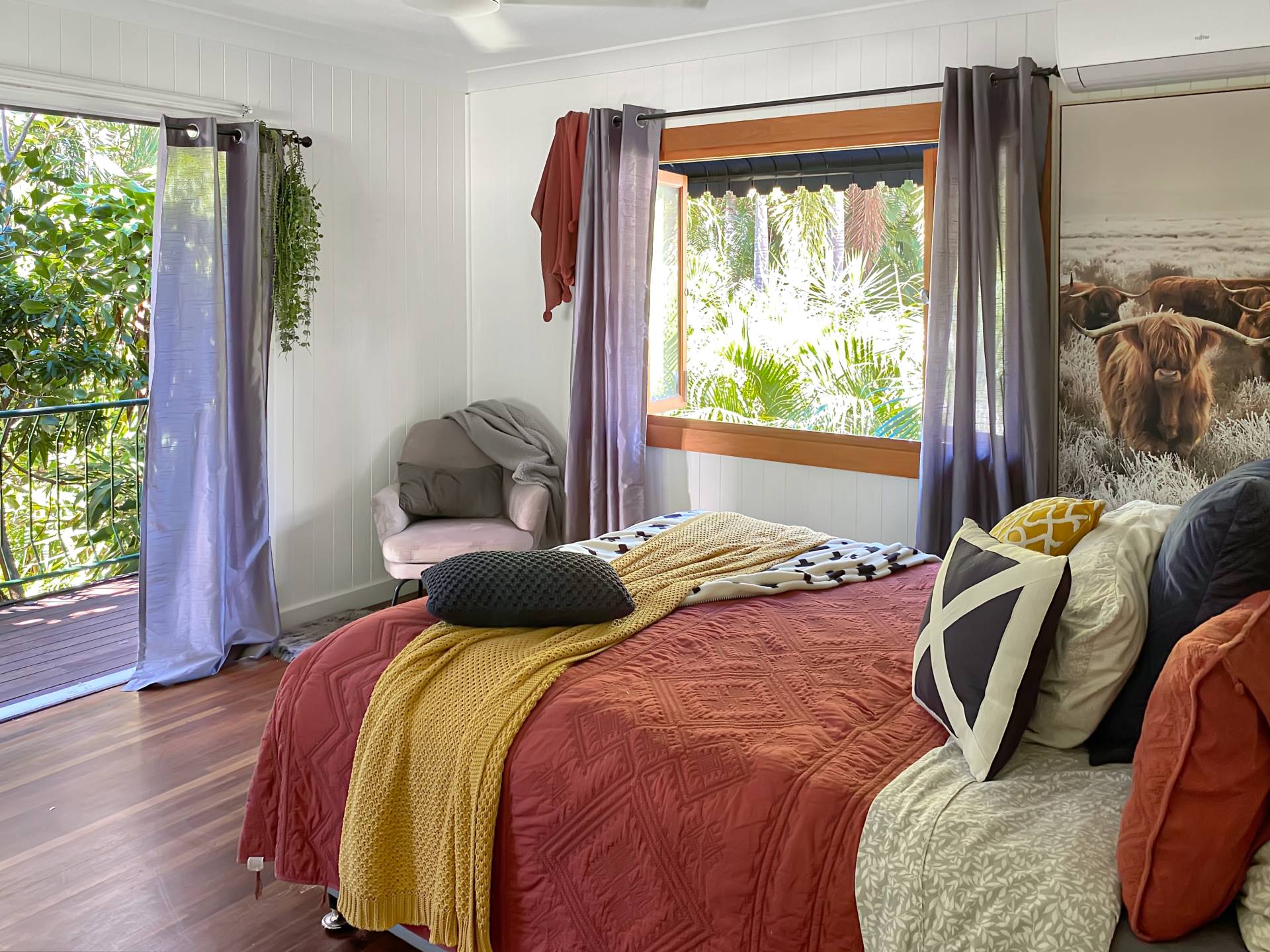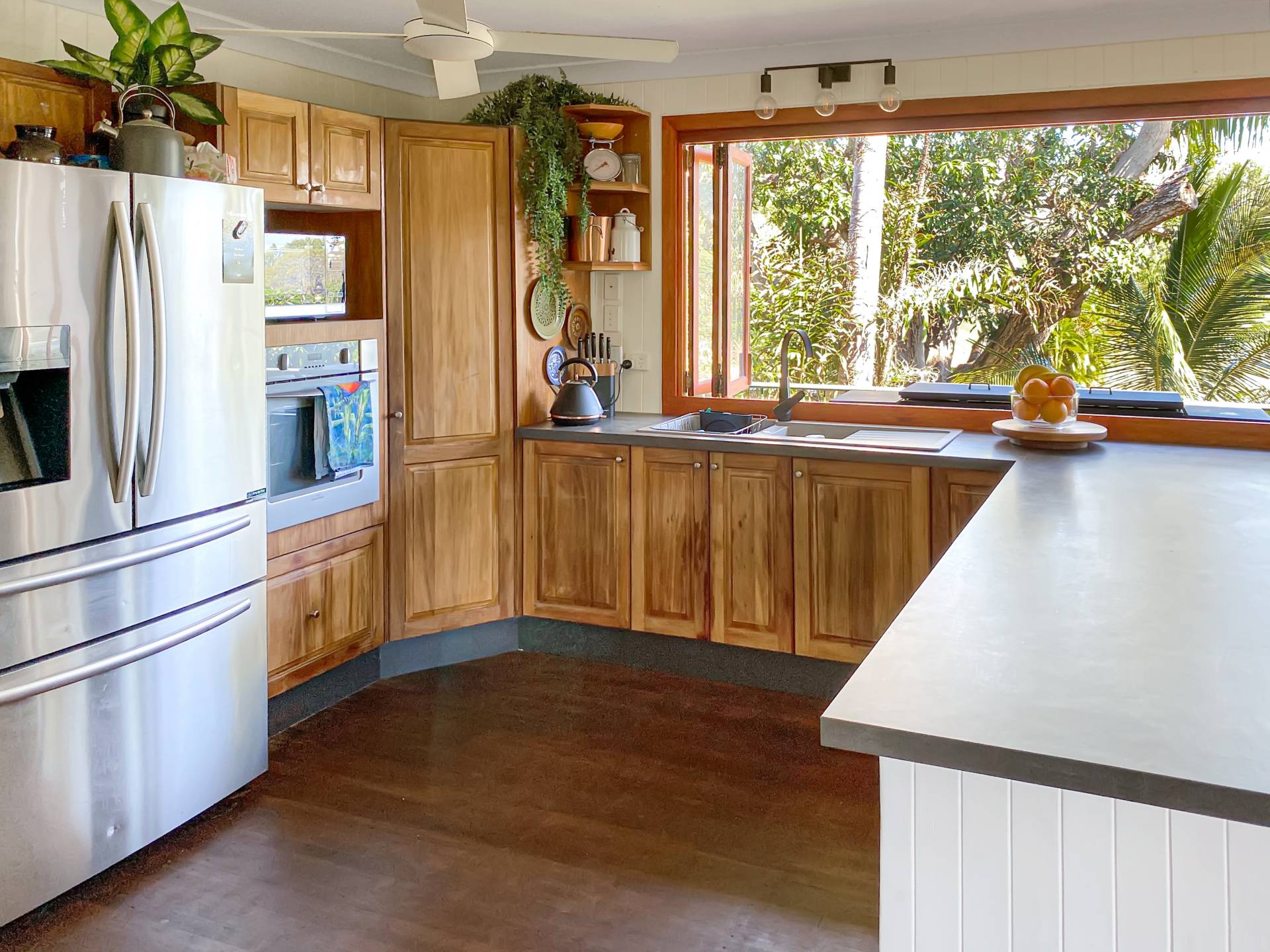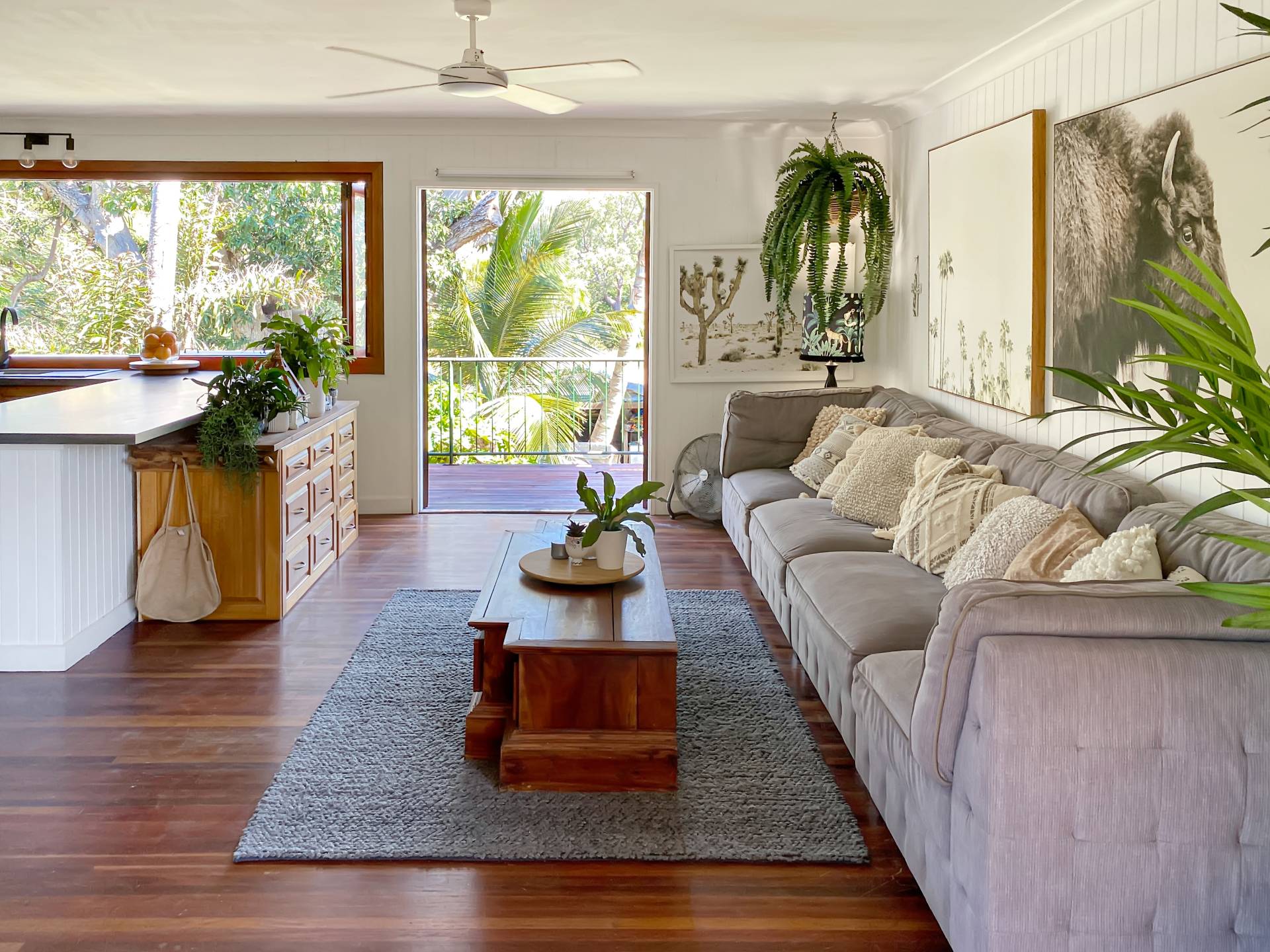 The three bedrooms upstairs are all bright and breezy, with the two at the front opening onto a small front deck and with built-in-wardrobes. The main has air conditioning while the others are cool enough with ceiling fans.