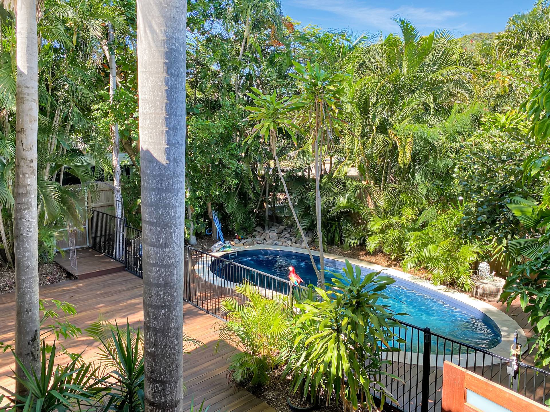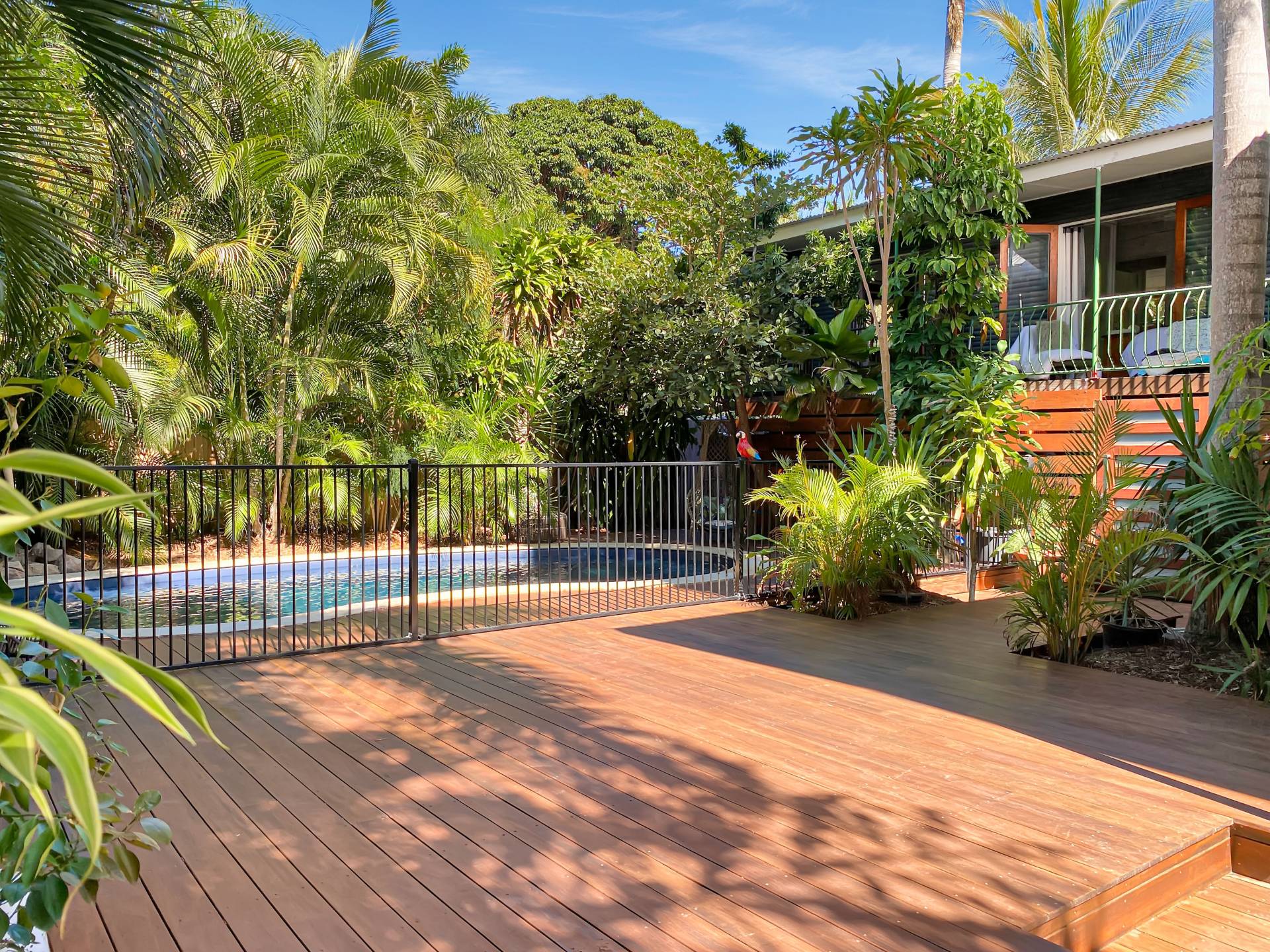 Entering through the front gate, the magnesium pool surrounded by swaying palms and expansive decking gives a resort feel and a great outdoor entertaining area. The carport has a double gate so you can drive right through to the back yard if needs be.