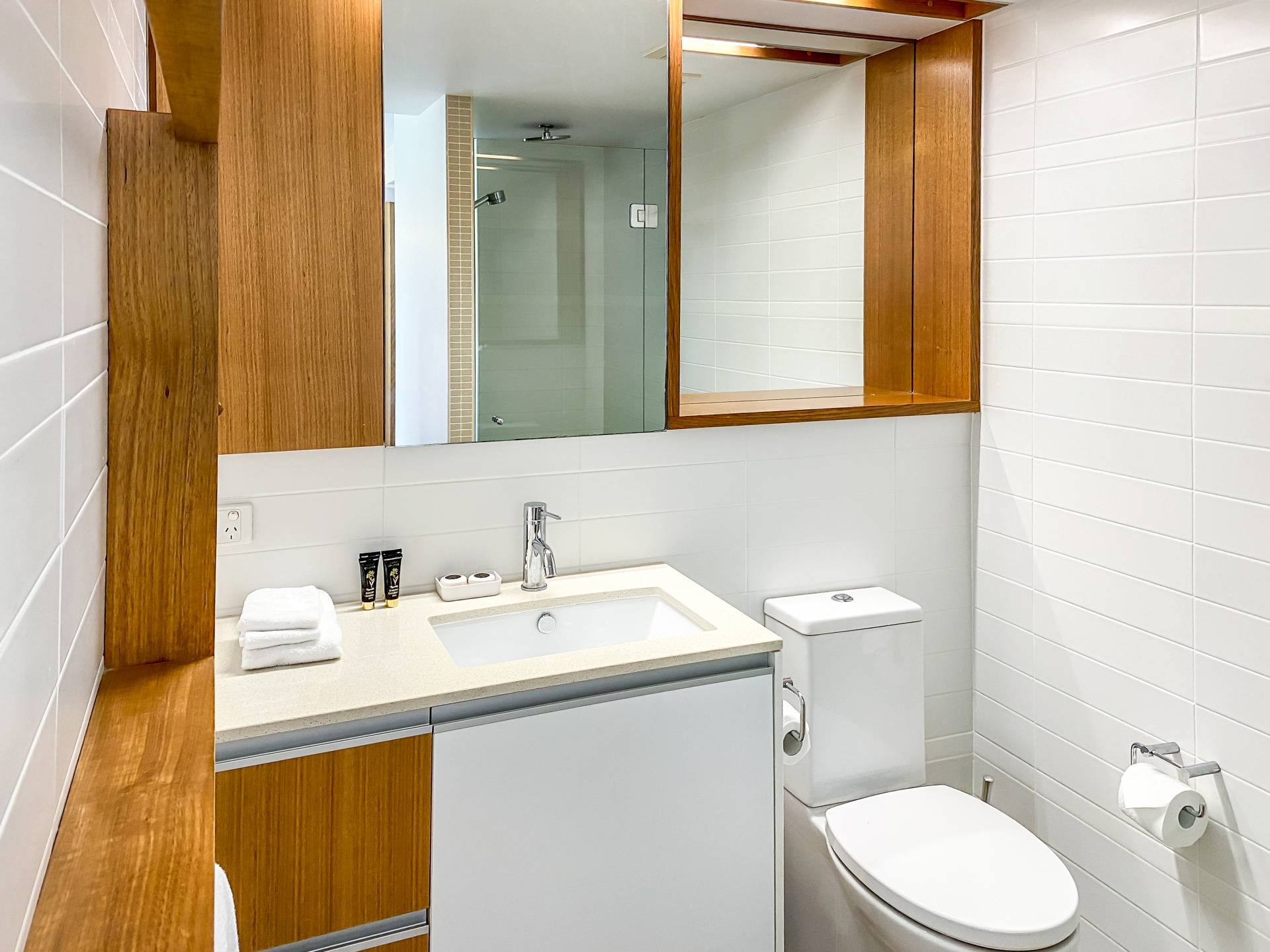 All three bedrooms have generous built-in-wardrobes and there's an additional walk-in-wardrobe in bedroom 2 as well as a designated external storage cage so you can leave a few items if you are letting out the apartment when you are not here. The ensuite bathroom in the master bedroom features both rainhead and wall shower with timeless timber and stone finishes, while the main bathroom is well located to service bedrooms 2 & 3 and the living area.