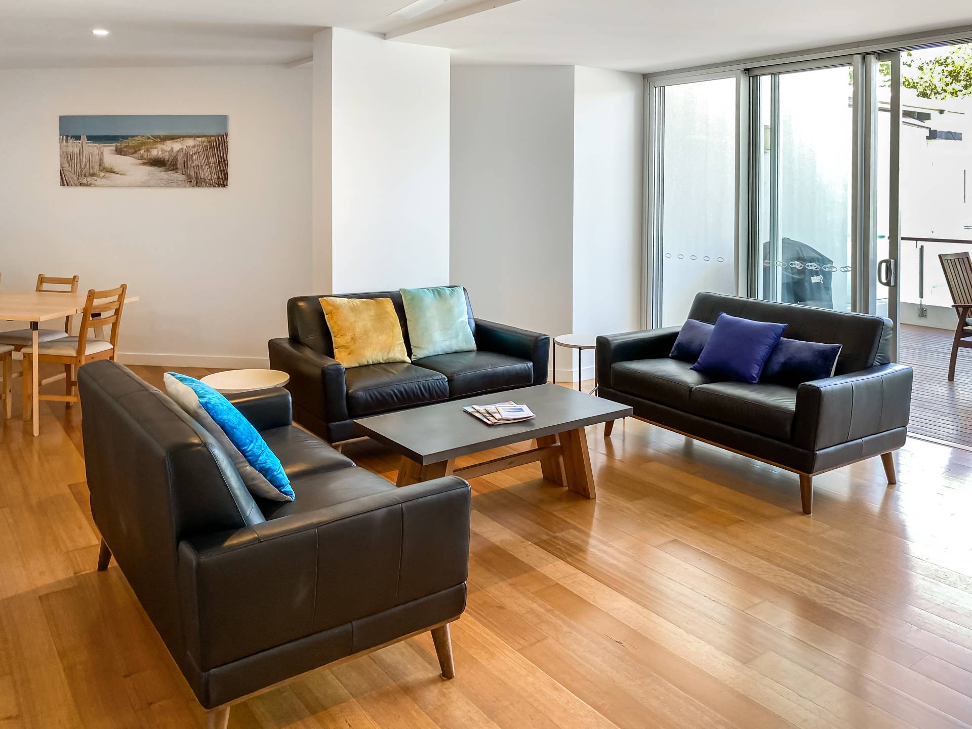 Maggies Apartment 8 takes a step back from the busy beachfront yet still enjoys a direct sea view from the 21m2 private balcony, lounge and kitchen.