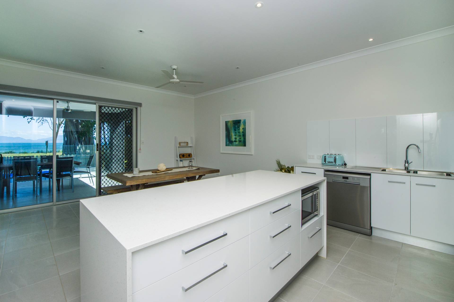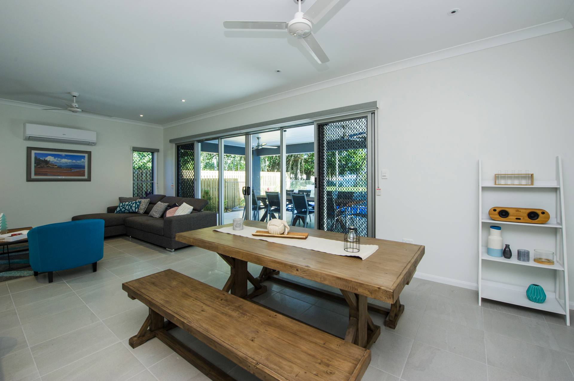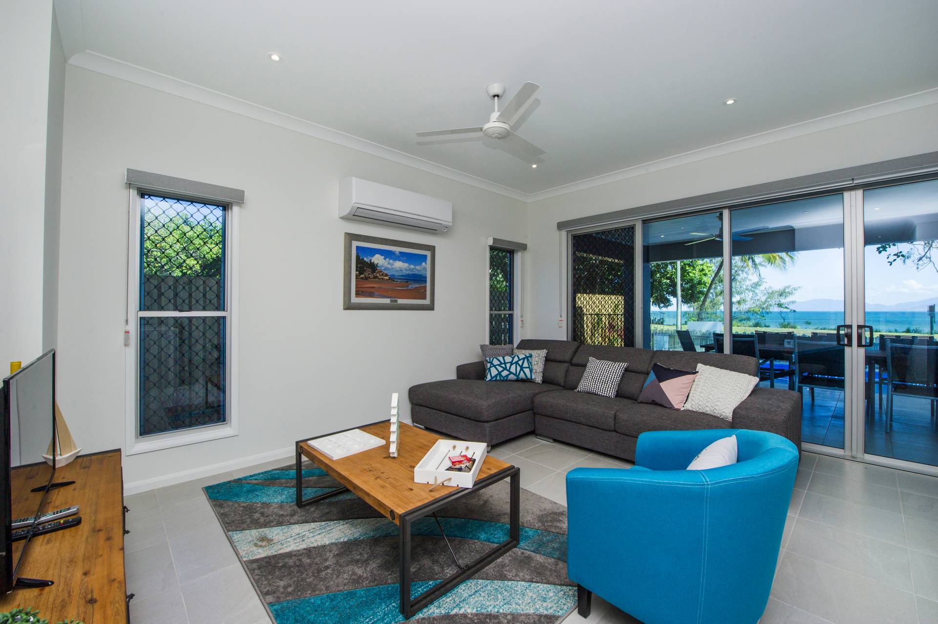 Entering through the front door, your eyes are immediately drawn through to the living area and beyond to the brilliant blue of the Coral Sea. The open-plan living area opens up onto a large covered patio which in turn looks over the pool to the beach.