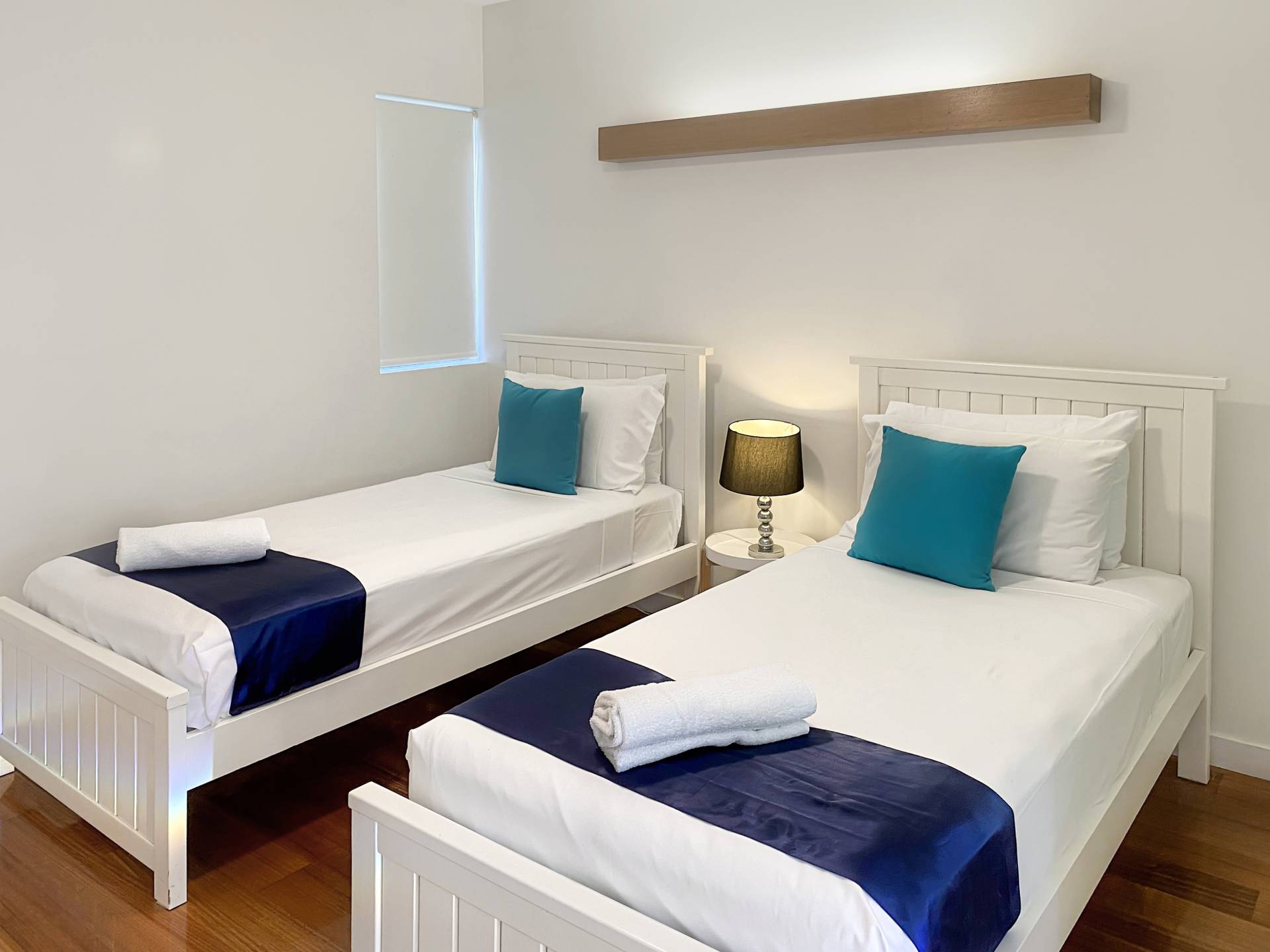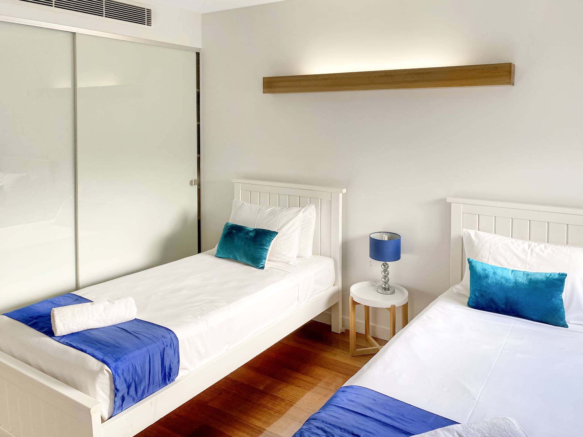 Sliding screens open up the patio to allow you to walk straight across onto the beach, and even when closed for privacy, the beach views can still be enjoyed from inside the apartment. Popular with families, this apartment currently consists of two twin bedrooms and a master bedroom with ensuite bathroom.