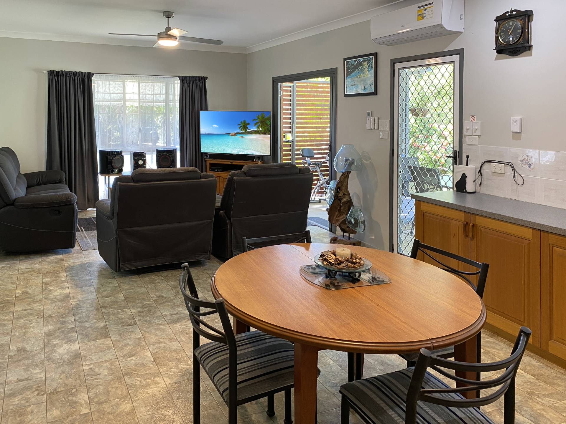 • Open-plan living/dining/kitchen opening onto the large covered patio