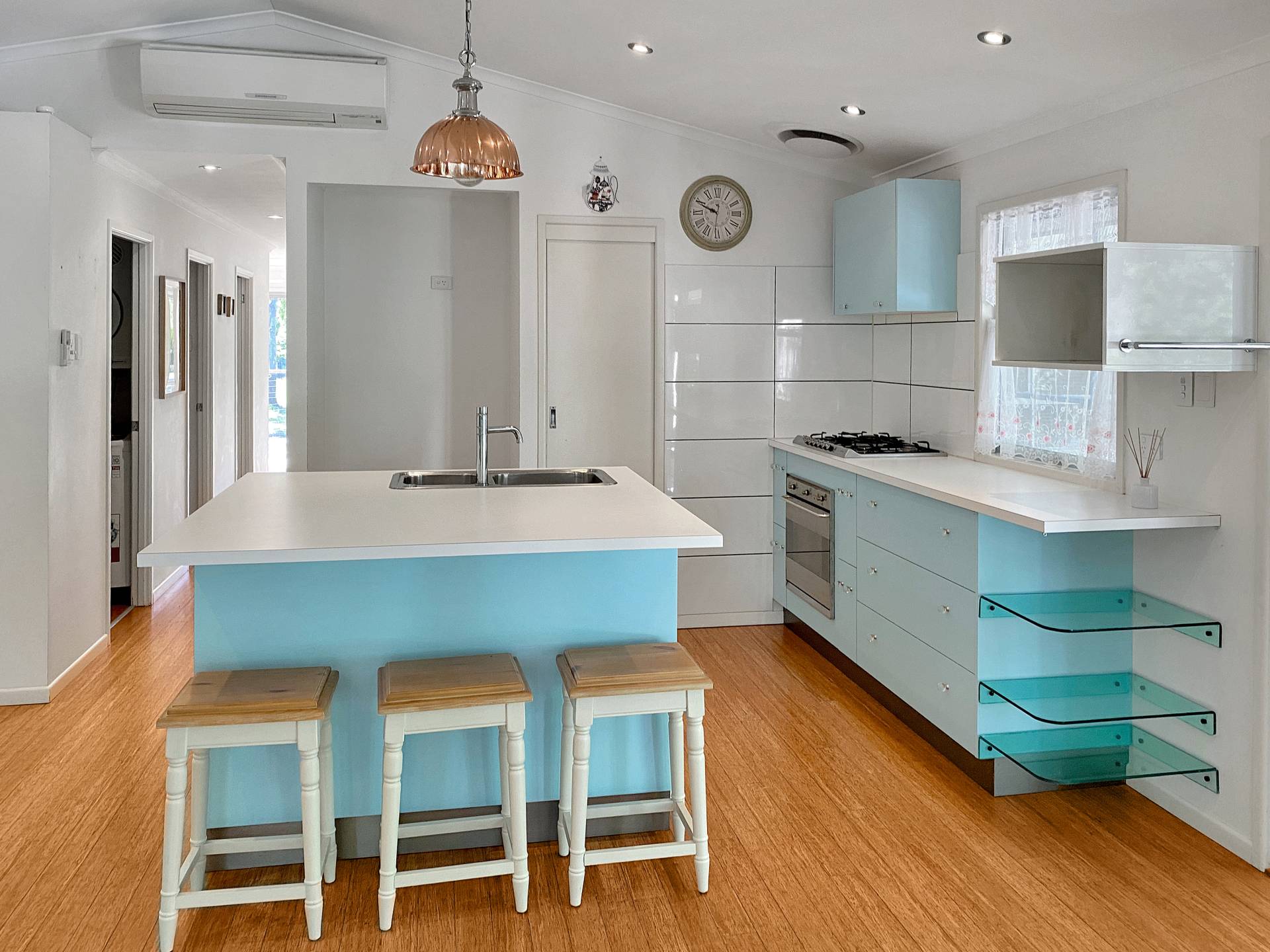 This modern home, built in 2005, is just 300m from the beach and a 5 minute walk to several excellent restaurants and cafes, supermarket, medical facilities and approx 10 mins walk to the school and marina. The block gently slopes down allowing entry up just a few steps from the street to a single level house but once inside, you feel like you are in a high-set home amongst the treetops. The elevation allows you to capture the sea breezes and also provides excellent storage space under the house for vehicles or a workshop.