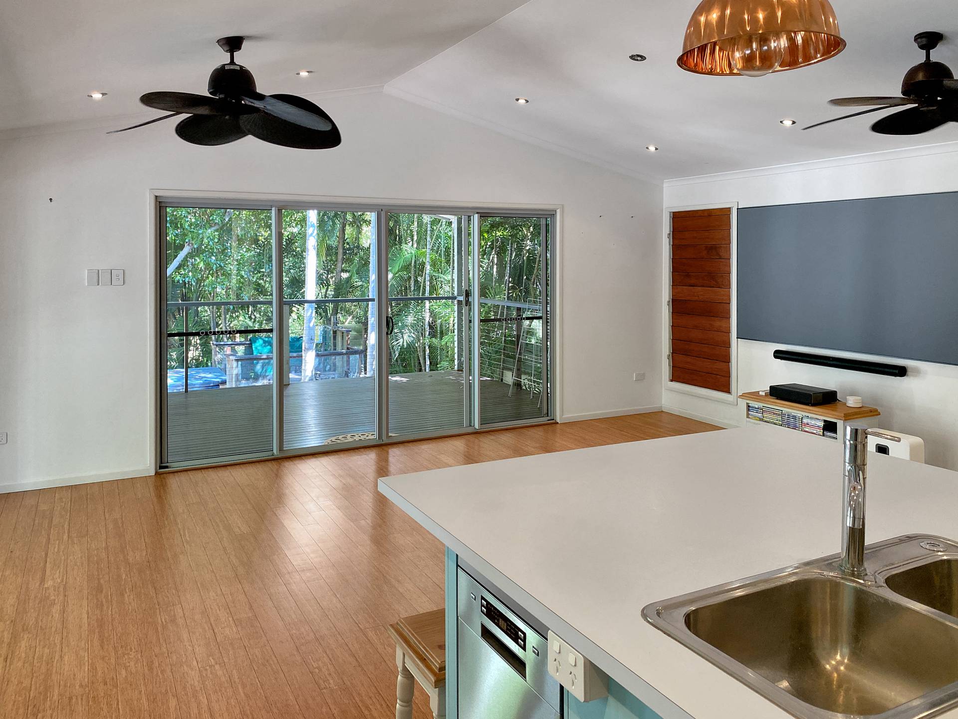 Hard-wearing bamboo floors and timber louvres provide a quality feel to the home, with vinyl cladding to the exterior also long-lasting and low maintenance.  The home is fully air-conditioned with ceiling fans throughout.