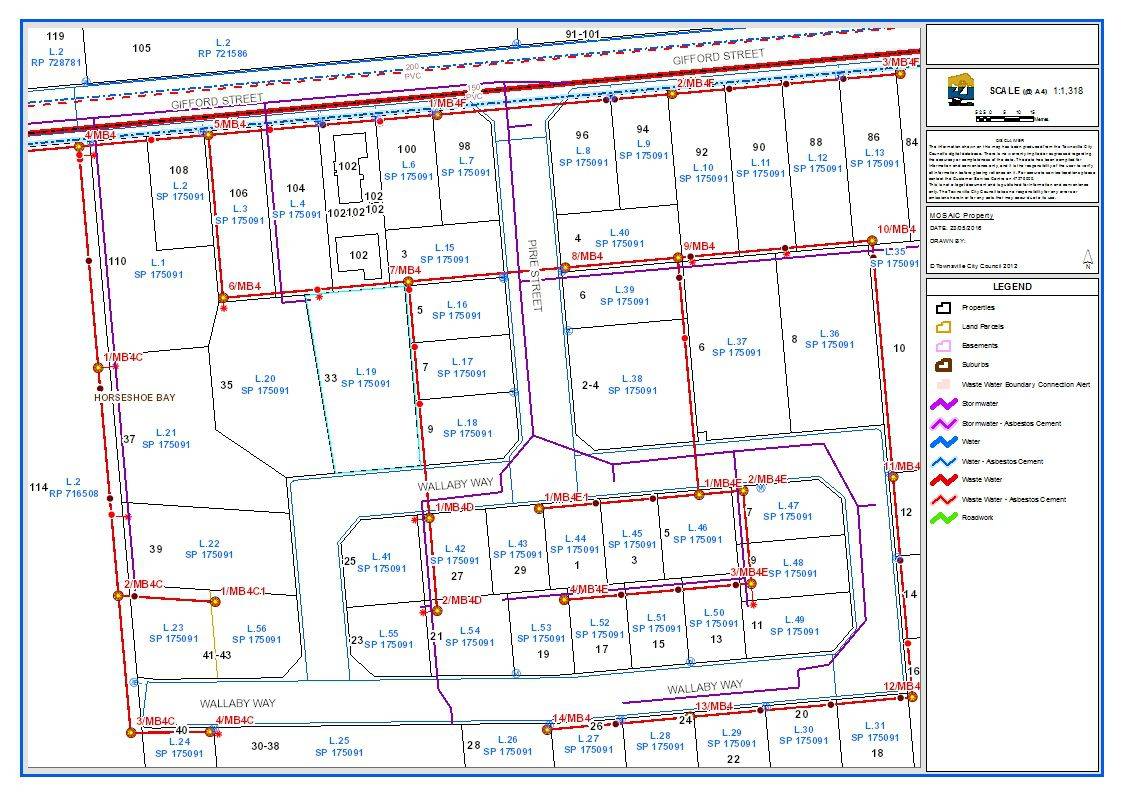 This 2044m2 block is located in the modern 'Island Crest' subdivision with power and town water connected to the front of the block and a sewer connection in the back left corner of the block.